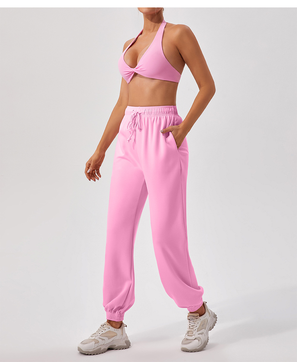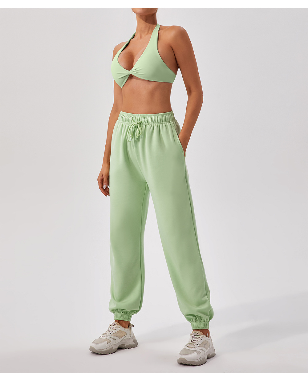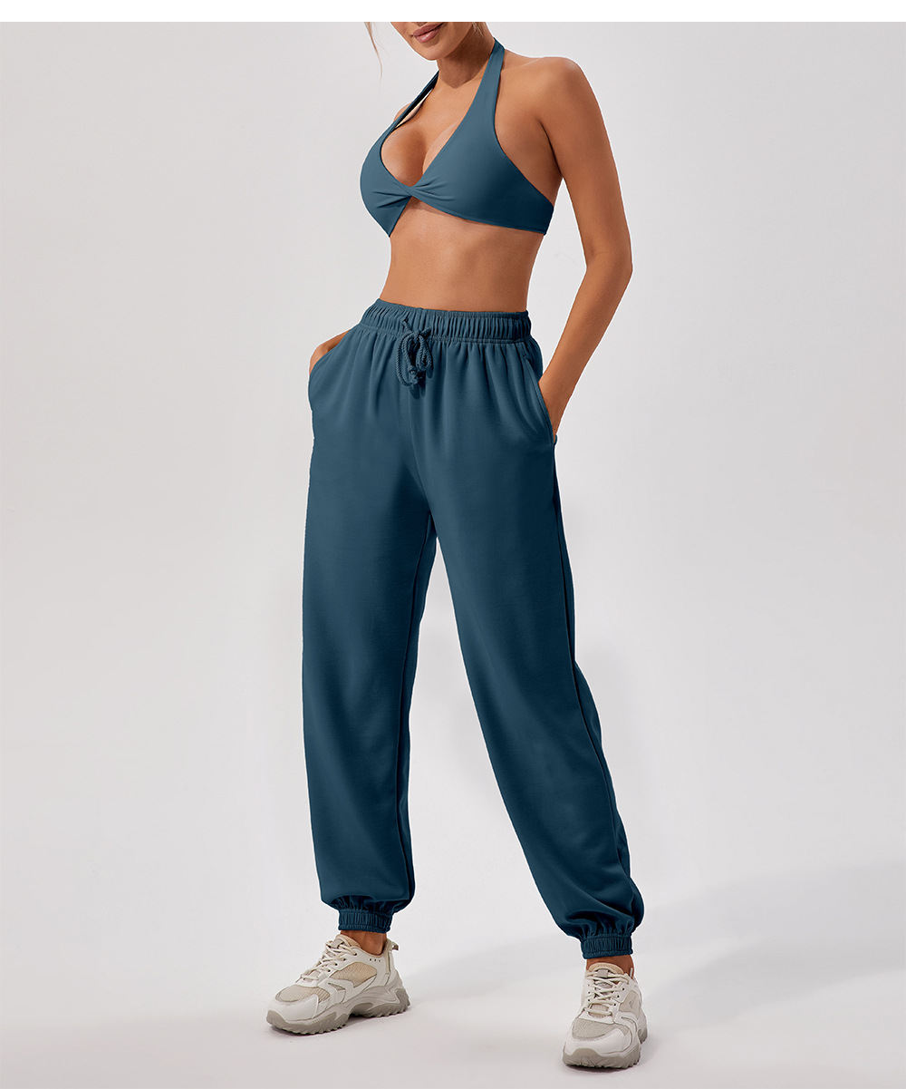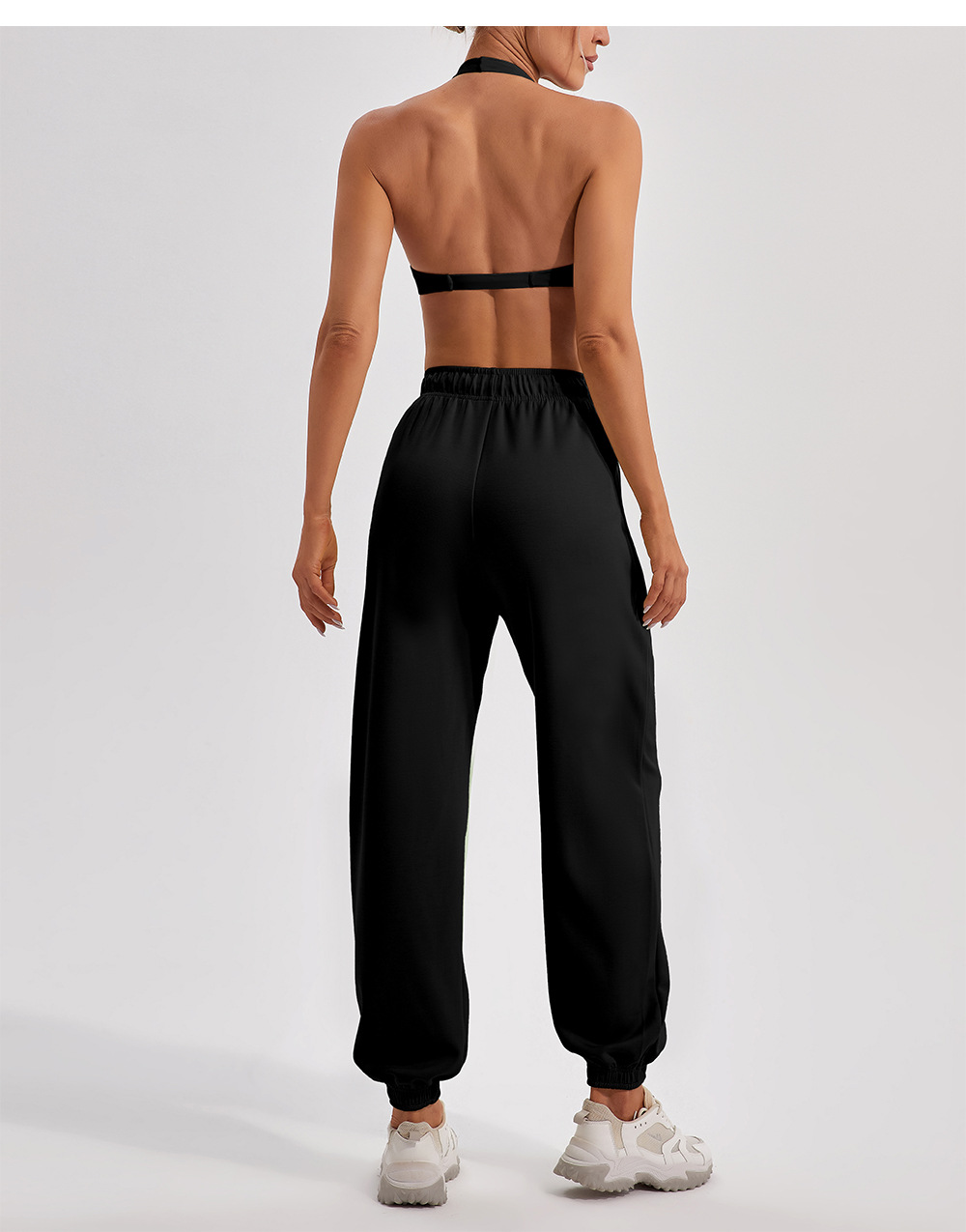 欧美跨境秋冬高腰卫裤女宽松直筒裤运动裤休闲跑步百搭外出束腿裤