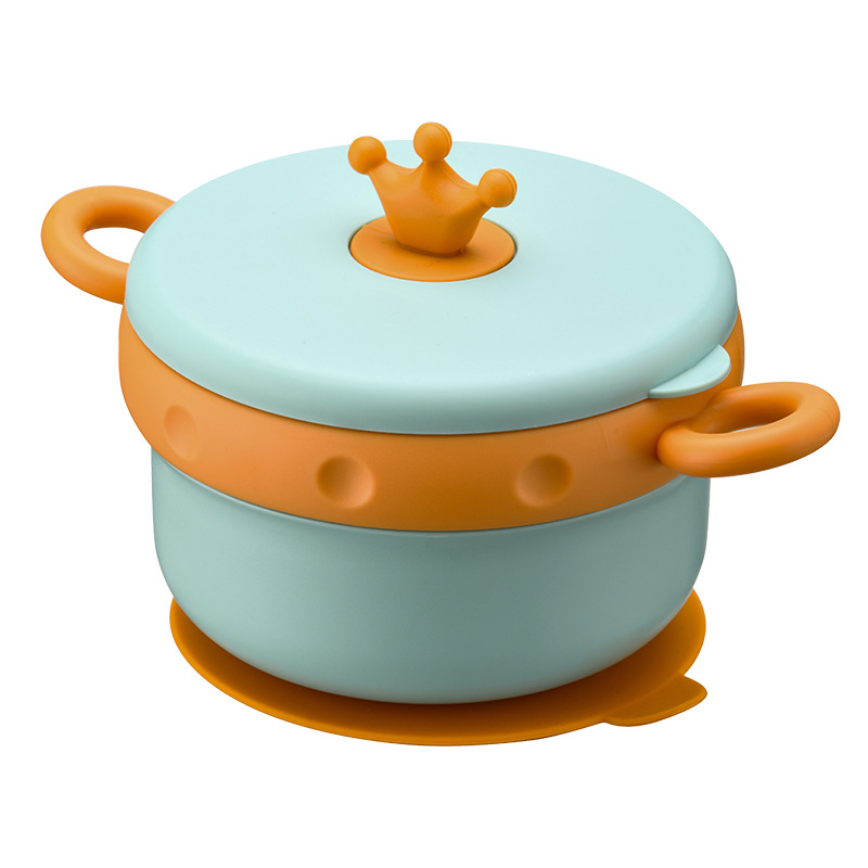 儿童餐碗可拆式316皇冠不锈钢注水保温碗宝宝卡通吸盘碗