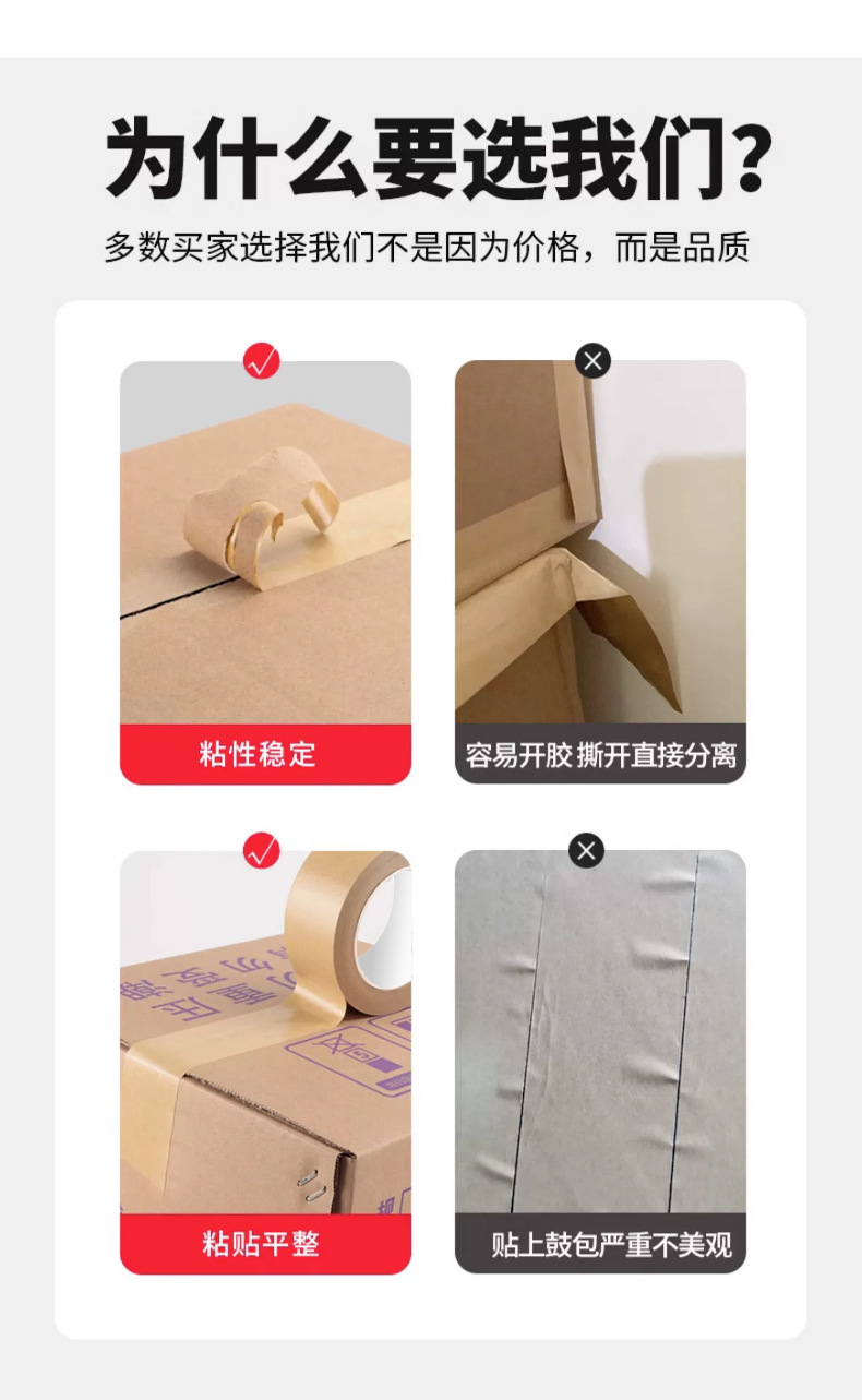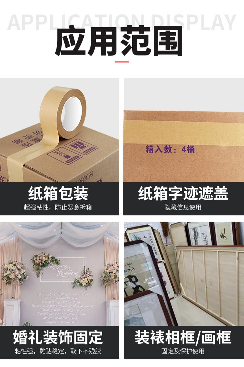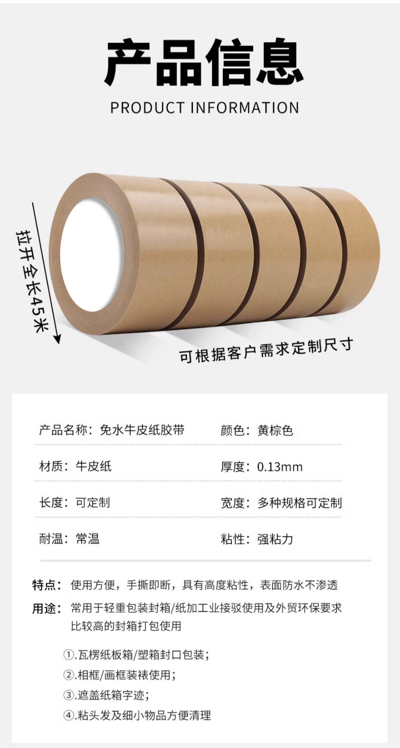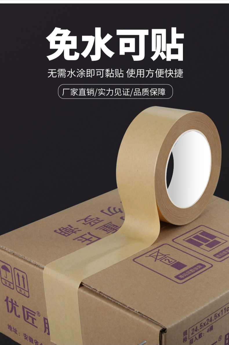 批发定制牛皮纸胶带高粘性免水无淋膜纸质胶带绘画裱画框相框手撕