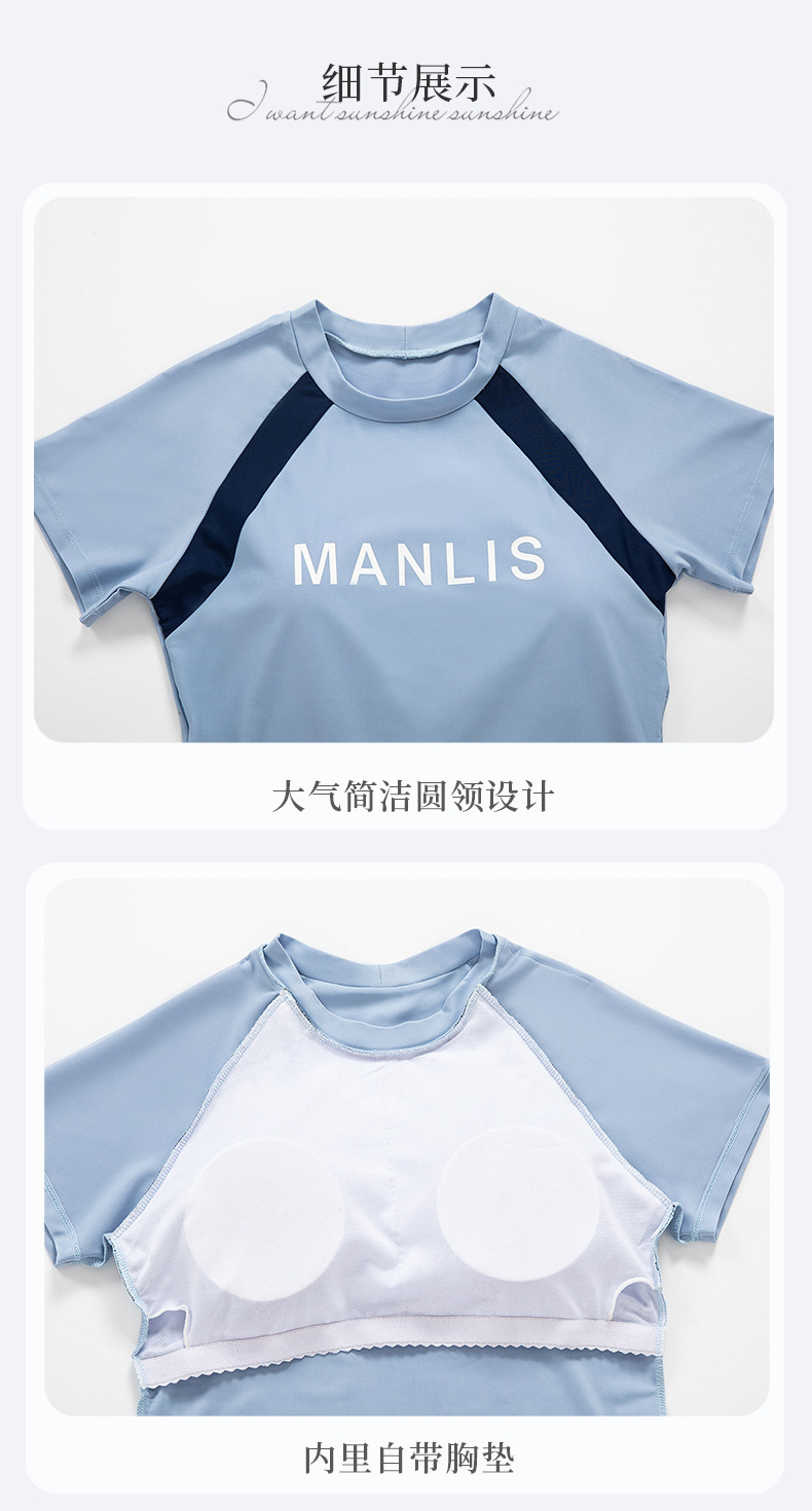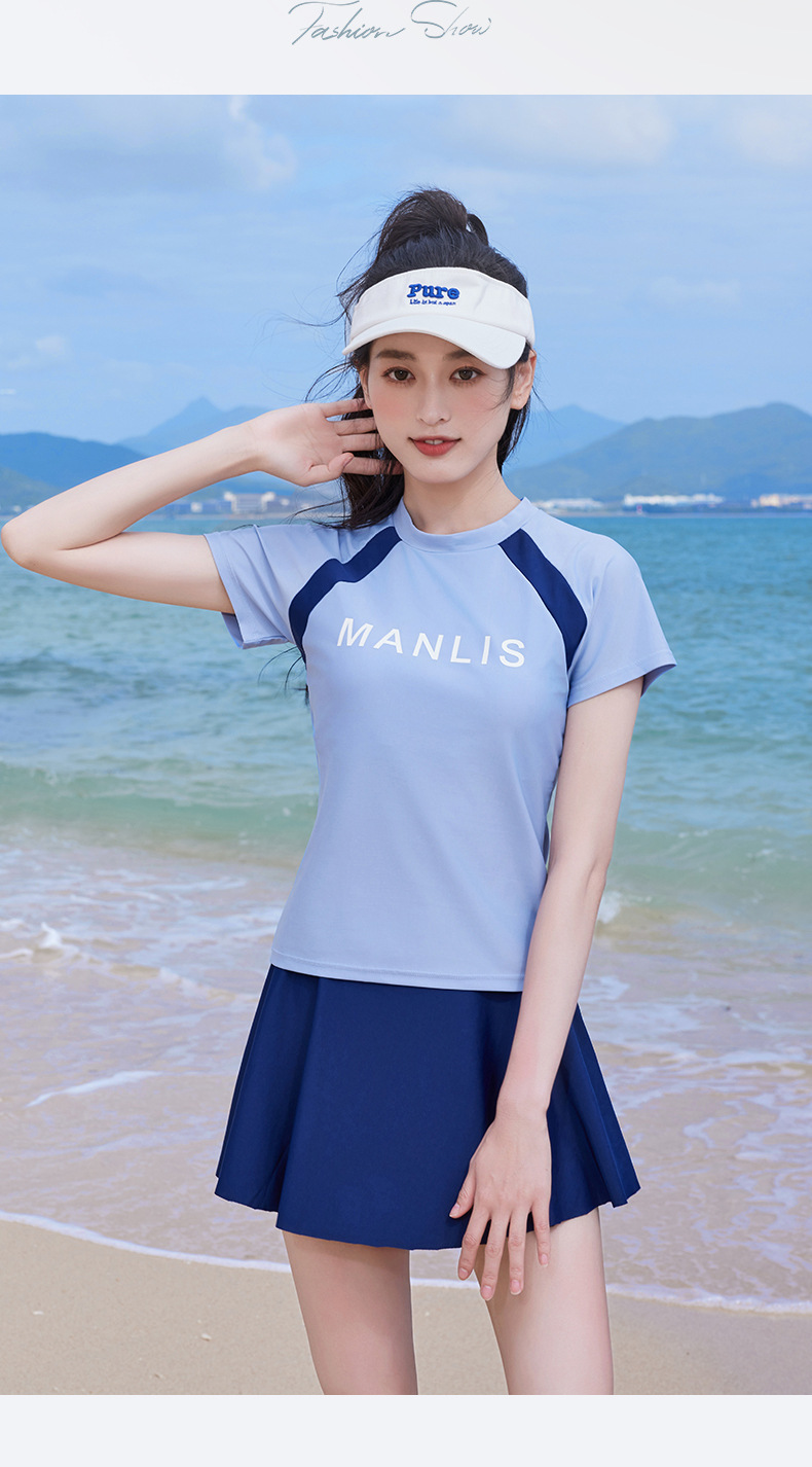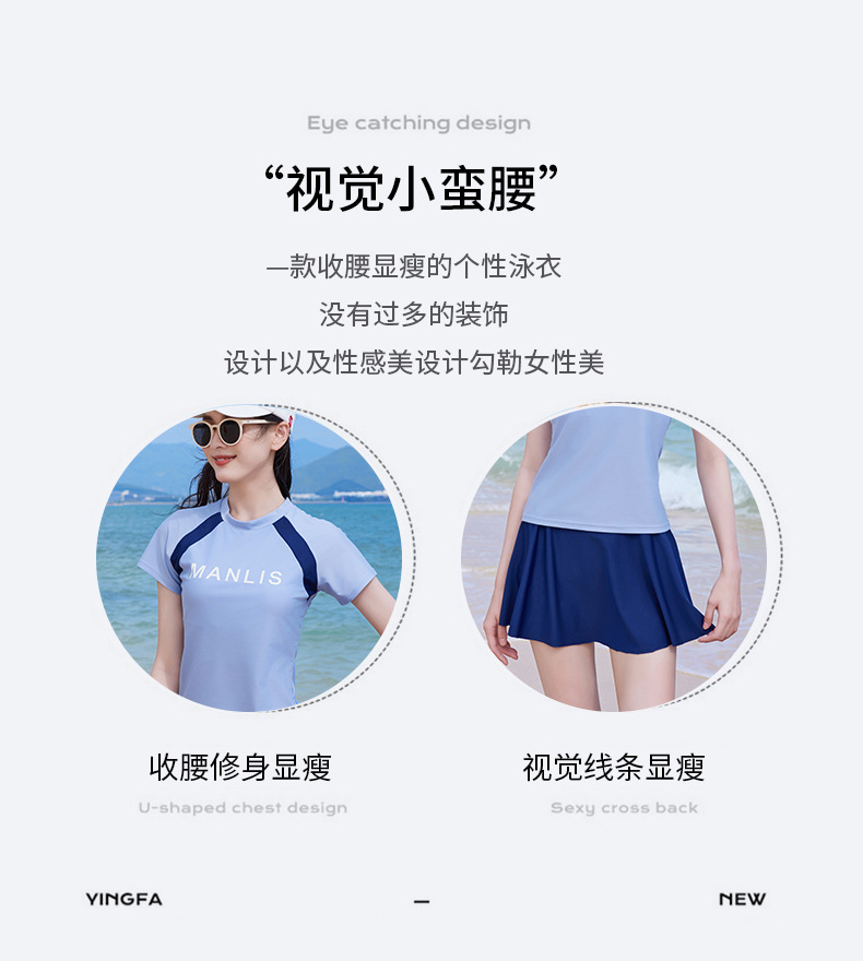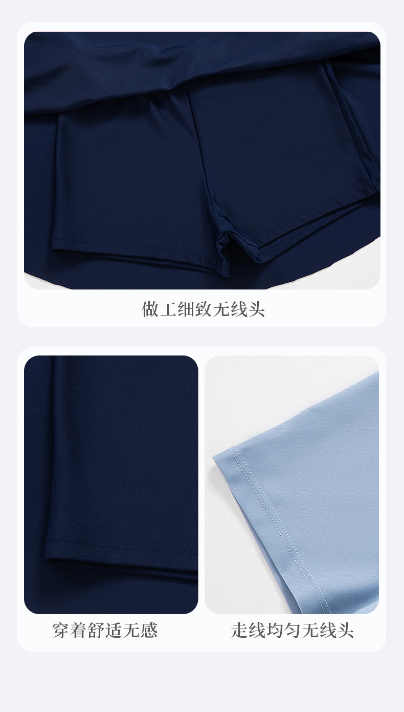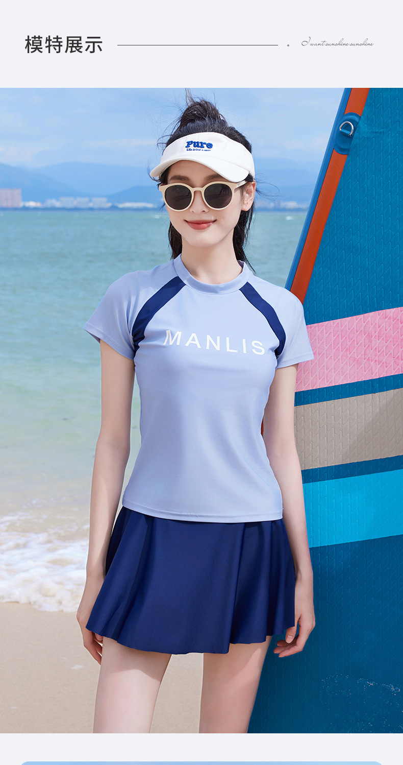 新款甜美小清新女士泳衣天青蓝运动保守款分体泳装A字裙显瘦耐穿