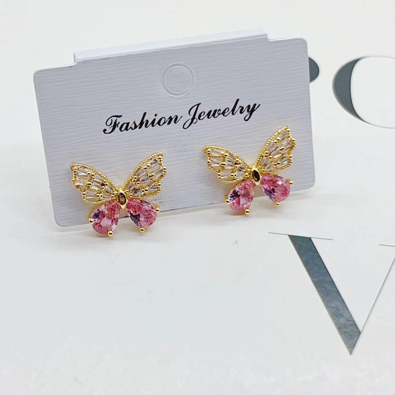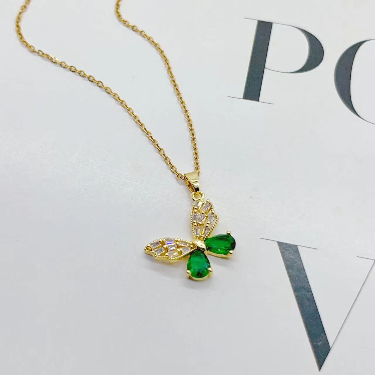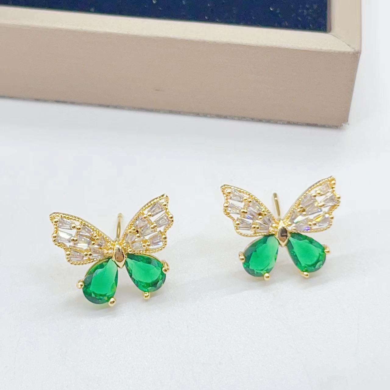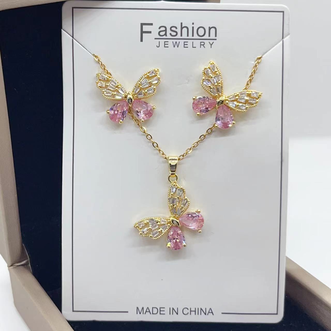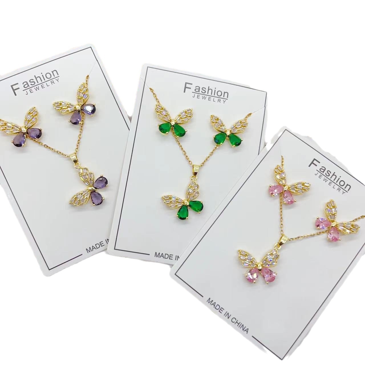 欧美铜镀真金微镶锆石彩色梯方锆石水滴耳环项链两件套装