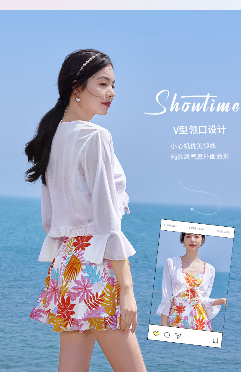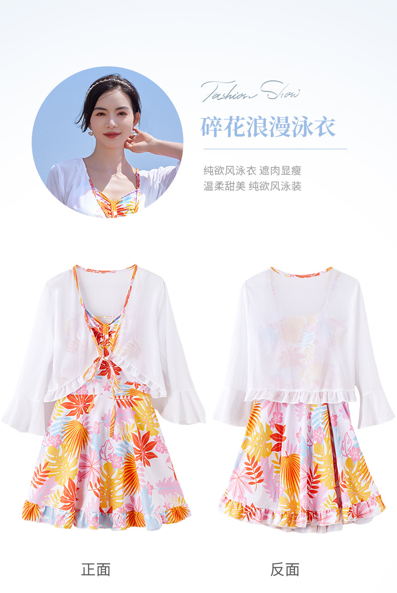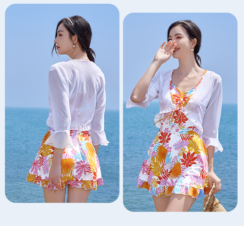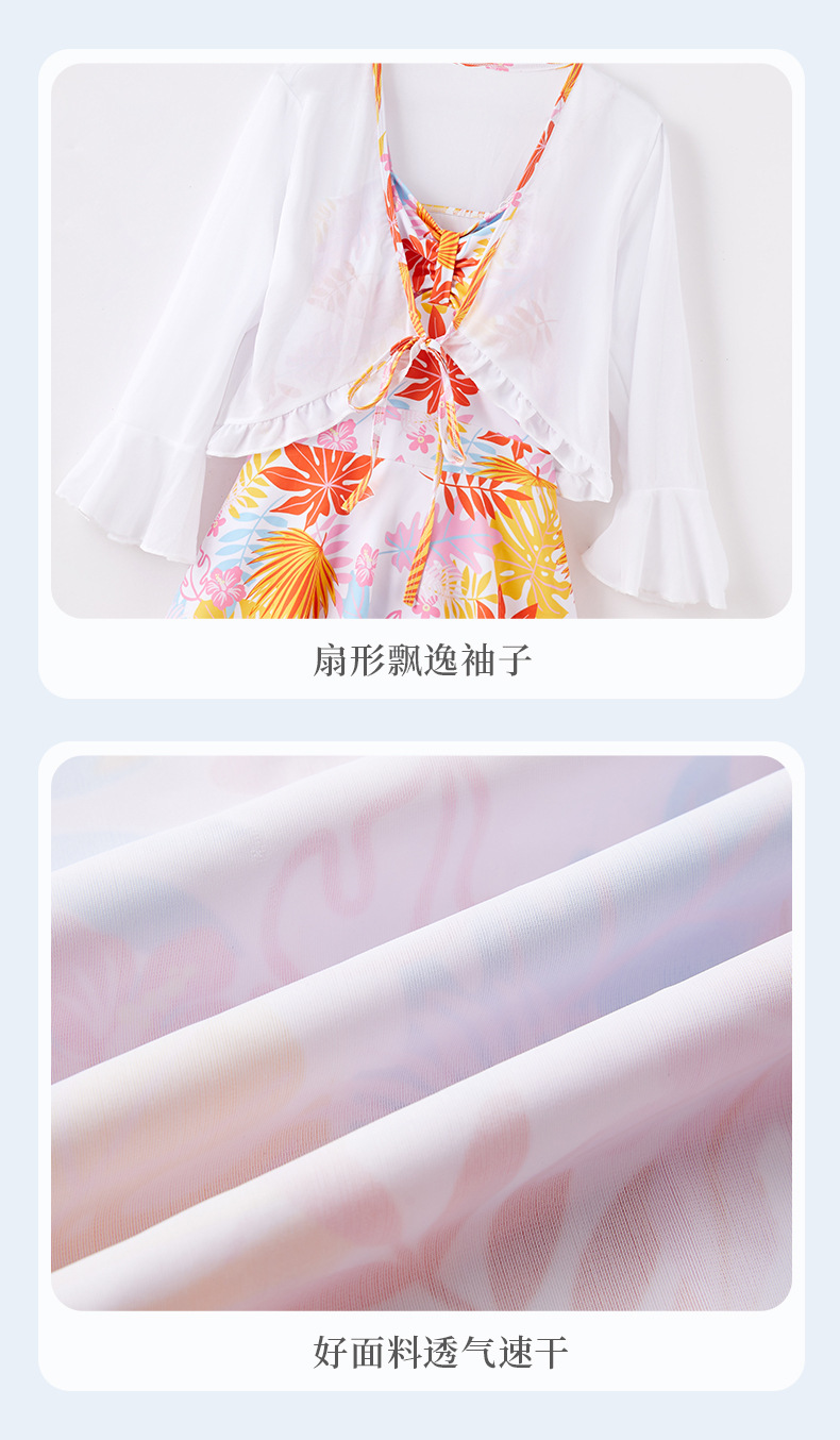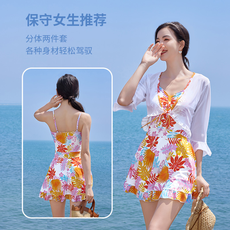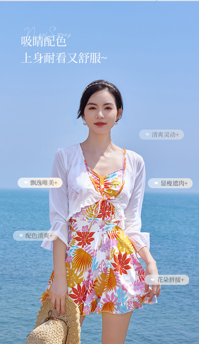 新款女士泳衣微透性感两件套泳装度假温泉泳衣雪纺轻薄款开衫泳裙