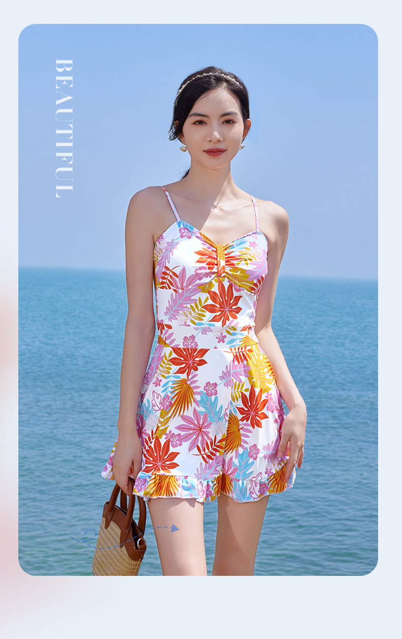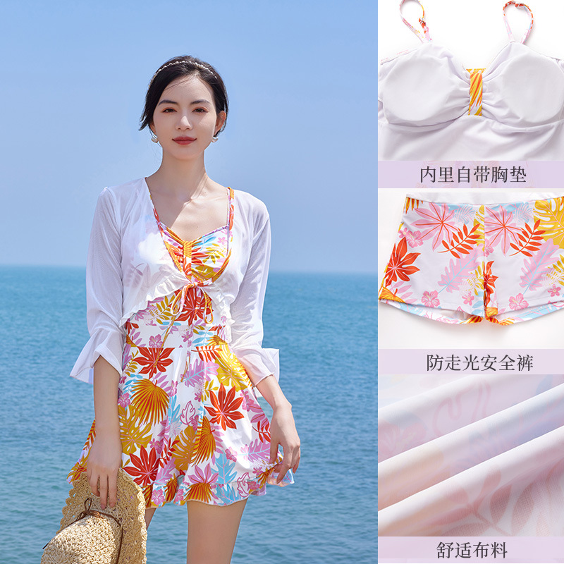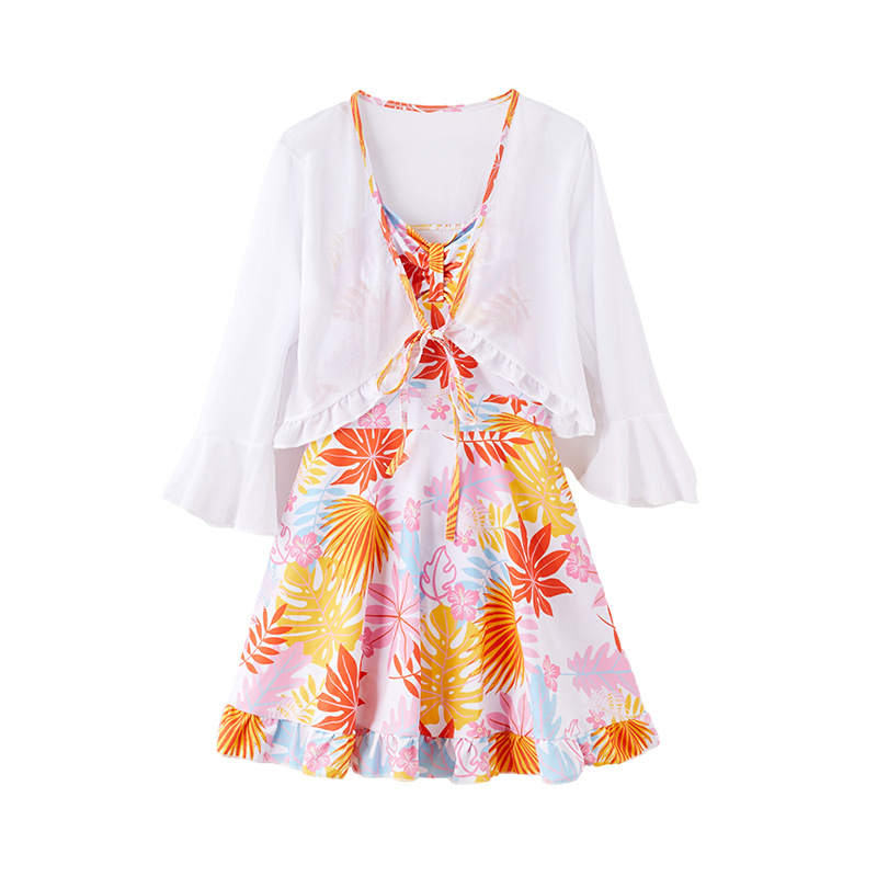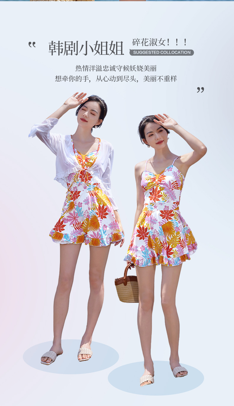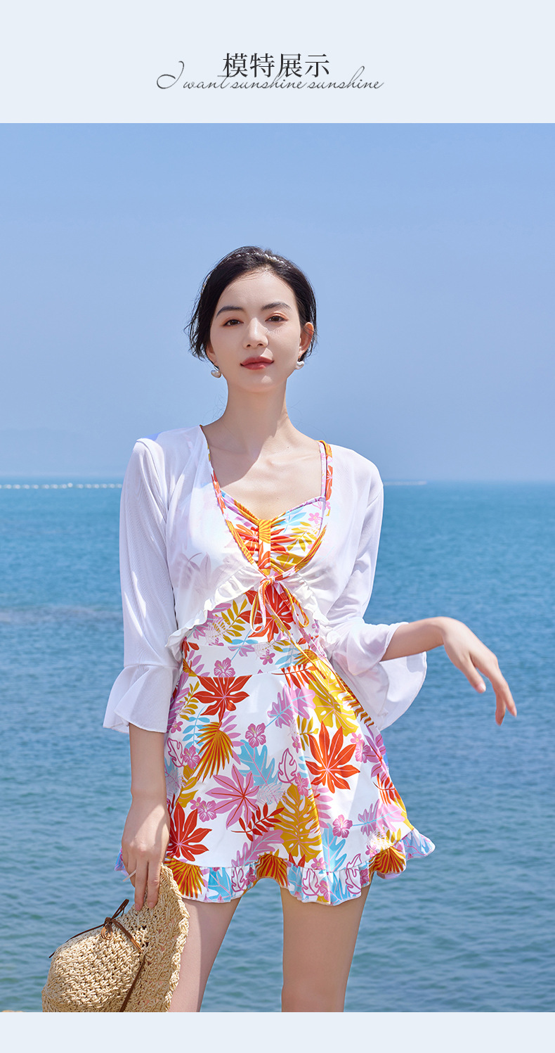 新款女士泳衣微透性感两件套泳装度假温泉泳衣雪纺轻薄款开衫泳裙