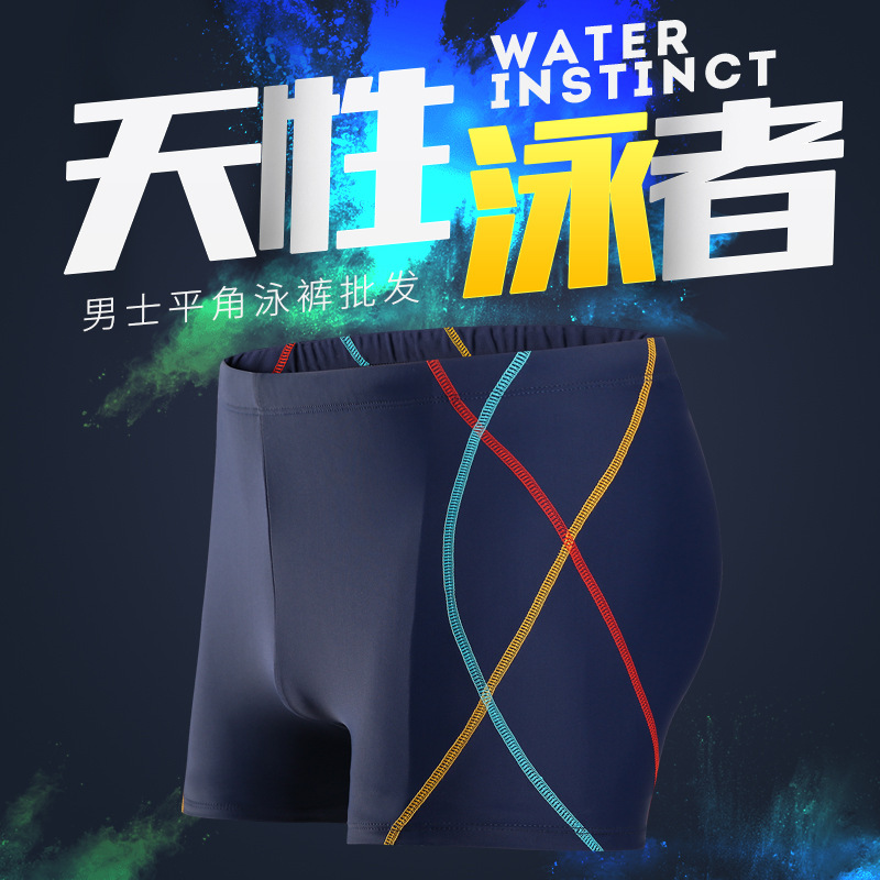 2023时尚透气男子高弹平角泳裤休闲沙滩温泉泳裤游泳训练短裤批发
