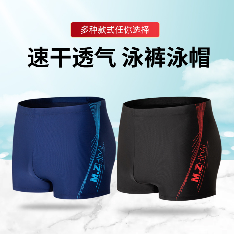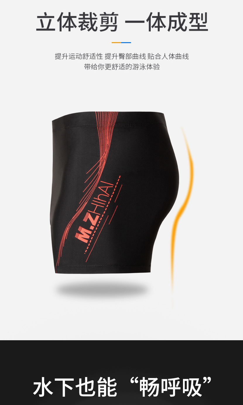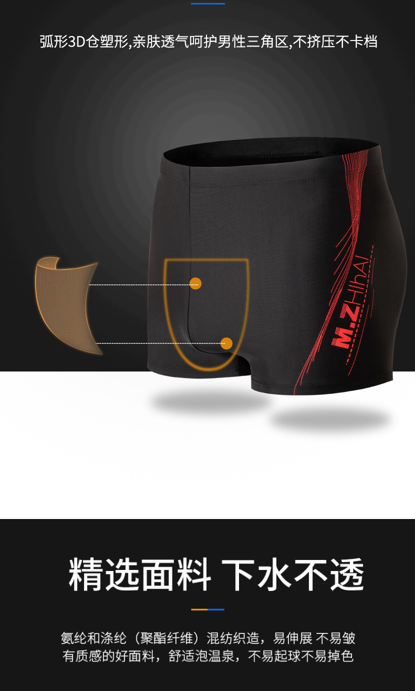 新款男士透气平角泳裤速干冰丝四角薄款游泳涉水运动泳裤加大尺码