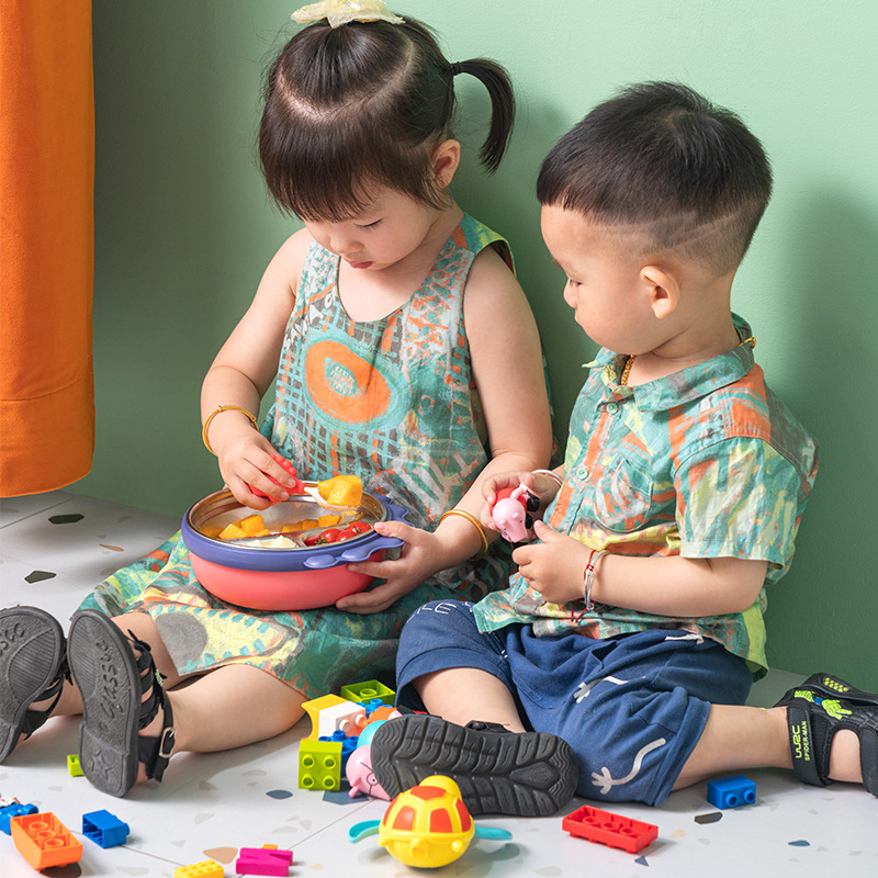 恐龙不锈钢儿童餐盘 防摔吸盘式 注水保温碗 宝宝分格盘 辅食餐具