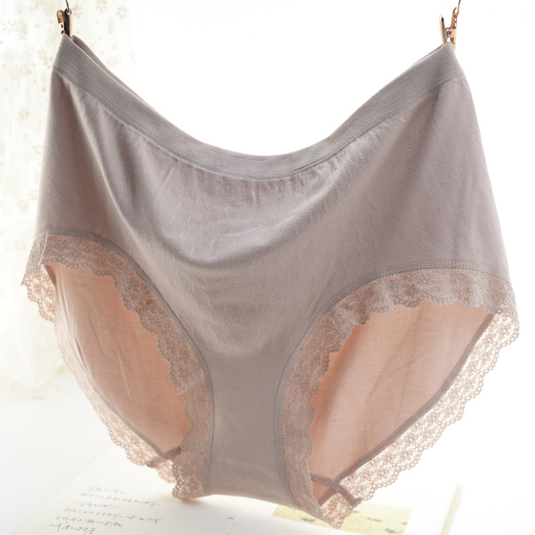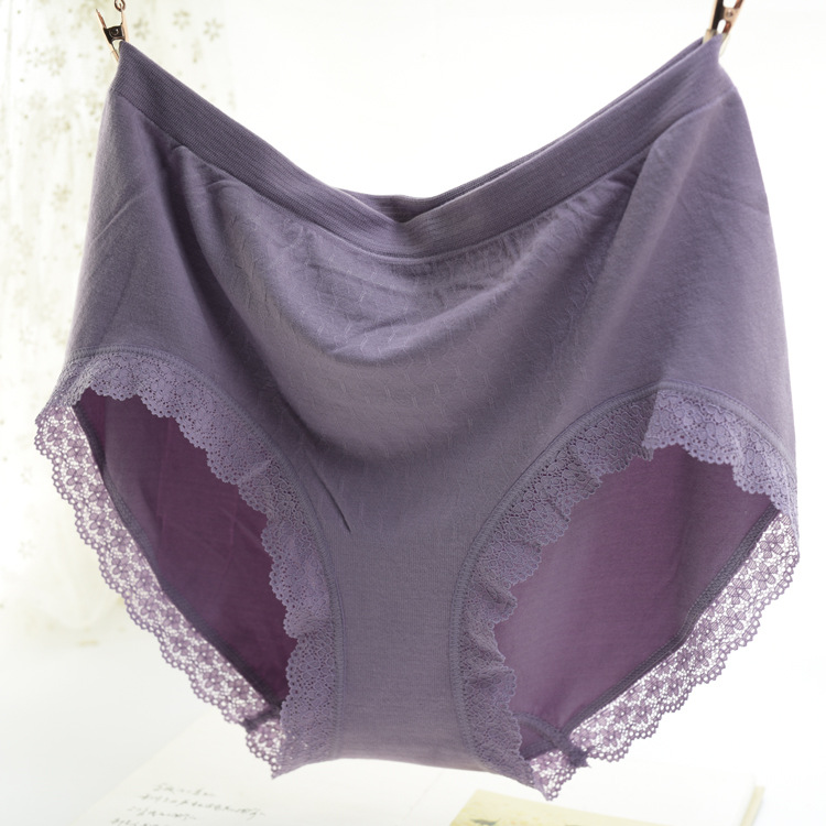 无缝一体式妈妈大码蕾丝内裤高弹宽松无痕纯色女士高腰内裤三角裤