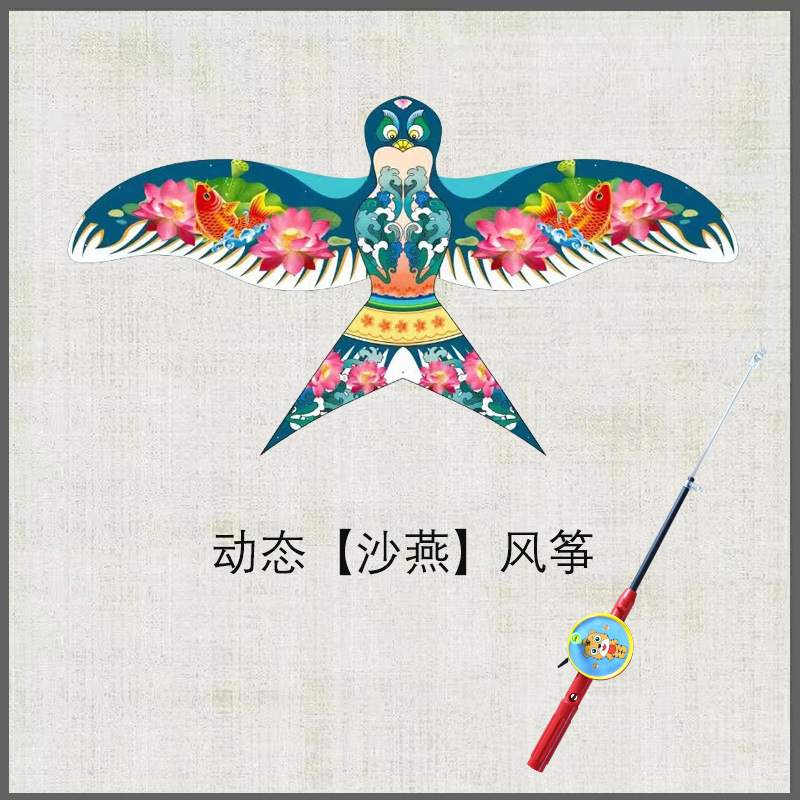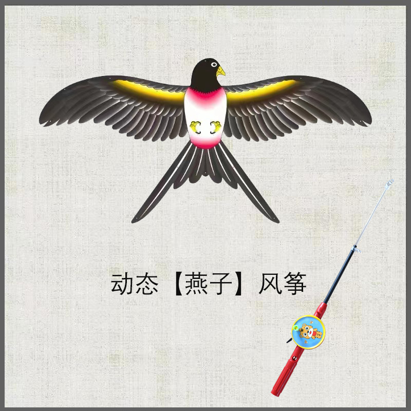 动态风筝批发 儿童老鹰燕子风筝 微风易飞手持翅膀抖动鱼竿风筝