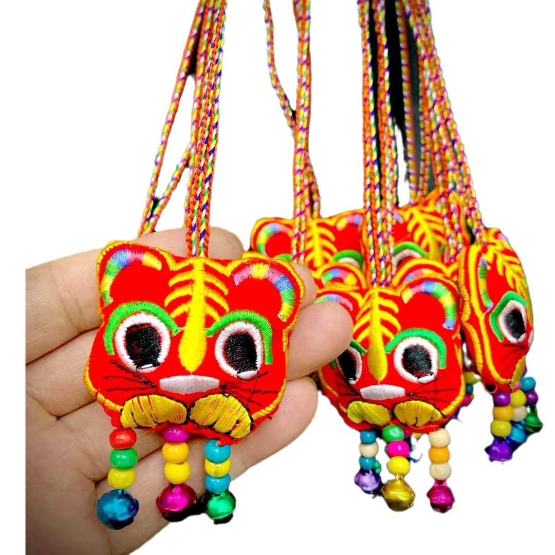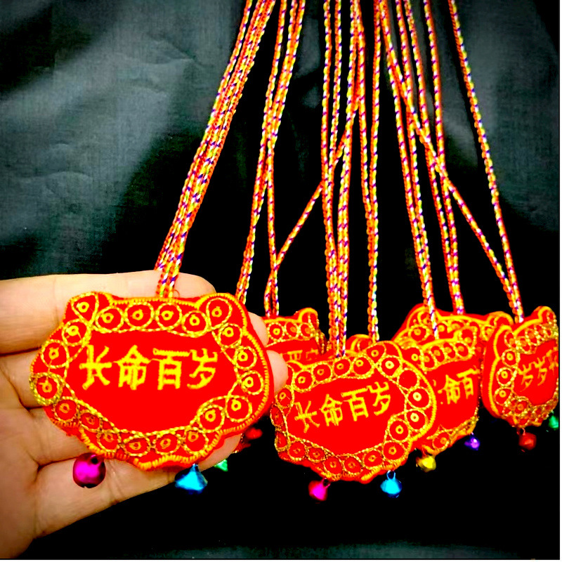 儿童响响项链,用手捏吊坠会响,精品刺绣+铃铛,虎头和长命锁福字三个款式,每个款大小两个型号,详情做工看照片,款式混搭发货,大小一,一个价,刺绣亮片精品小号做工精致,总长度42−45cm左右,吊坠5到8cm左右(款式不同前后误差1cm为正常)五彩绳+刺绣亮片+流苏高端大气上档次