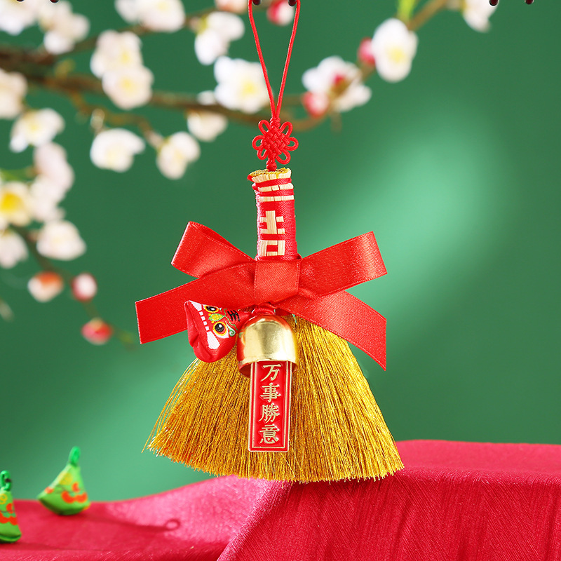 端午节进宅大吉小扫帚挂件迷你三角粽子艾草香包宝宝床头挂件批发