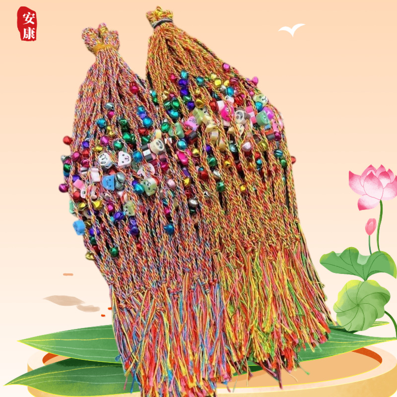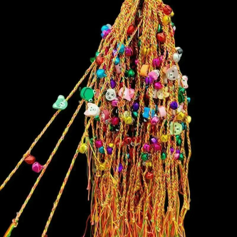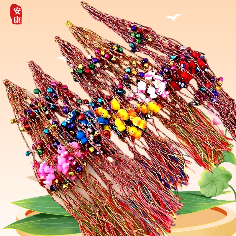 五彩铃铛手绳,十几个款式,1000根起批0.35一根,(量越大款式越多)总长长28左右,吊坠0.8到1.5cm左右,吊坠配饰三个系列:1.动物系列,2.镀金系列,3.混乱系列,端午节必备,颜色款式随机发,端午节需求量大