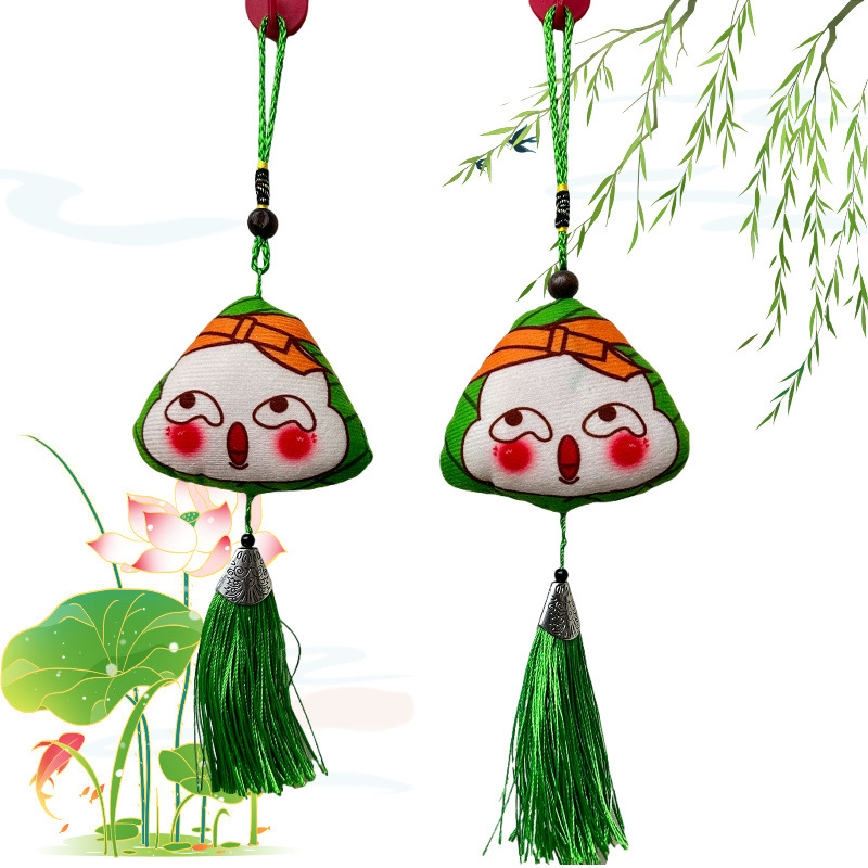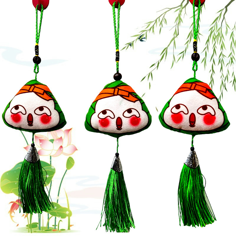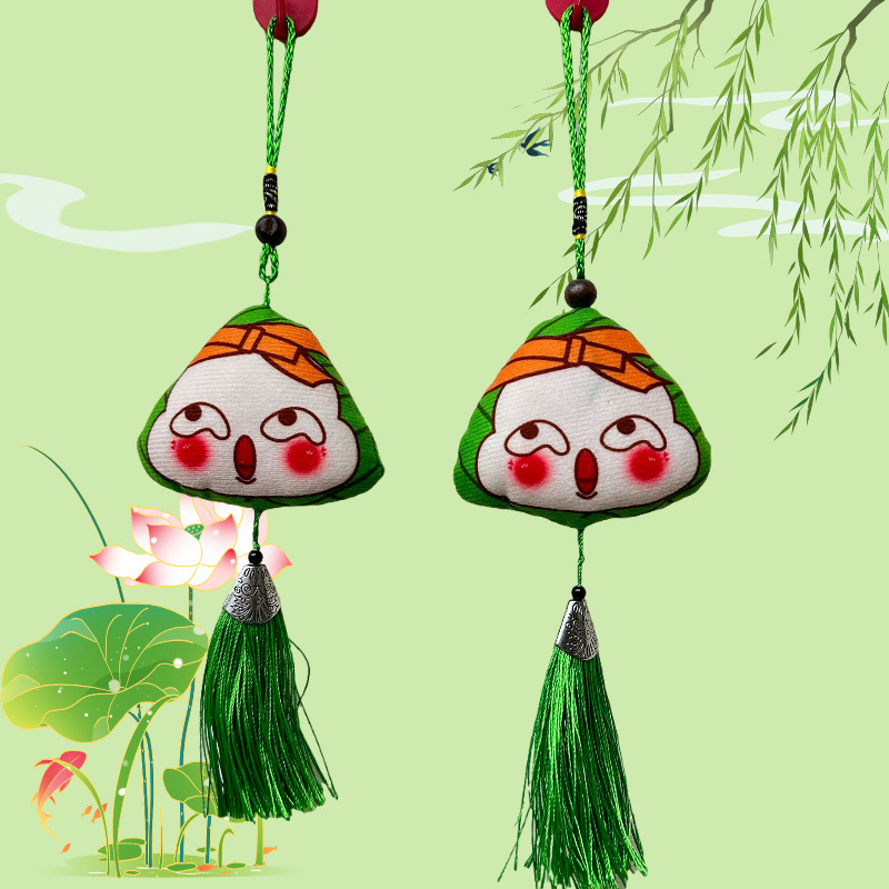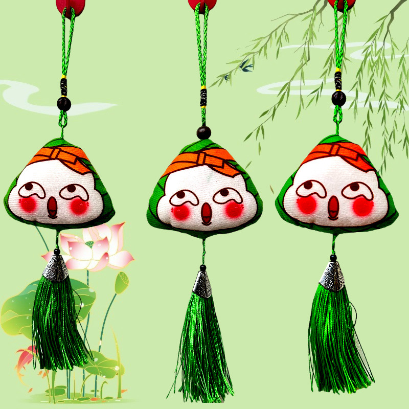 端午节笑脸粽子香包绿色流苏表情包挂件香包香囊挂饰腰带挂件