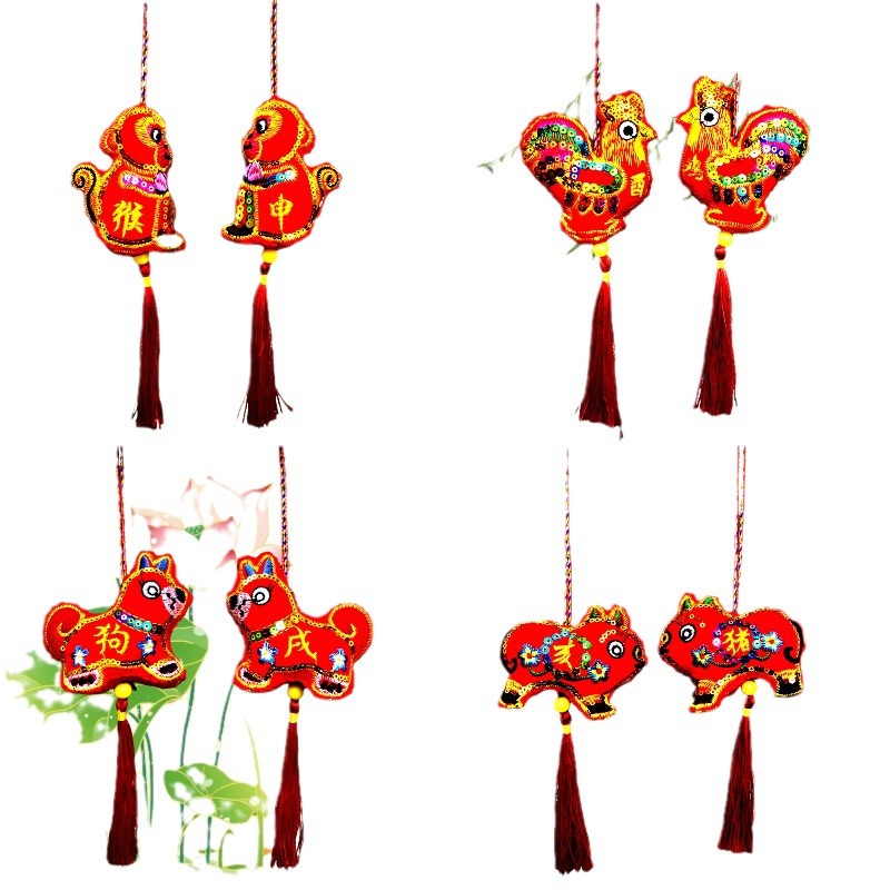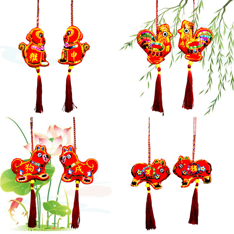 立体十二生肖项链精品刺绣亮片彩色五彩绳流苏端午节儿童挂脖项链