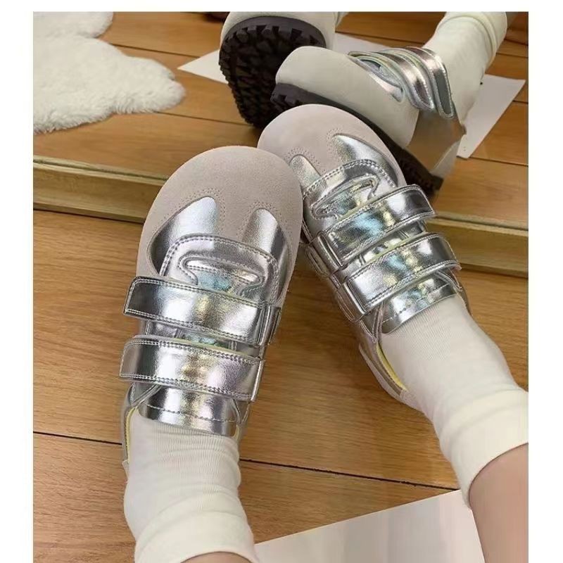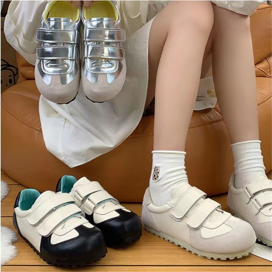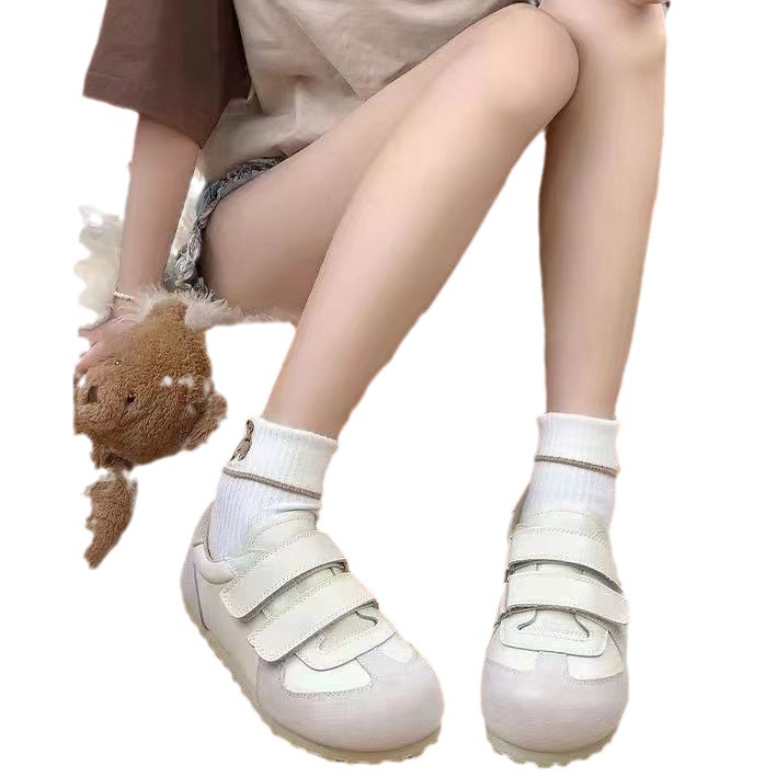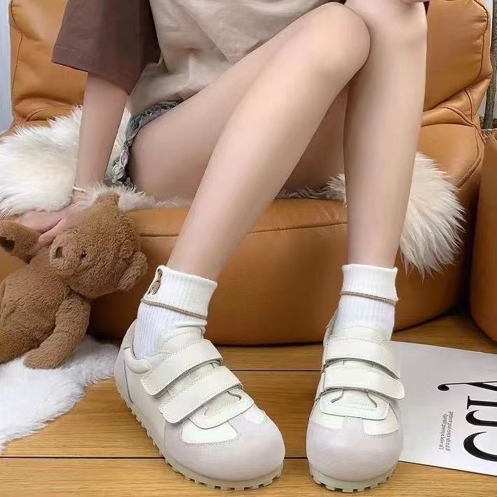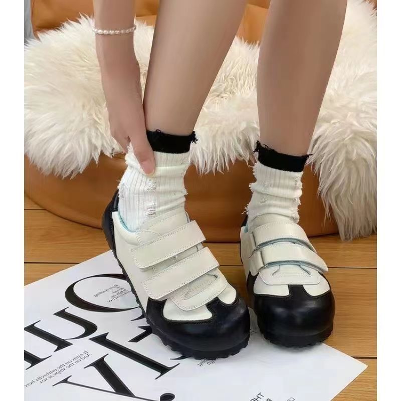 「奶油泡芙」魔术贴小白鞋女德训鞋2023新款秋季低跟厚底休闲鞋板