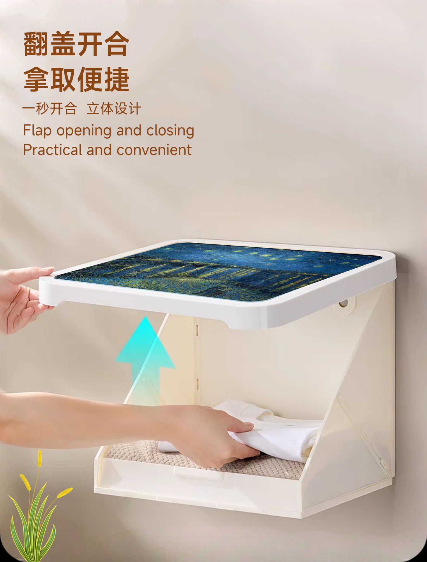 浴室壁画收纳箱卫生间放衣服神器防水免打孔壁挂折叠收纳柜置物架
