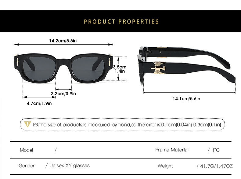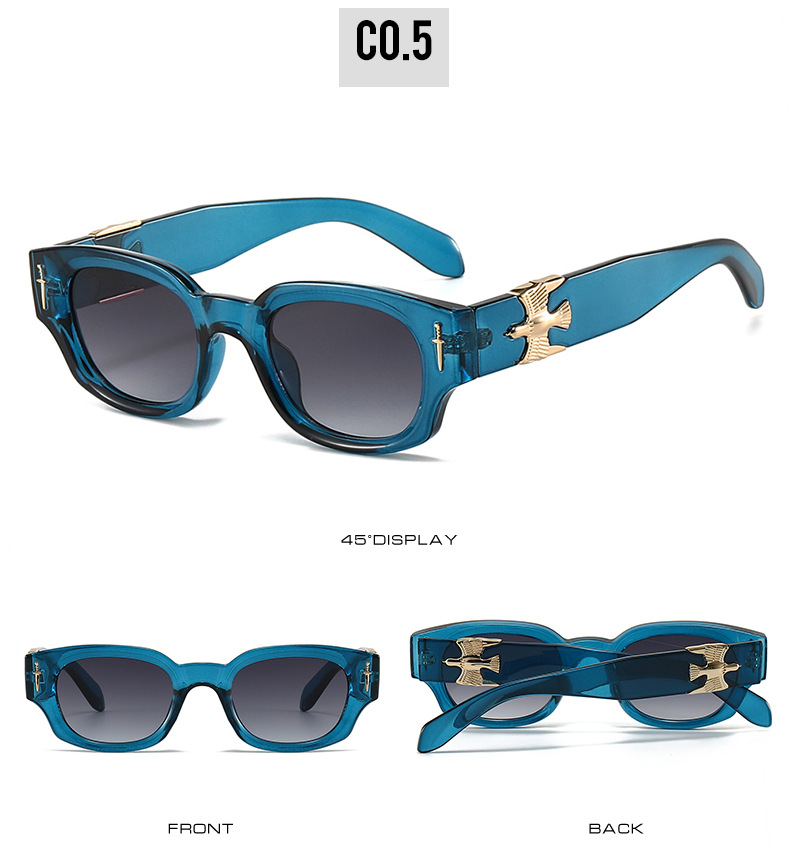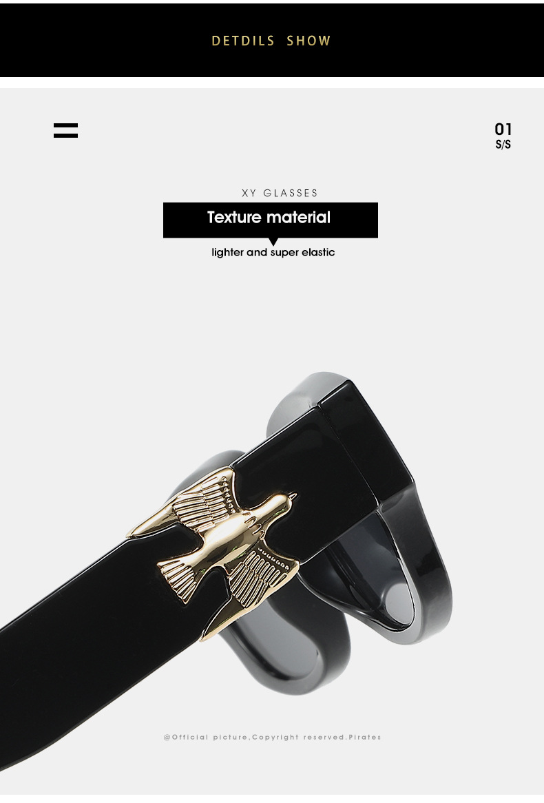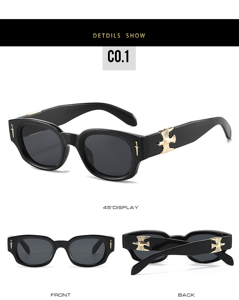 2024跨境新款方框太阳镜 欧美个性元素宝剑和老鹰金属时尚墨镜男