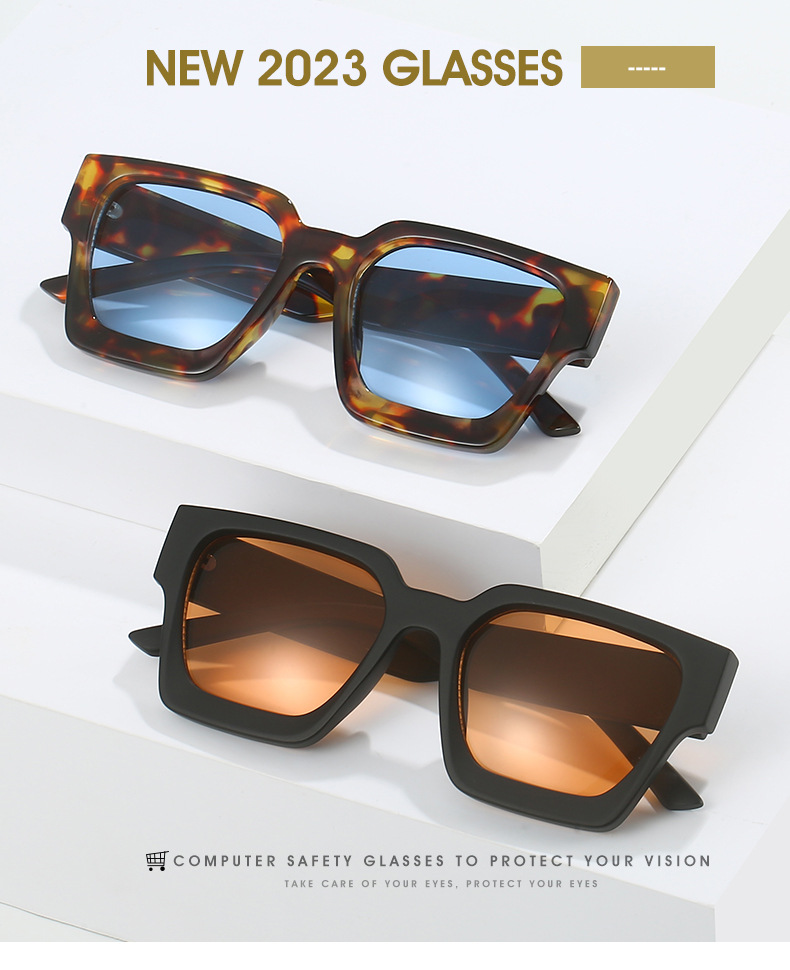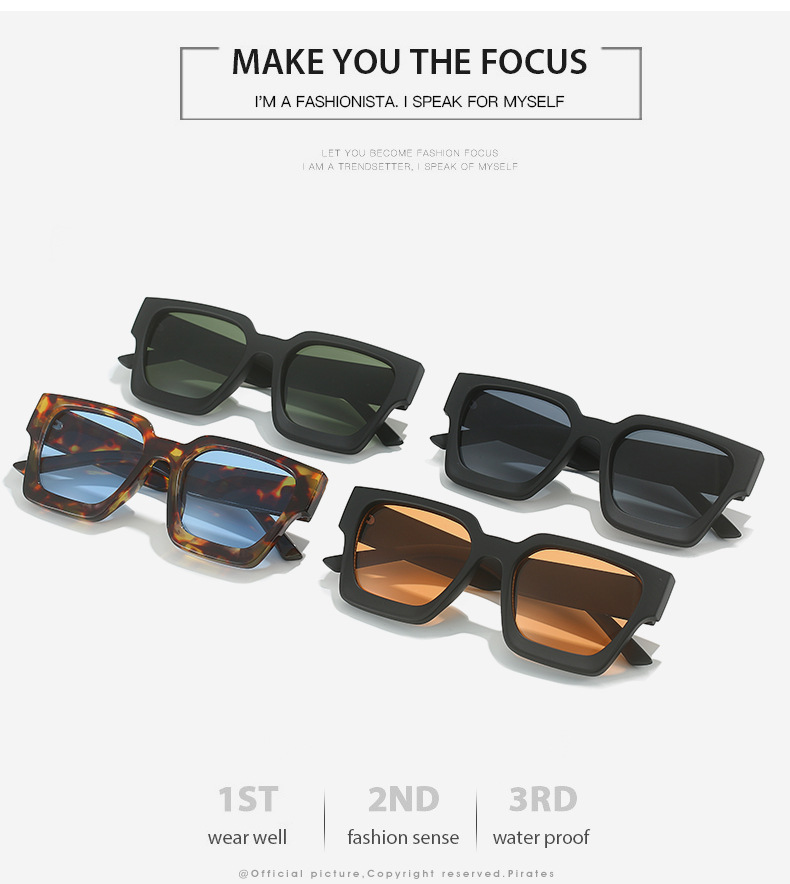 新款方框太阳镜欧美经典复古墨镜男女跨境街拍摩登防板材太阳眼镜