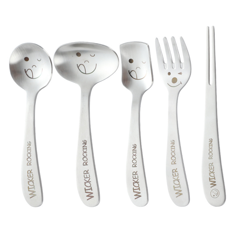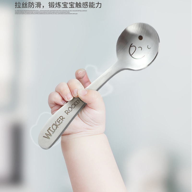 儿童304不锈钢勺子卡通笑脸小勺子宝宝辅食餐具幼儿园喂养勺子