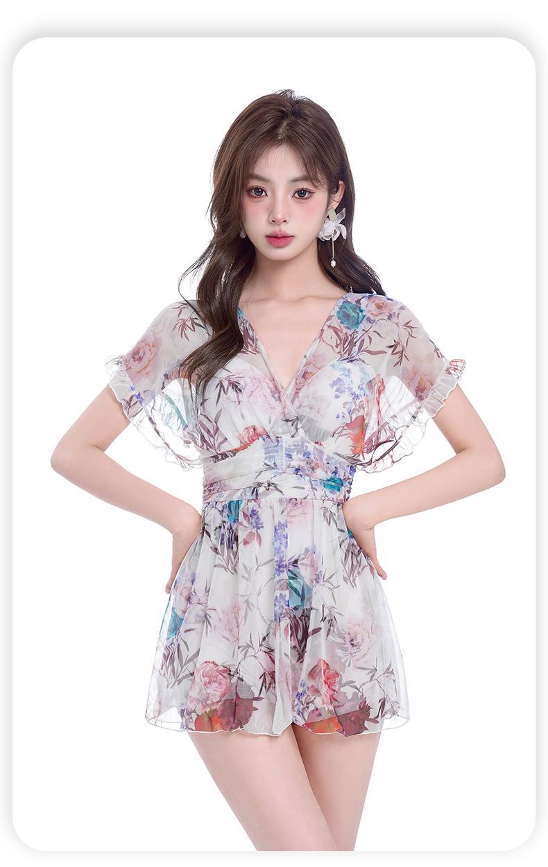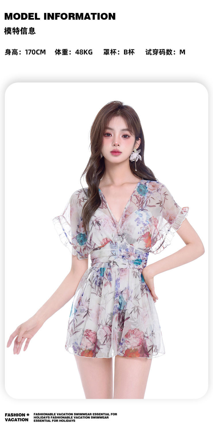 泳衣女裙式胖MM大码裙式连体保守遮肉显瘦韩版ins高级感温泉泳装