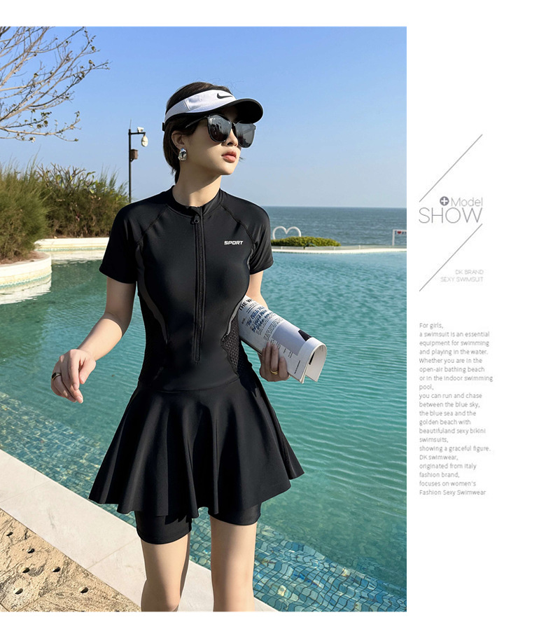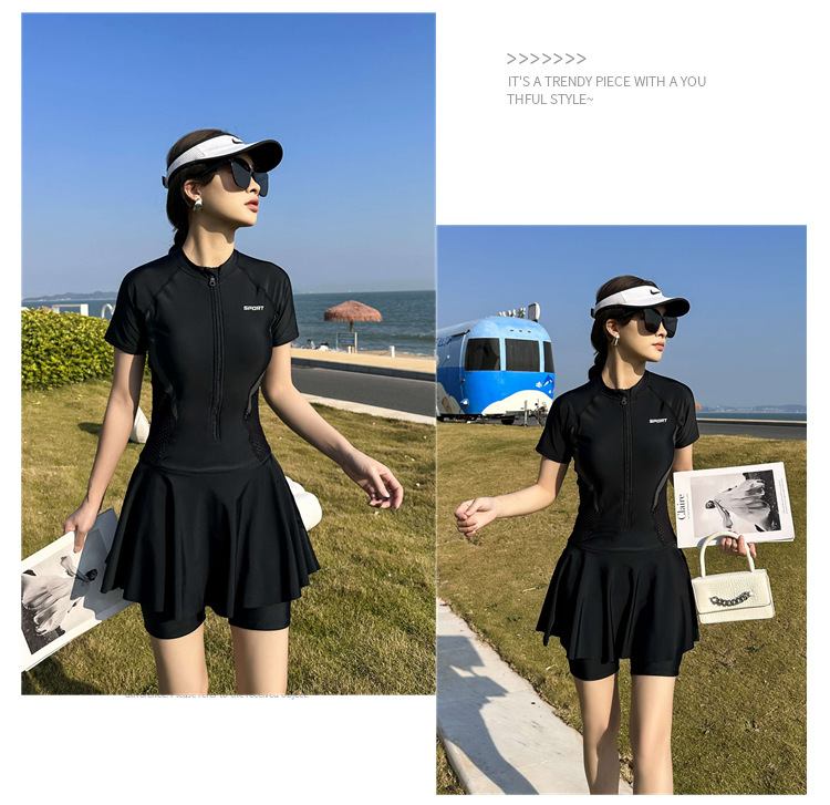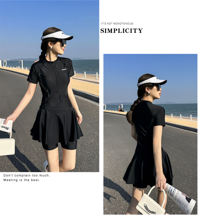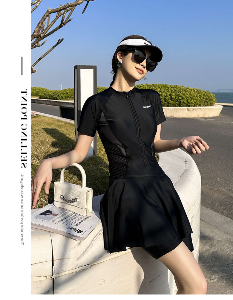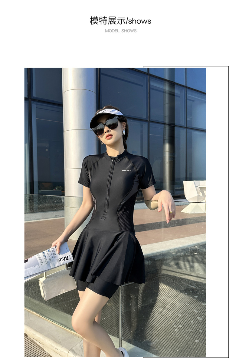泳衣女运动竞技专用游泳馆新款2024裙式连体保守显瘦韩版ins泳装