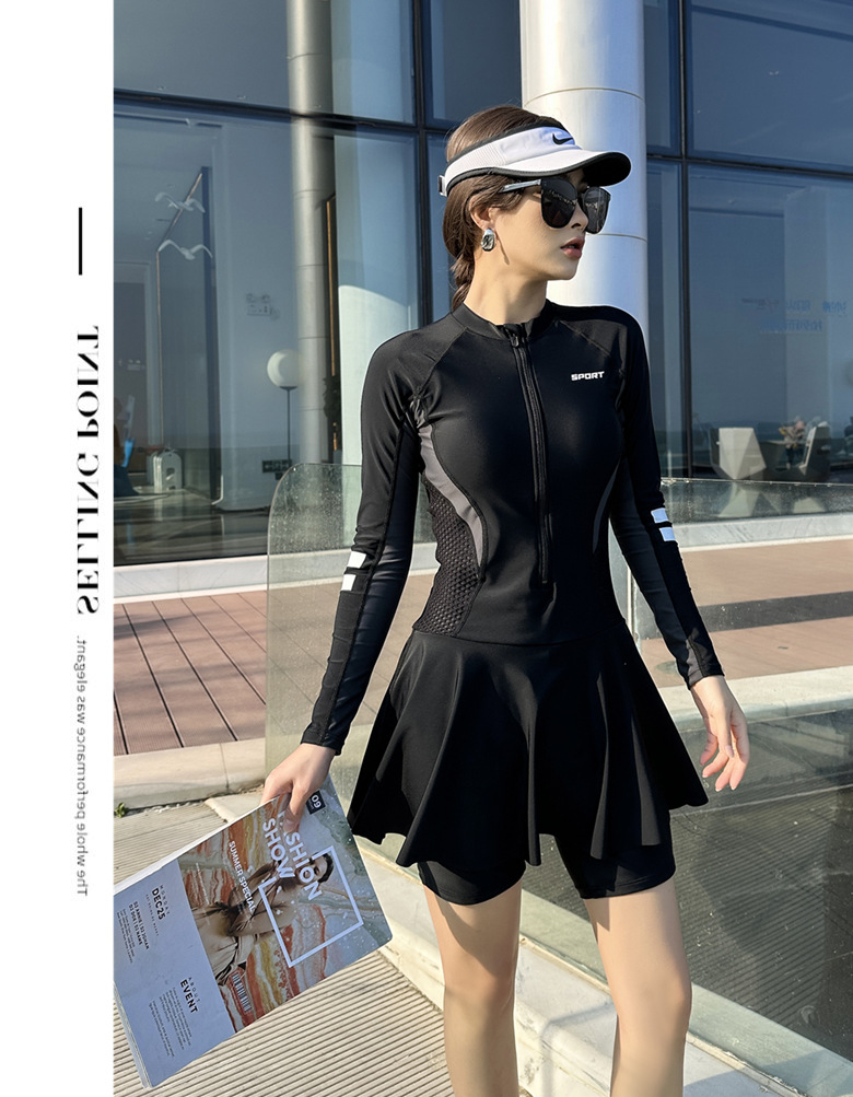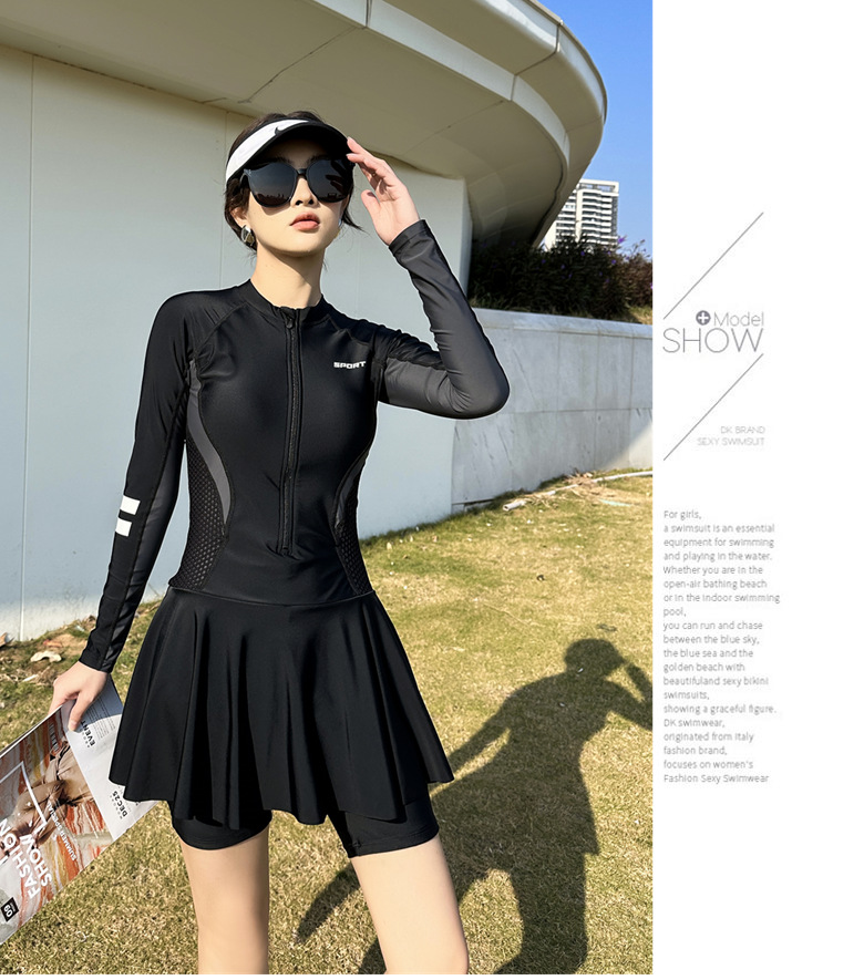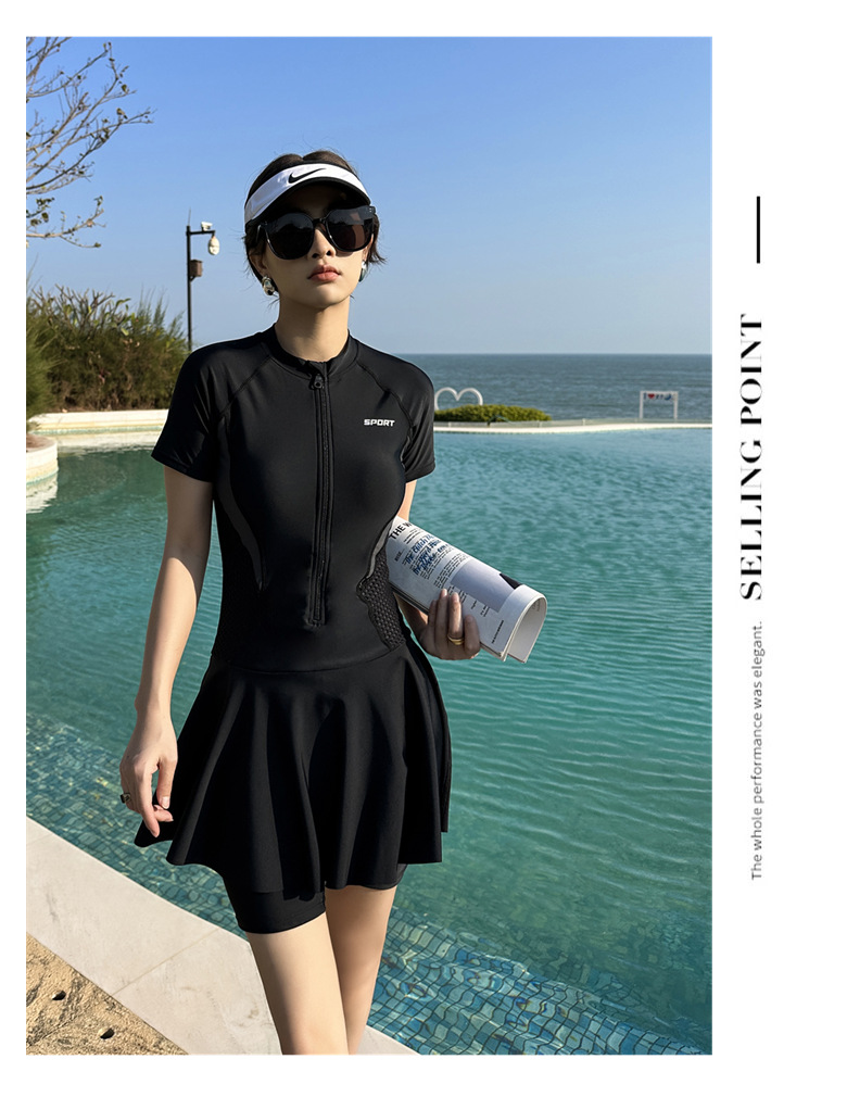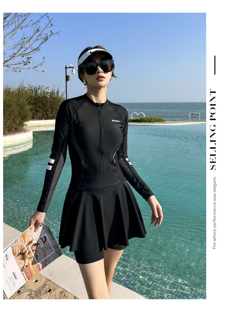 泳衣女运动竞技专用游泳馆新款2024裙式连体保守显瘦韩版ins泳装