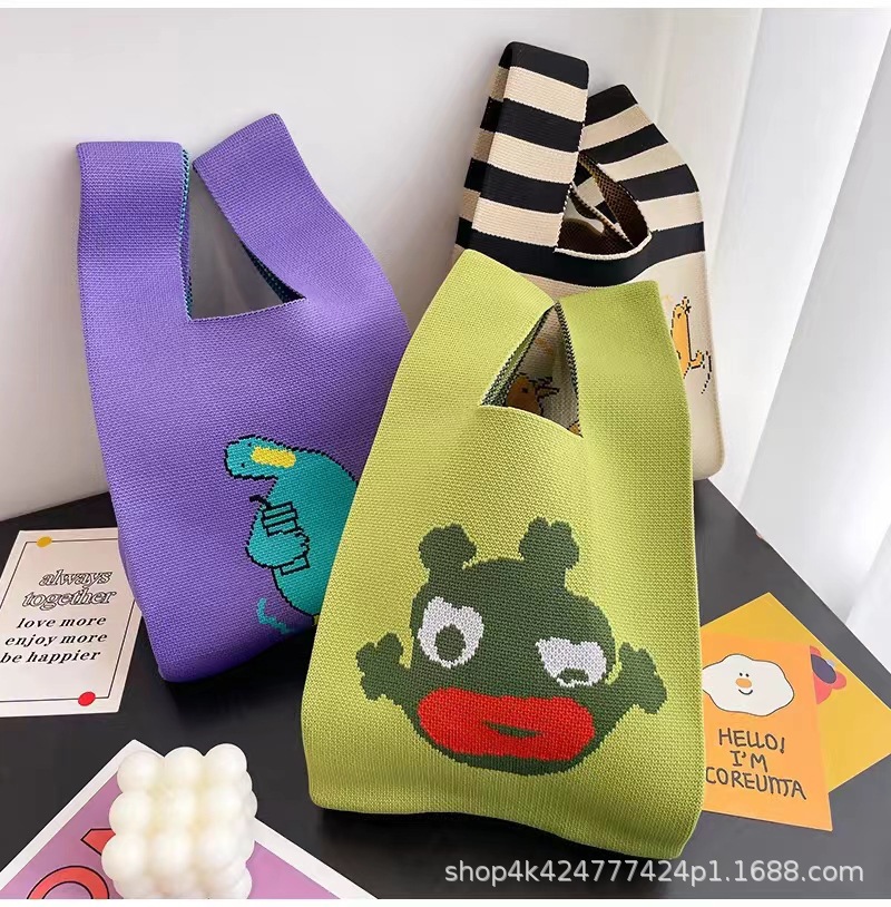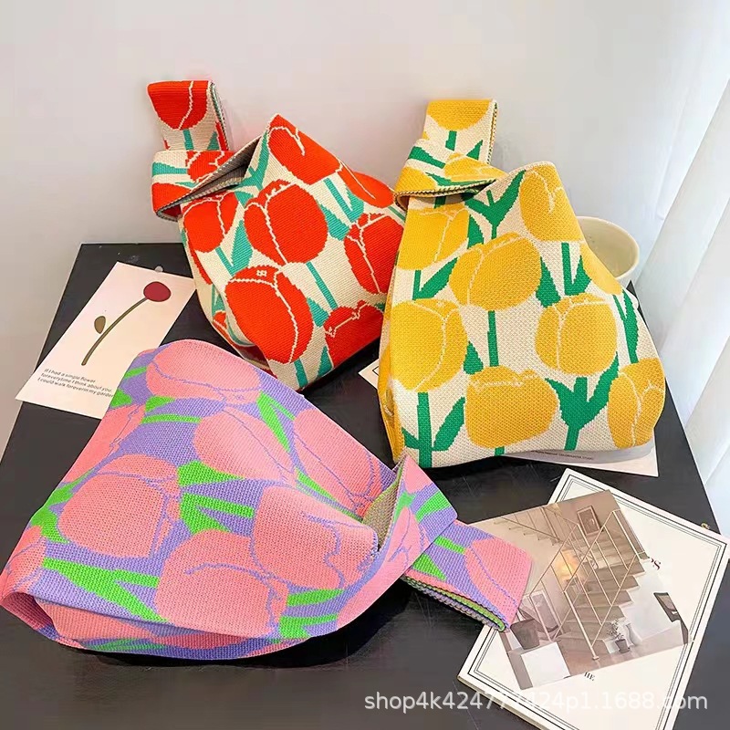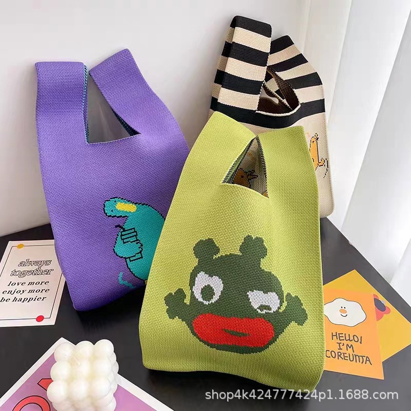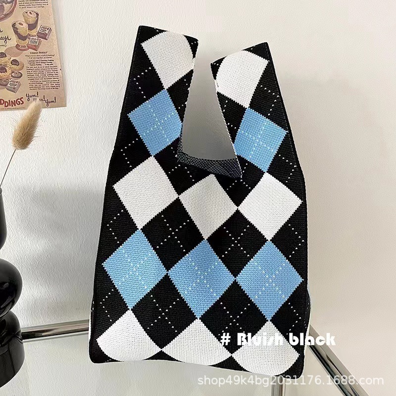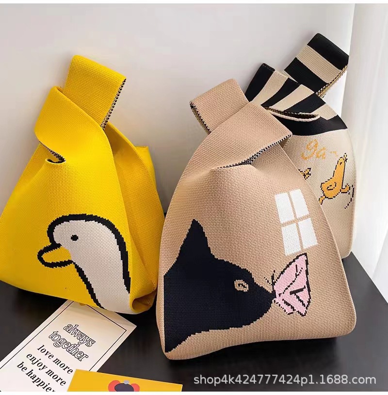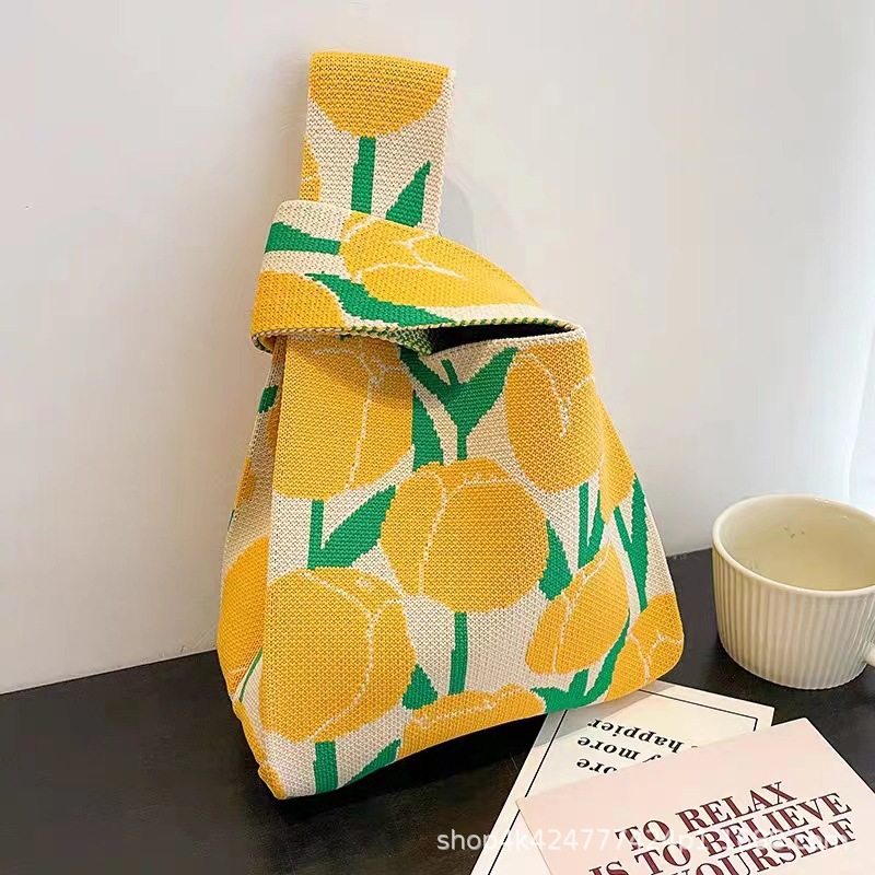 ins网红手提包女针织毛线水桶包日韩版百搭手拎休闲托特包盒饭袋