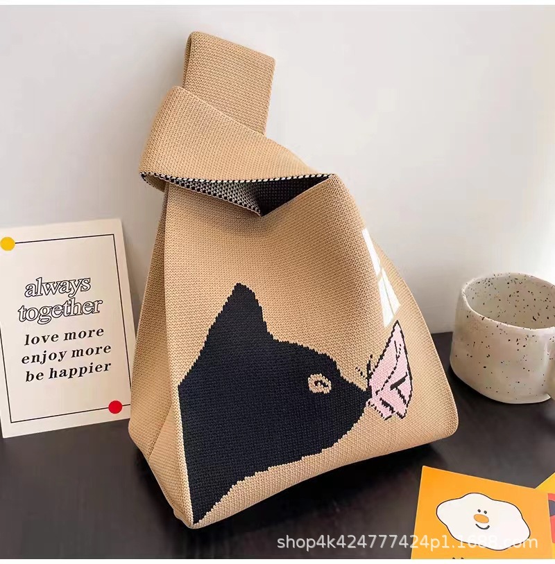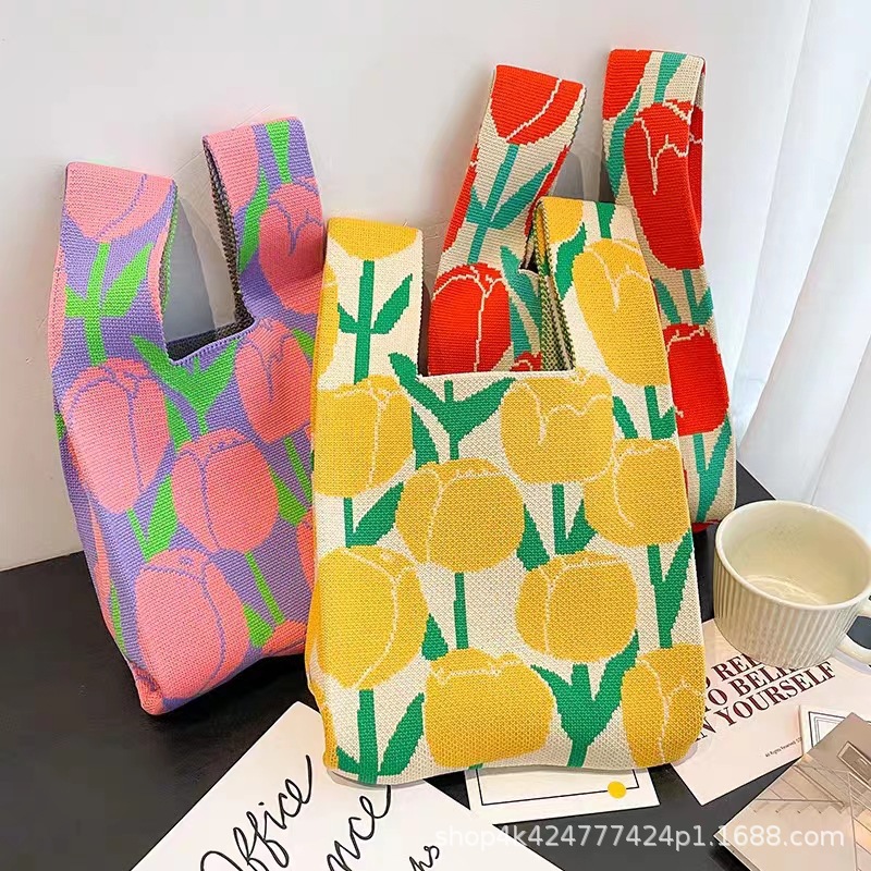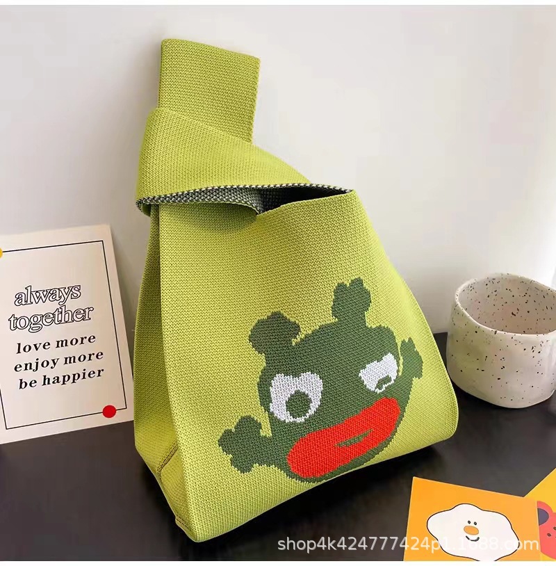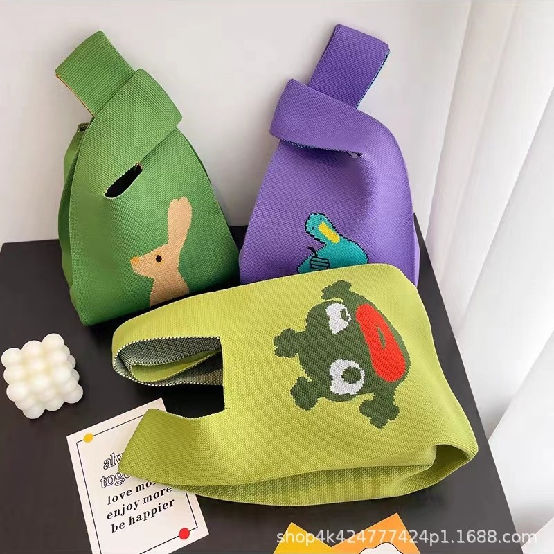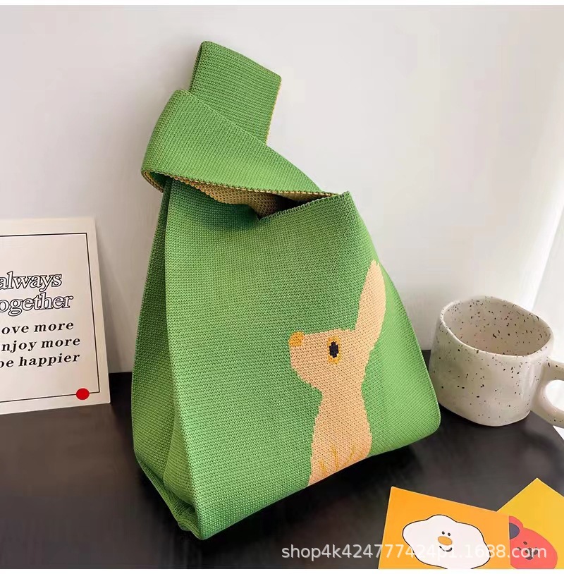 ins网红手提包女针织毛线水桶包日韩版百搭手拎休闲托特包盒饭袋