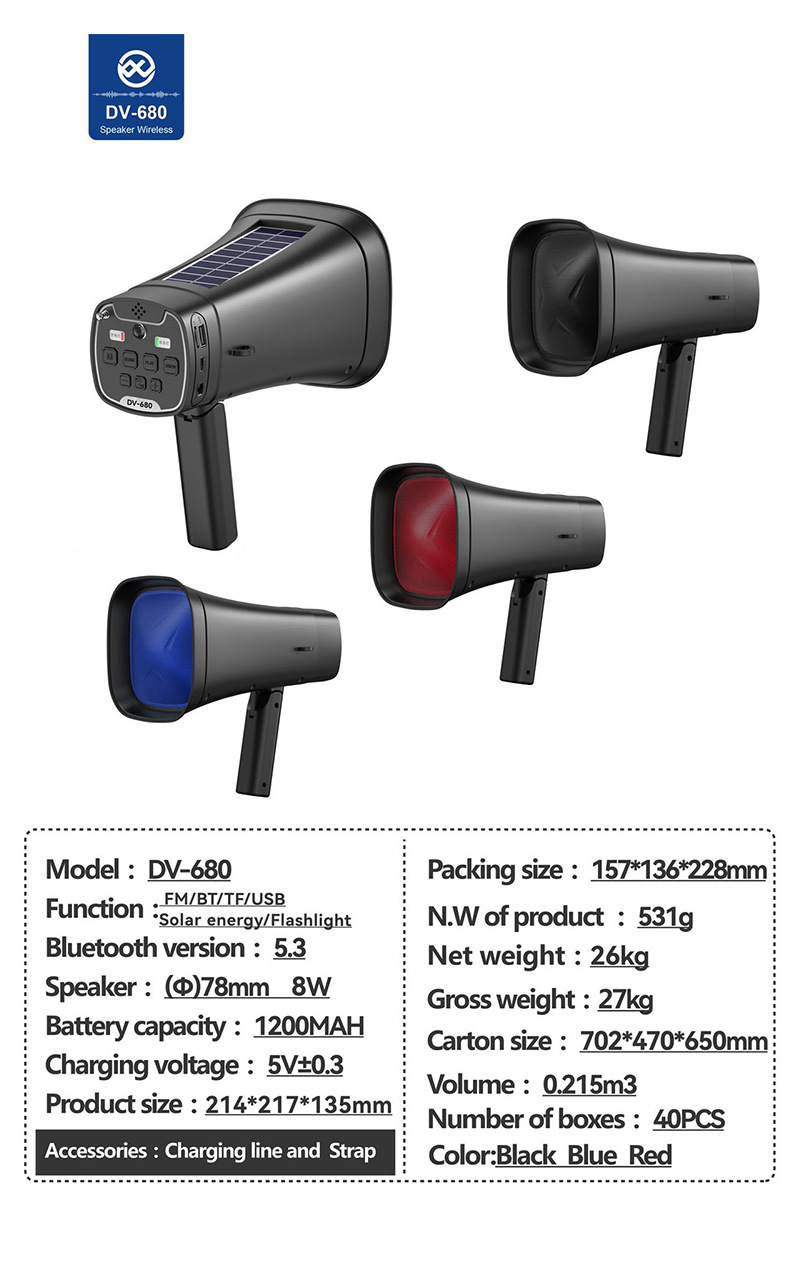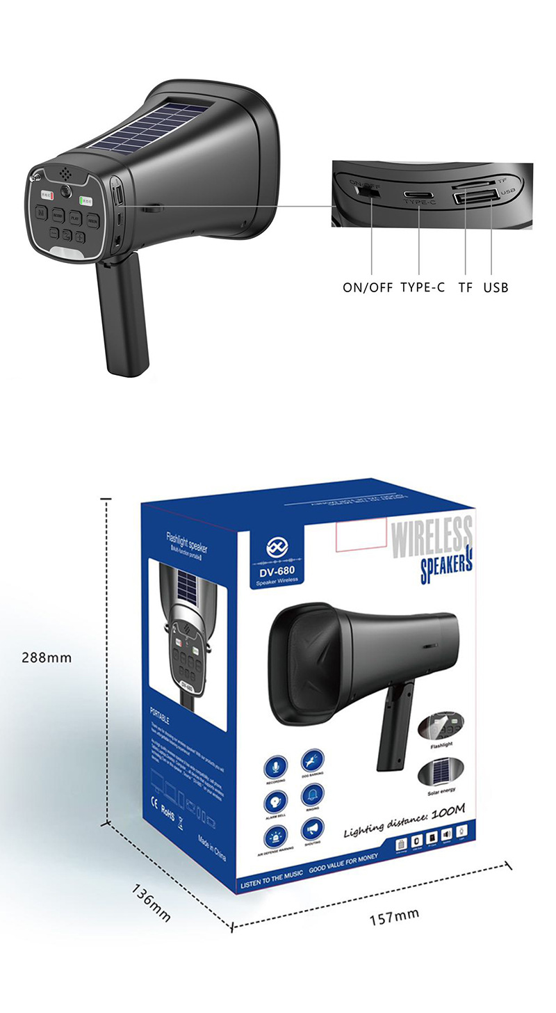 太阳能无线蓝牙户外录音喇叭叫卖器地摊多功能手持扩音器DV-680