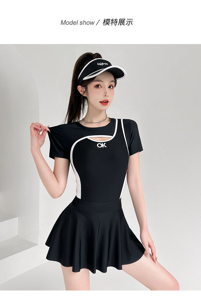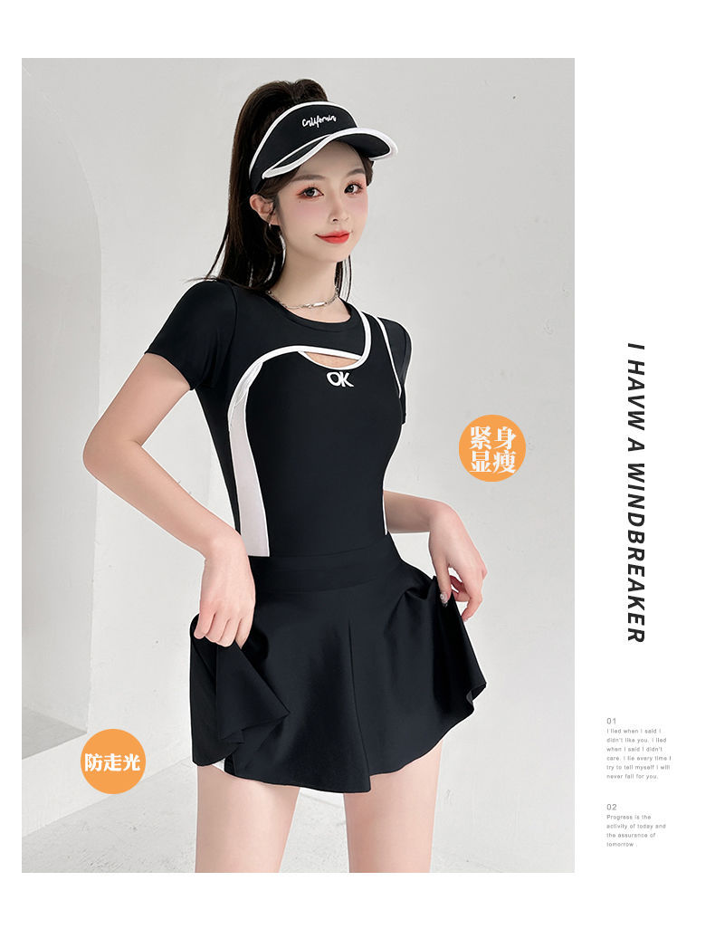 泳衣女连体保守两件套裙式遮肚显瘦韩版ins风竞技专用高级感泳装