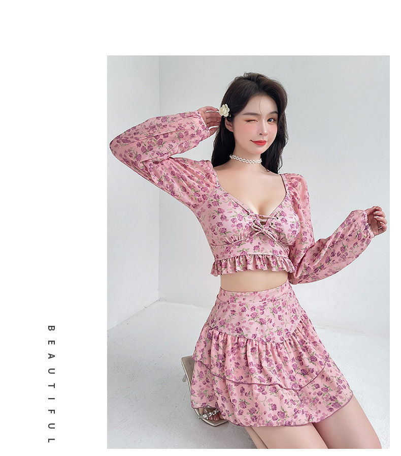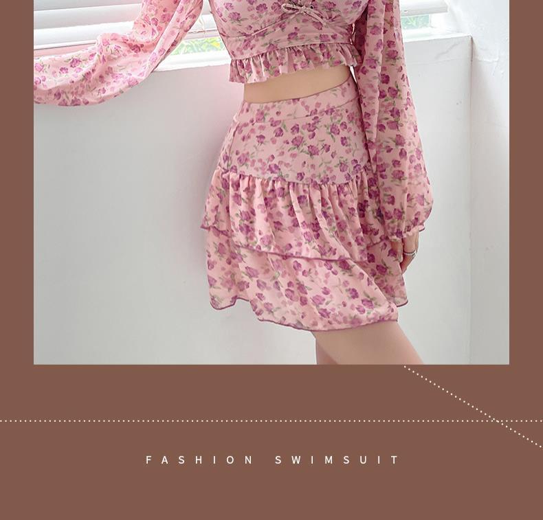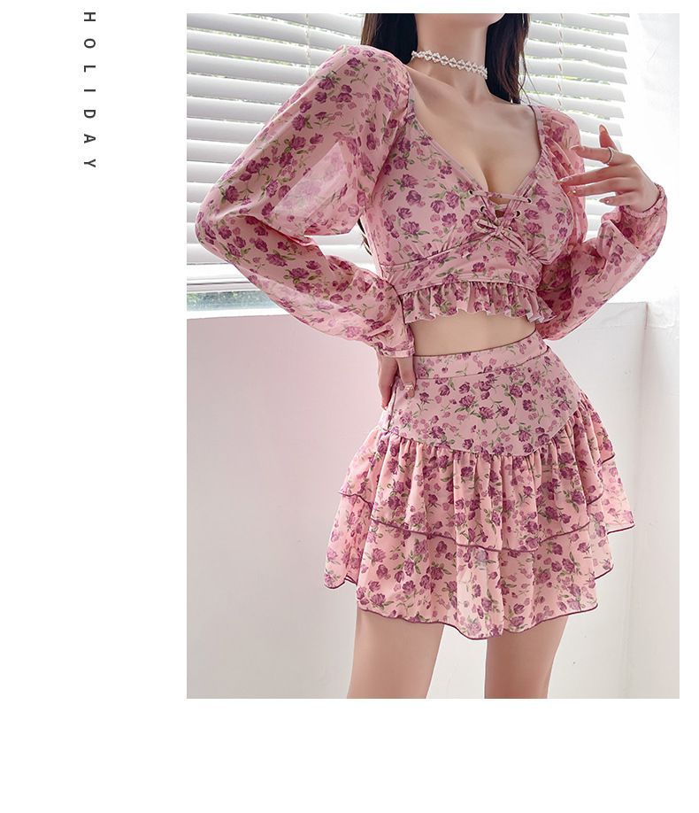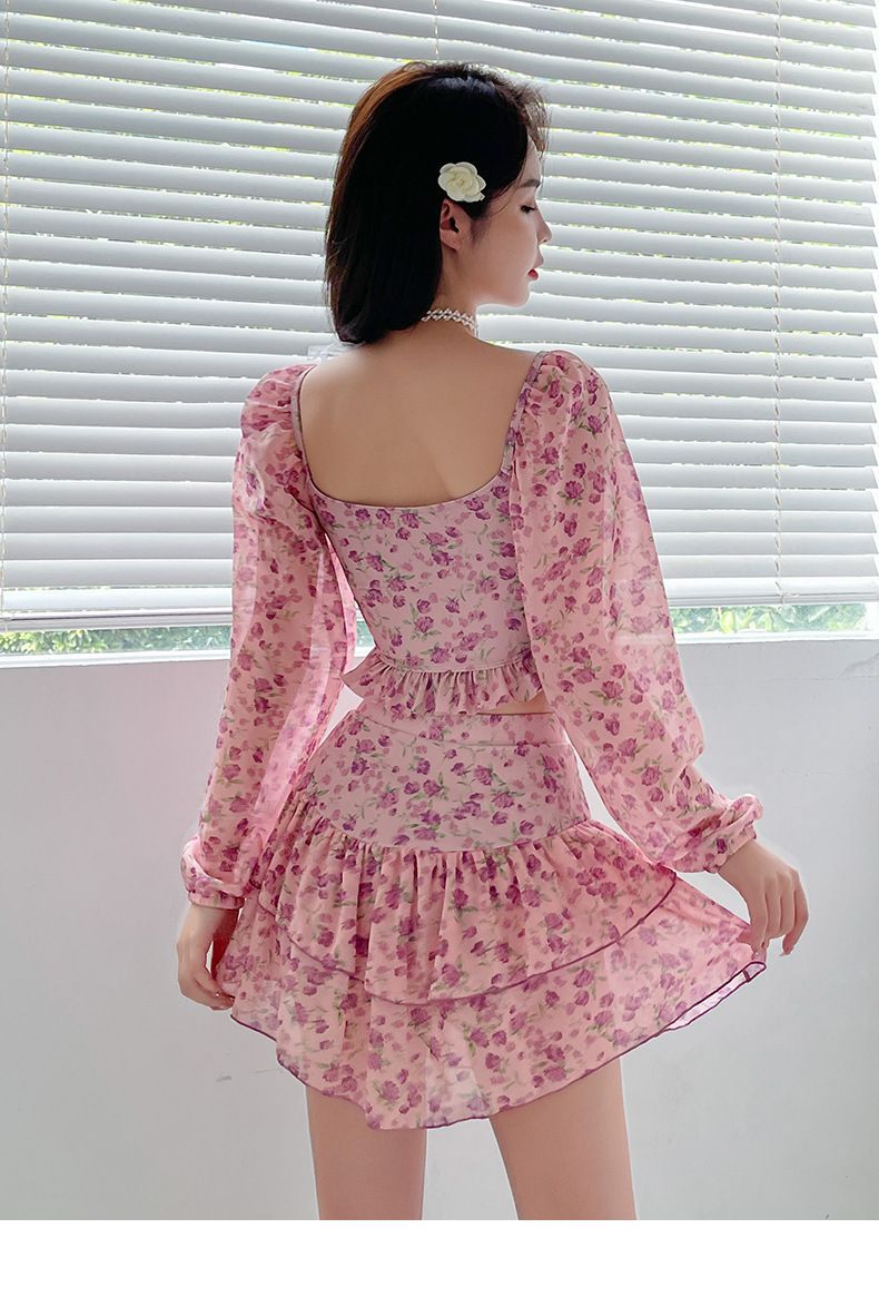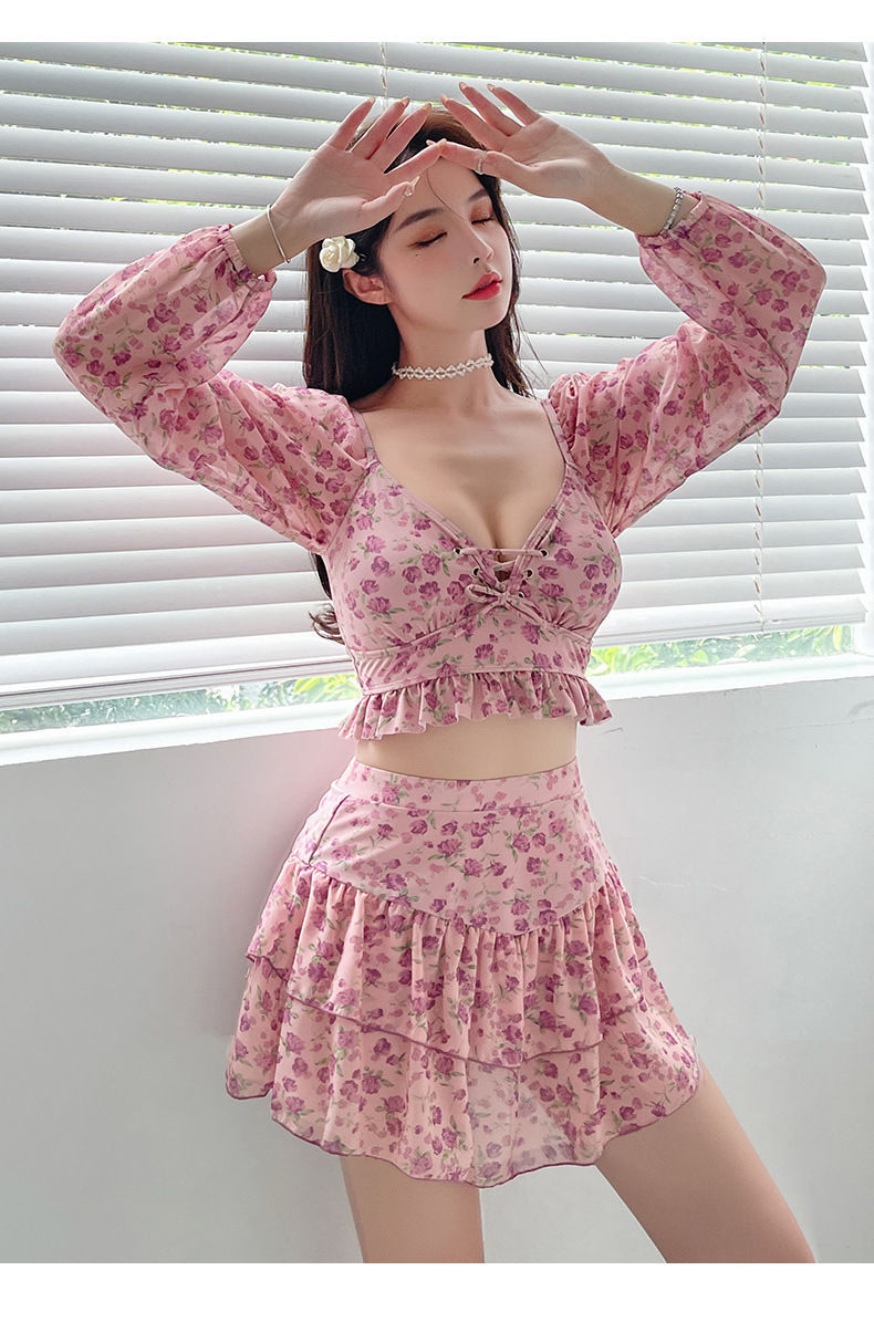 泳衣女长袖裙式分体保守高腰遮肚显瘦韩版ins风少女小胸聚拢泳装