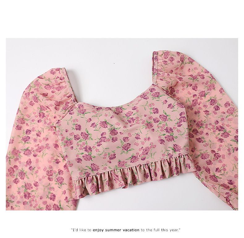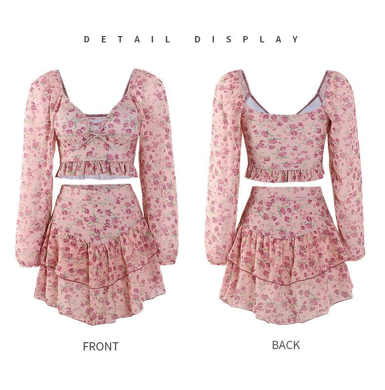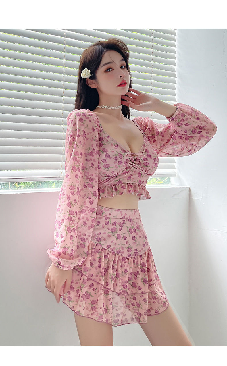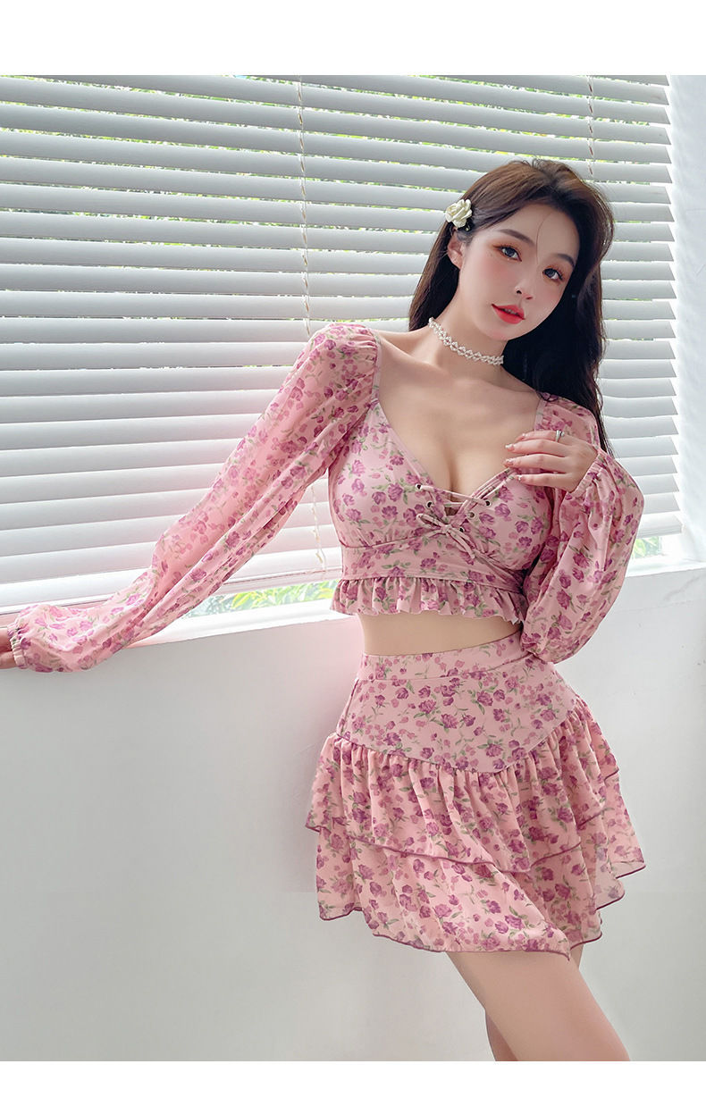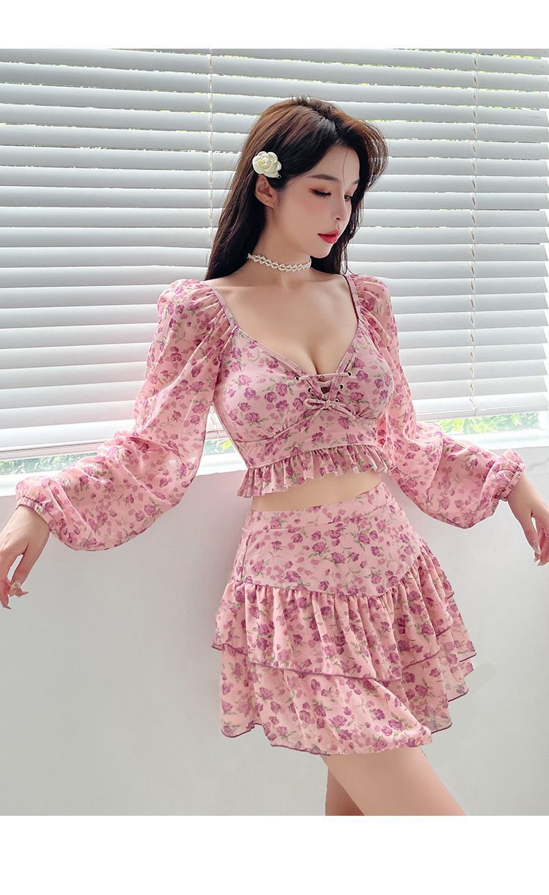 泳衣女长袖裙式分体保守高腰遮肚显瘦韩版ins风少女小胸聚拢泳装