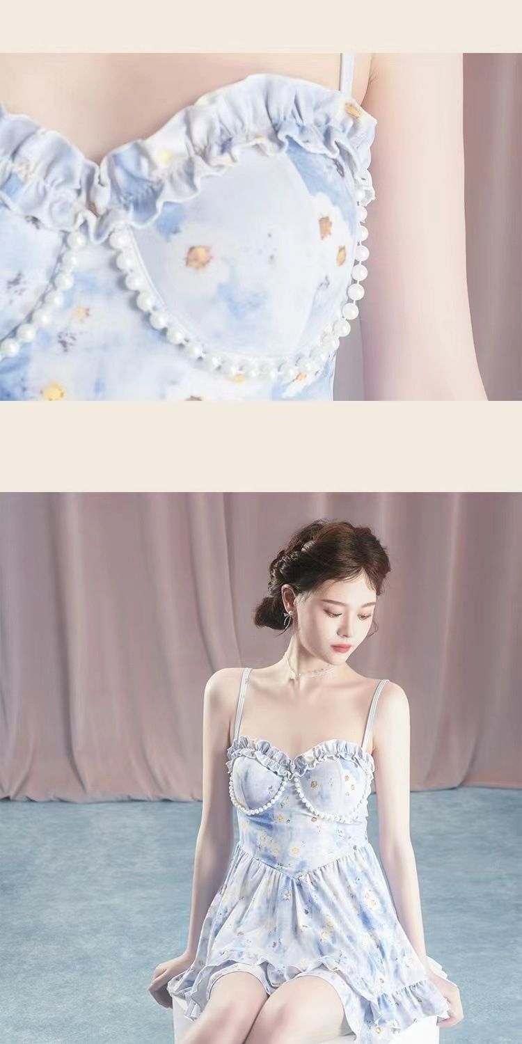 泳衣女裙式连体保守显瘦韩版ins风钢托聚拢少女防晒罩衫超仙温泉