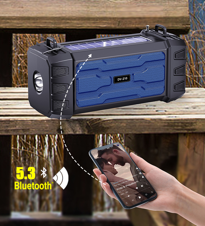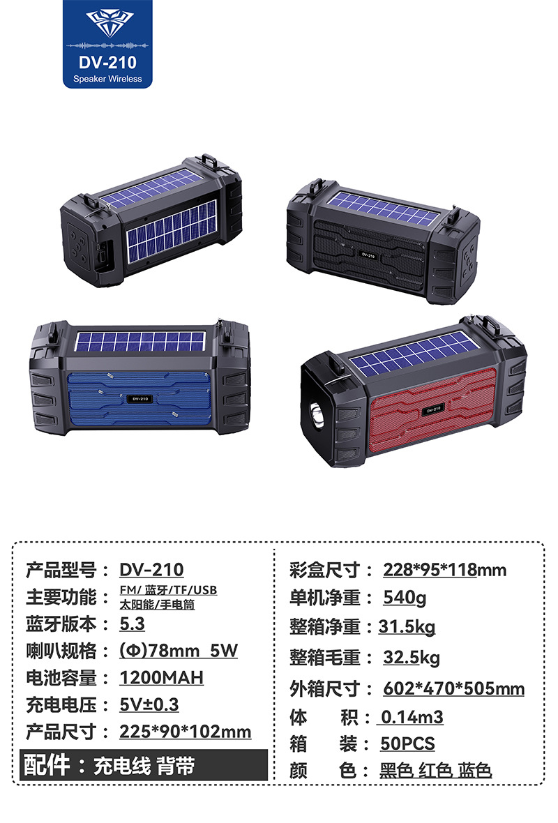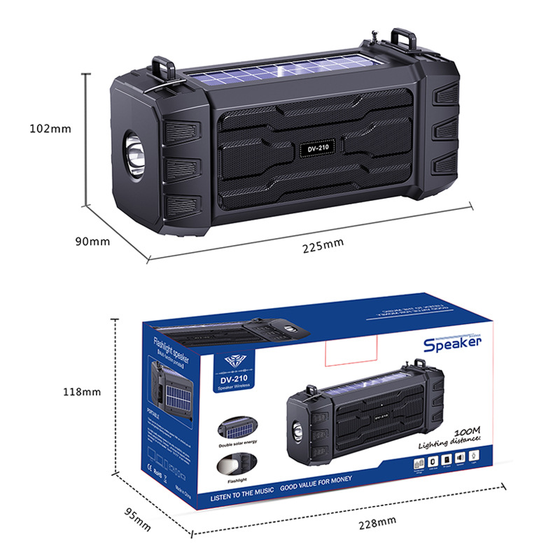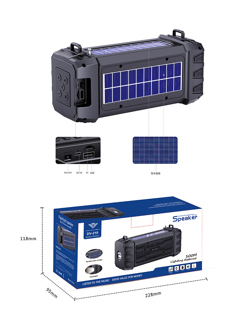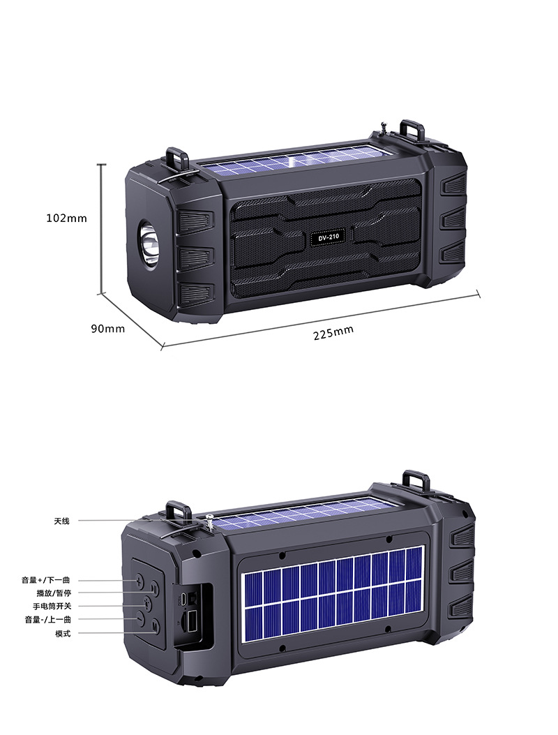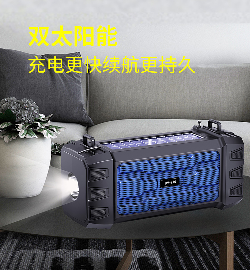 太阳能蓝牙音响便捷式手电筒插卡fm收音机多功能非洲跨境DV-210