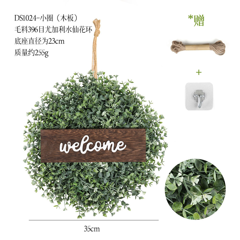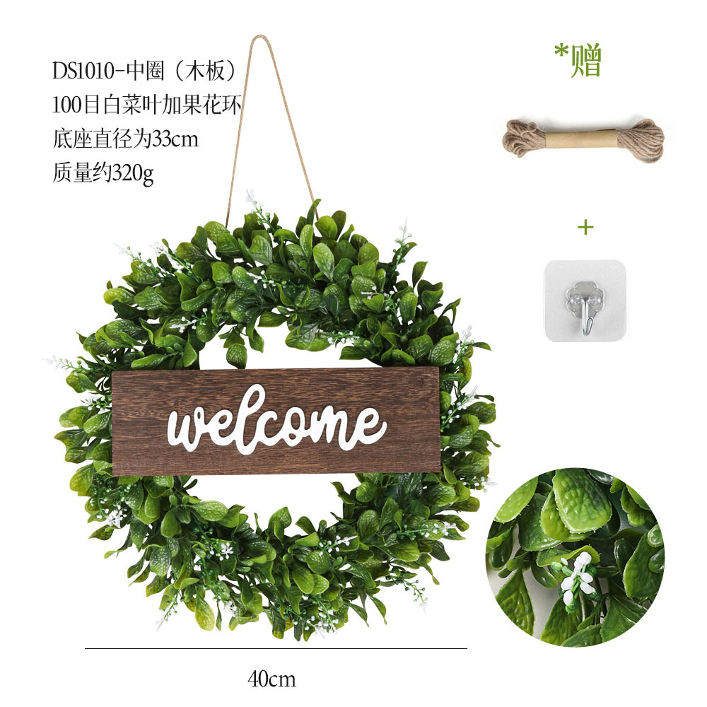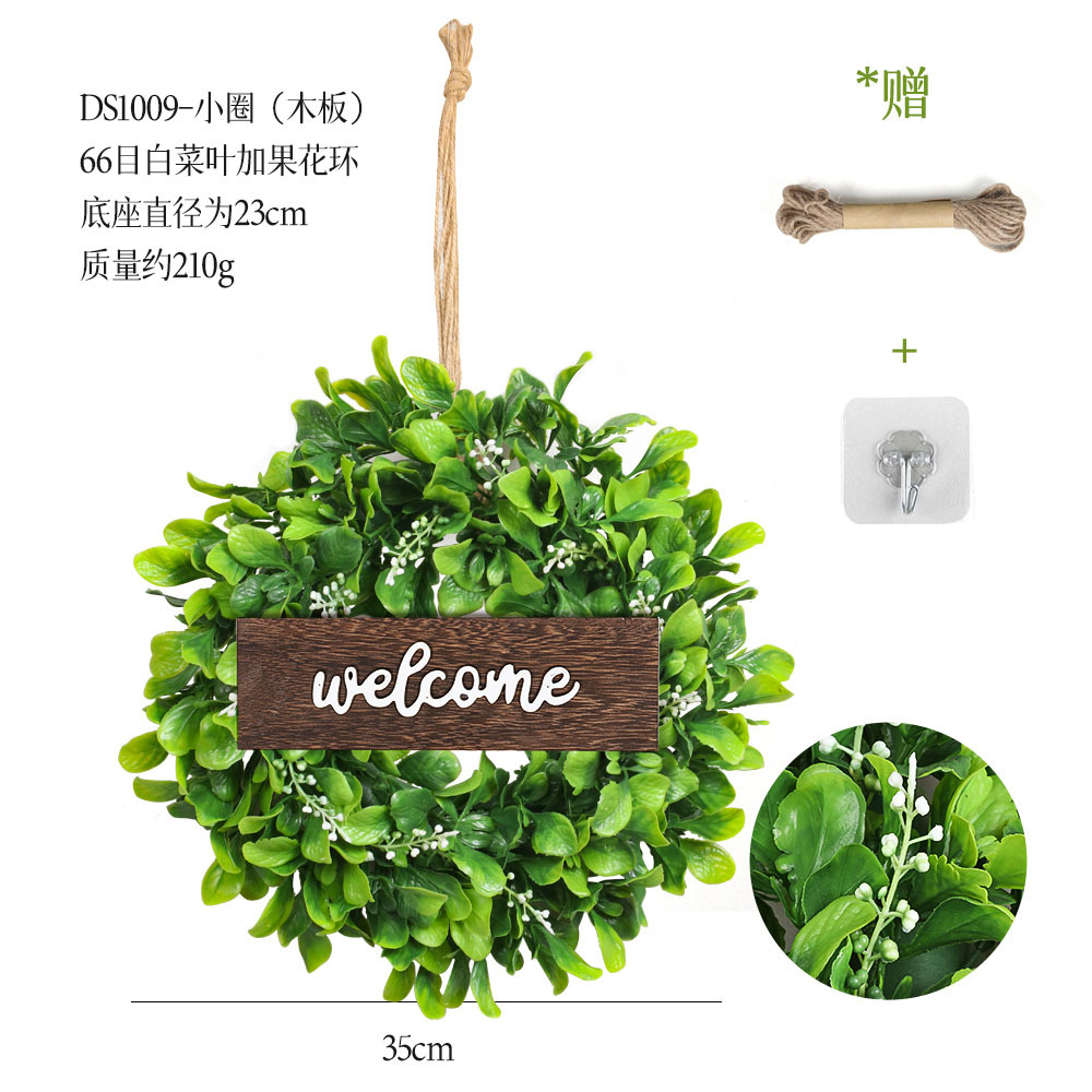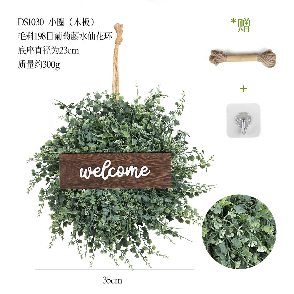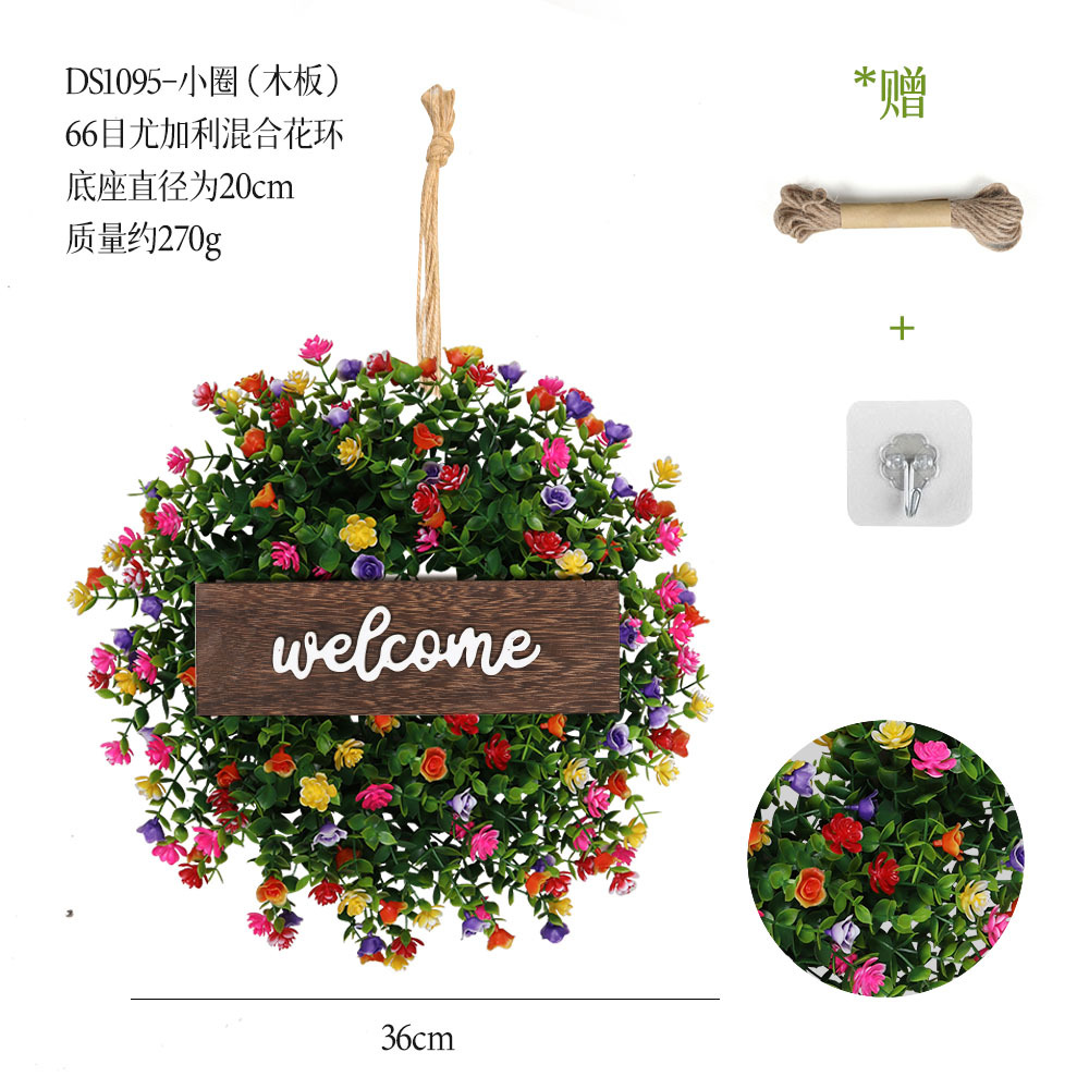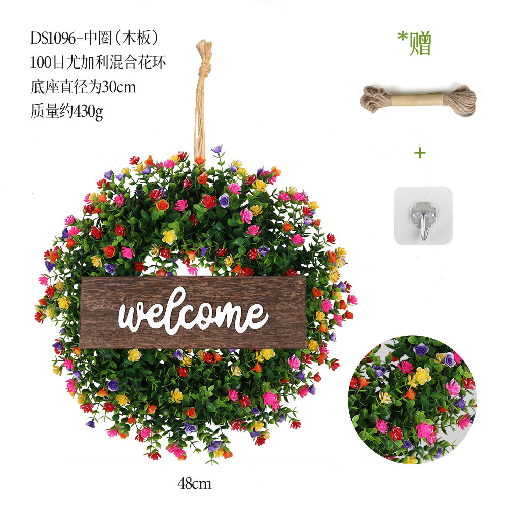 带木板仿真花环组合跨境家居挂饰仿真绿植花环假花墙饰赠麻绳挂钩