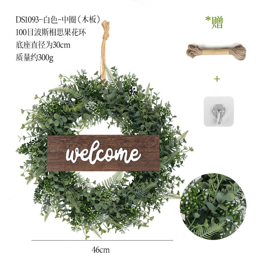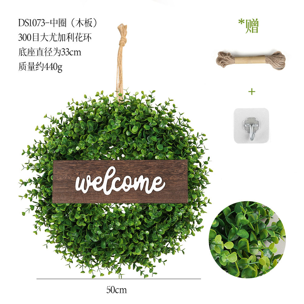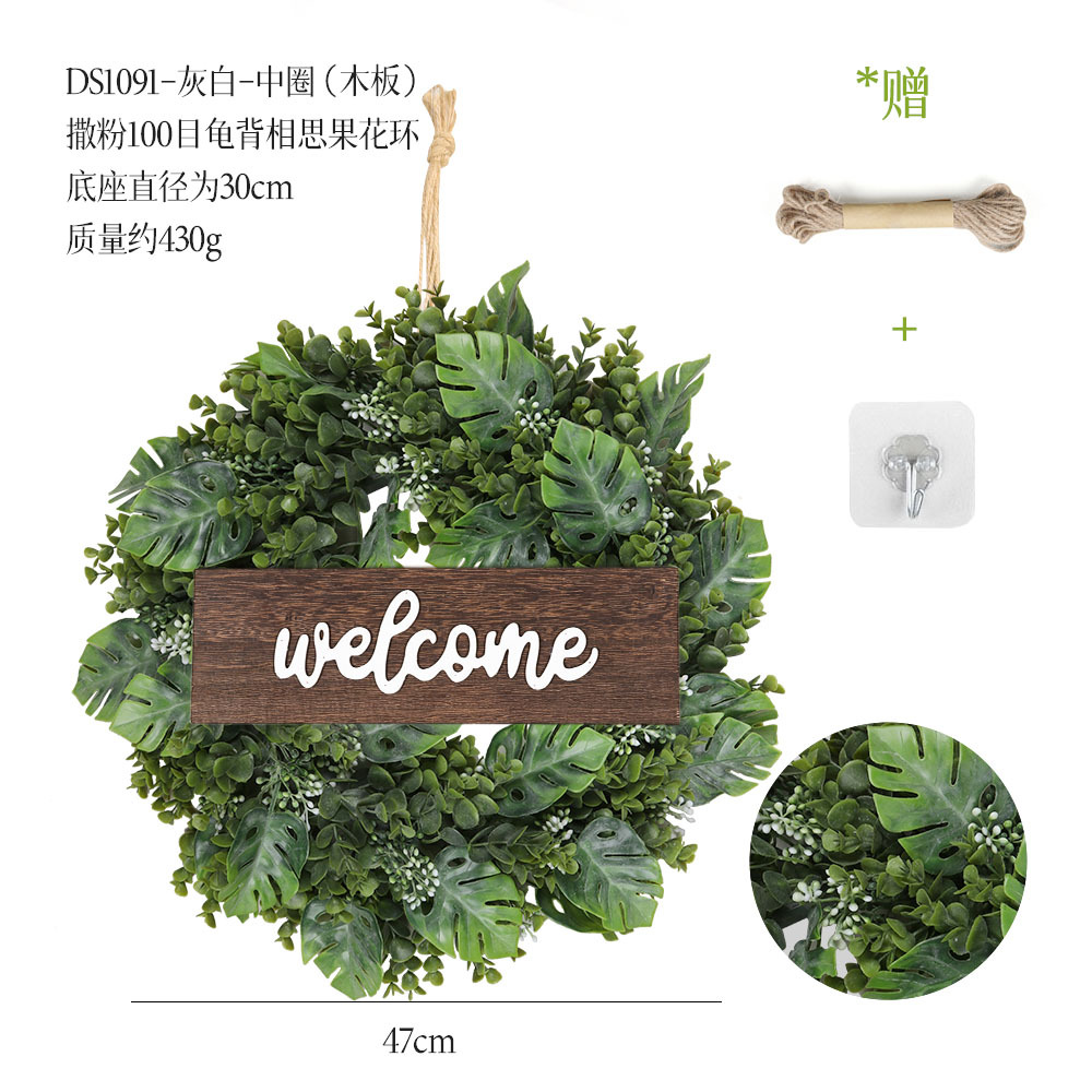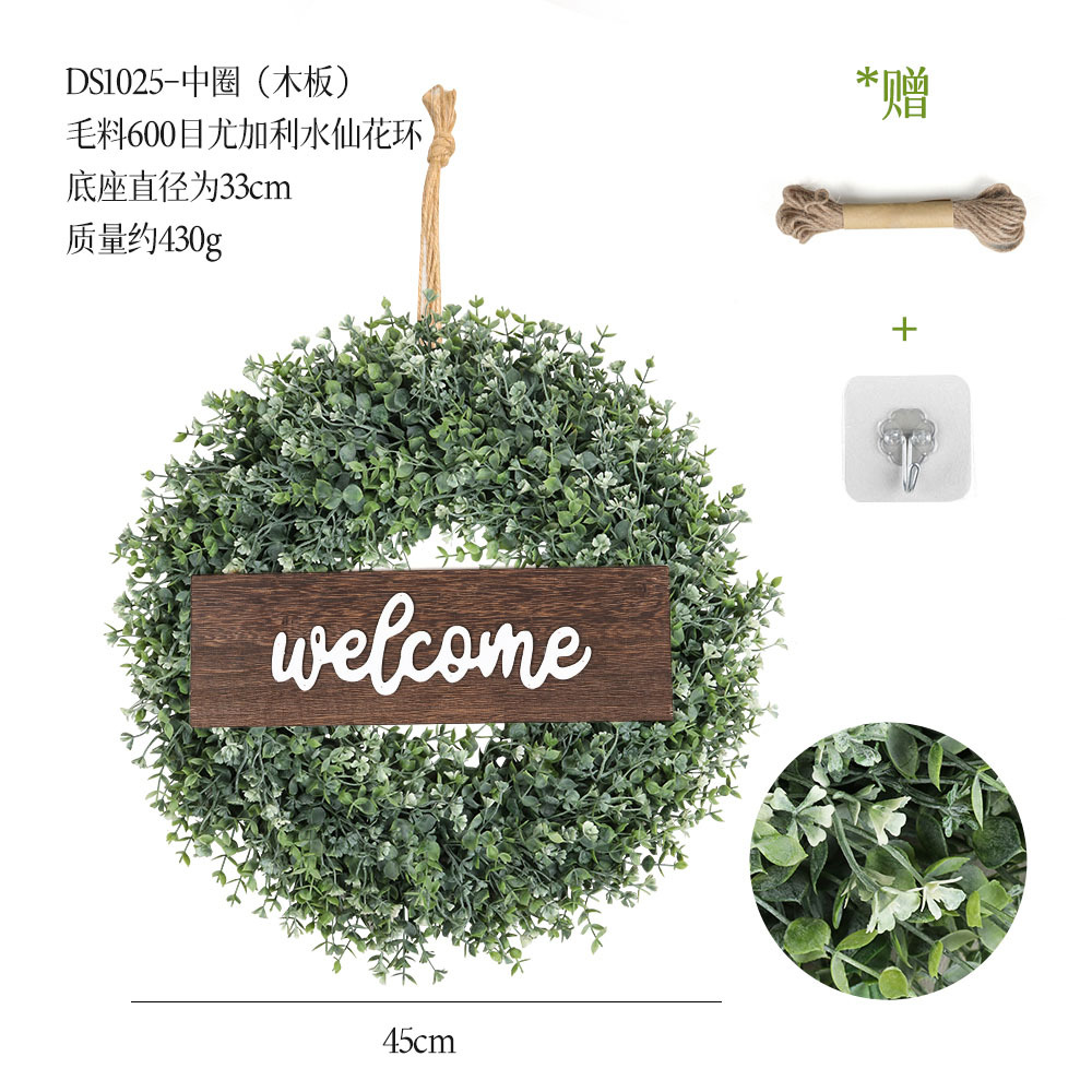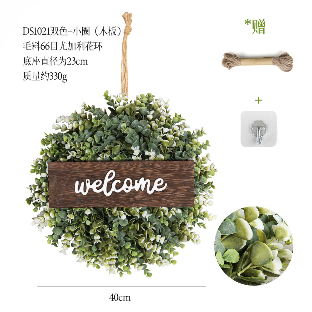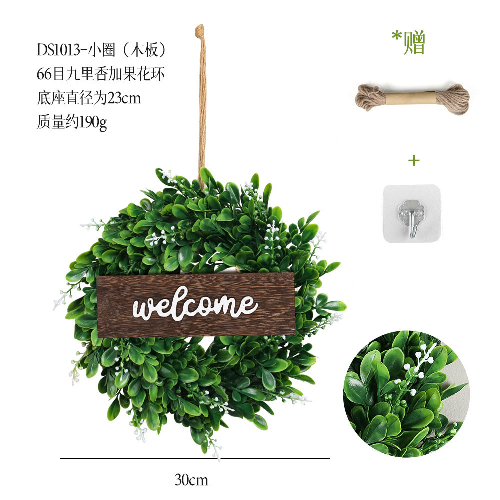 带木板仿真花环组合跨境家居挂饰仿真绿植花环假花墙饰赠麻绳挂钩