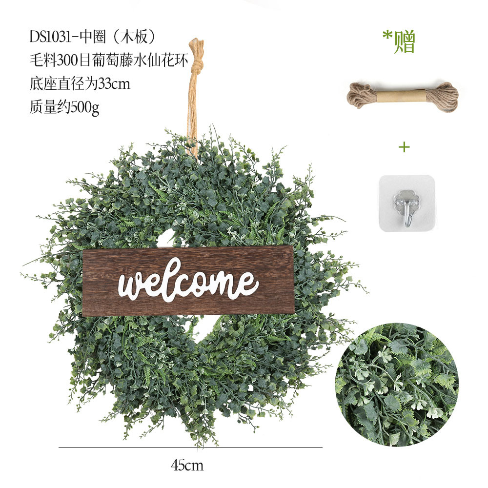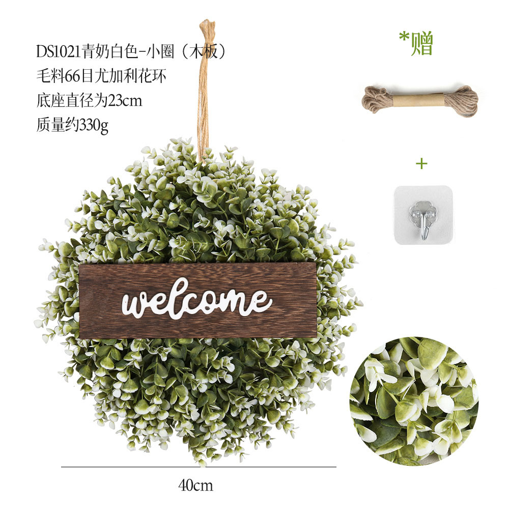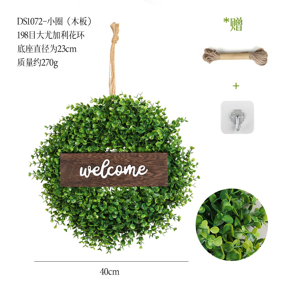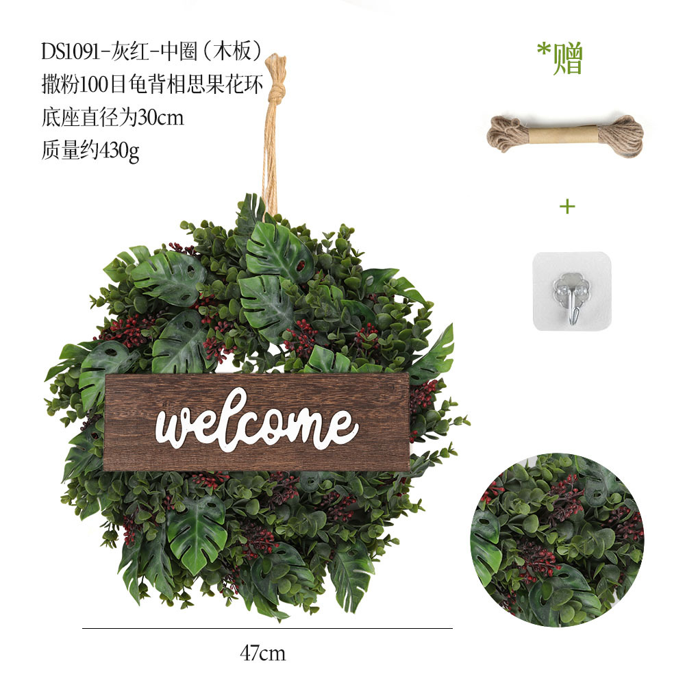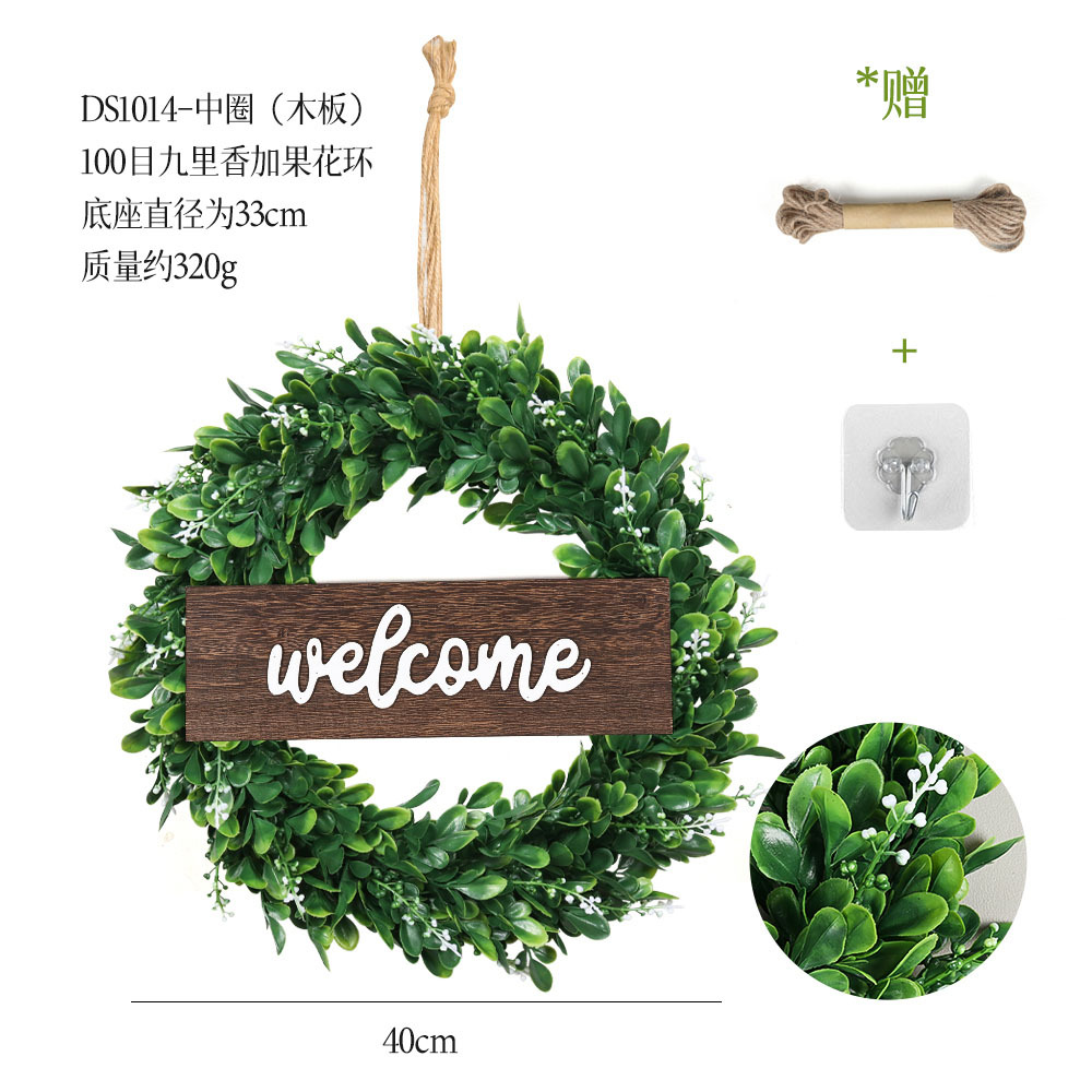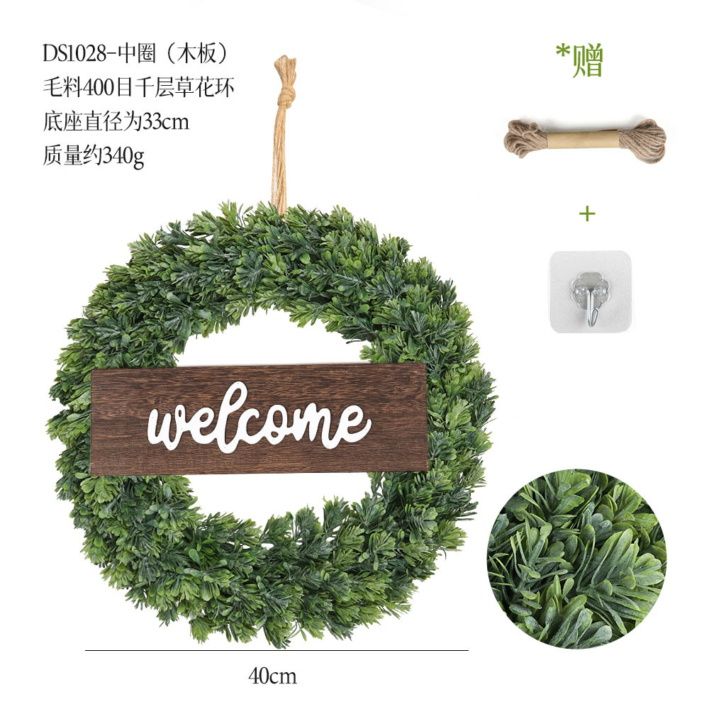 带木板仿真花环组合跨境家居挂饰仿真绿植花环假花墙饰赠麻绳挂钩