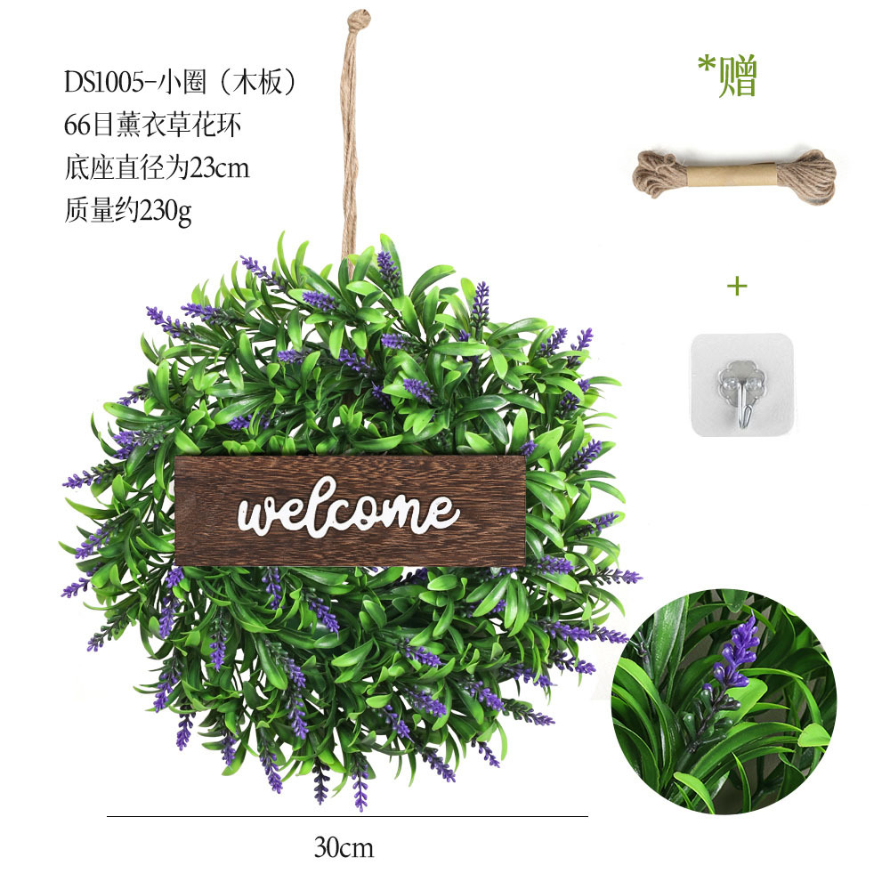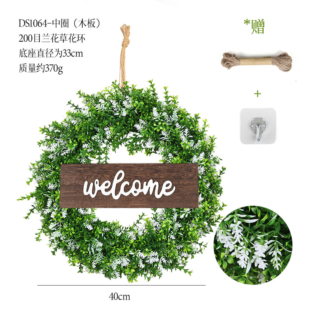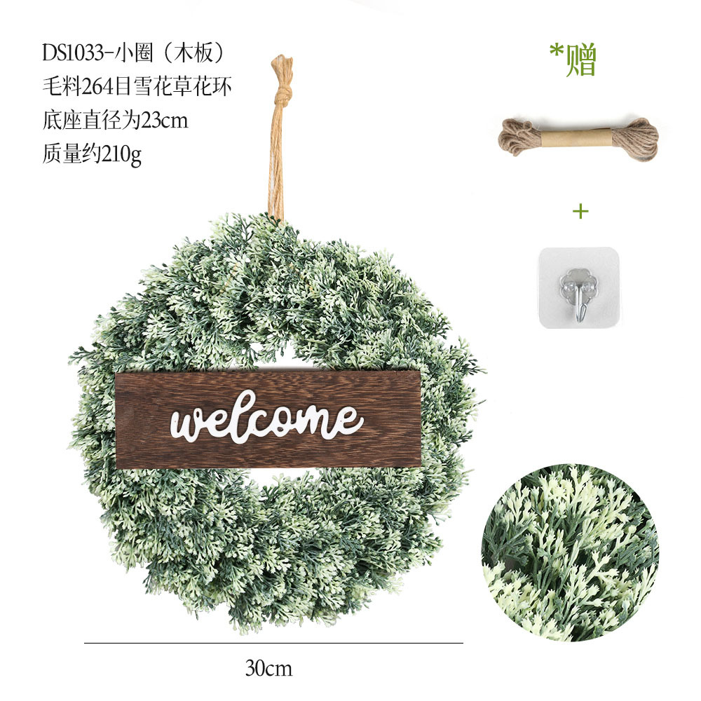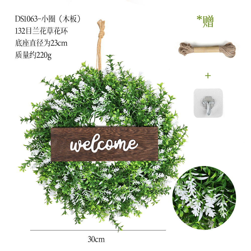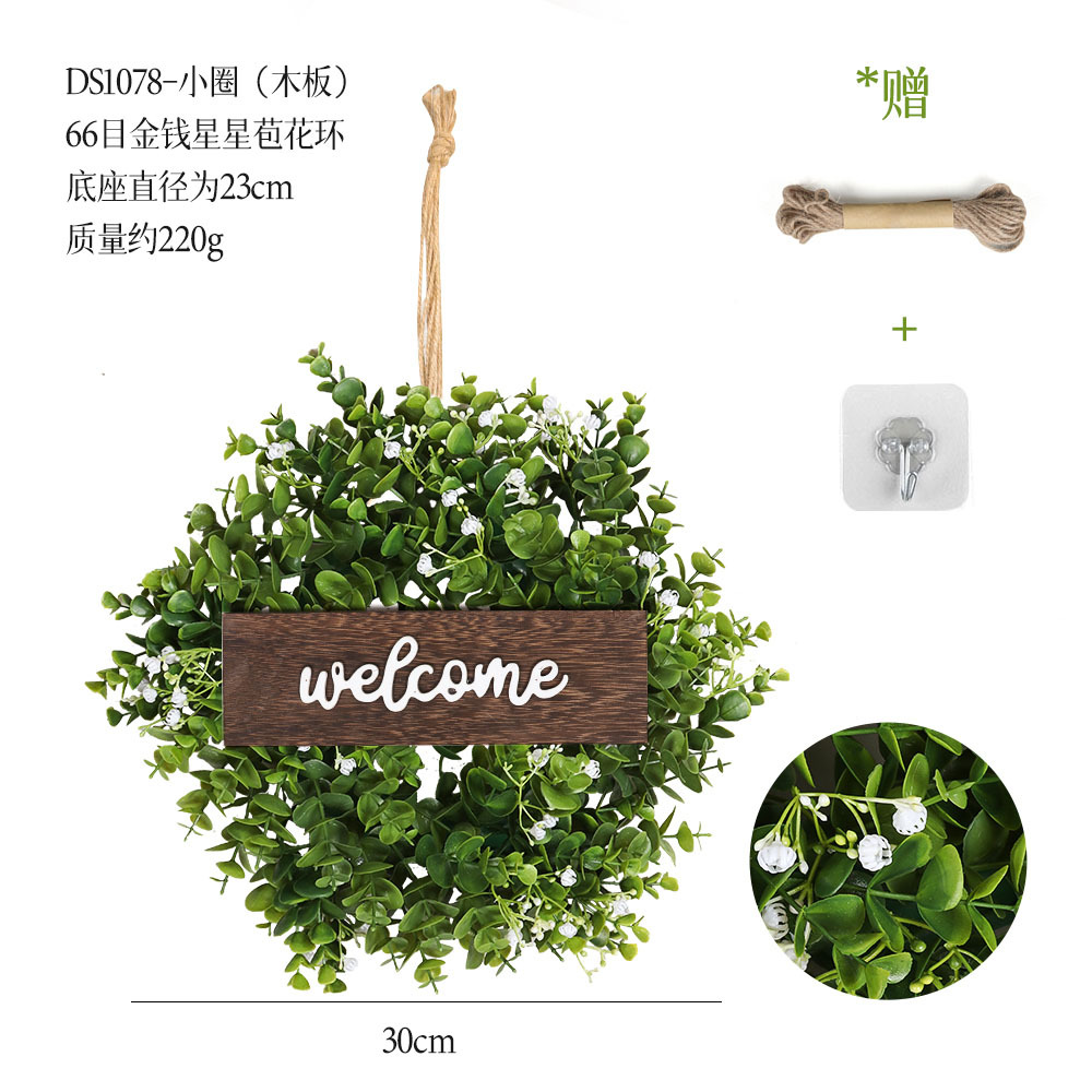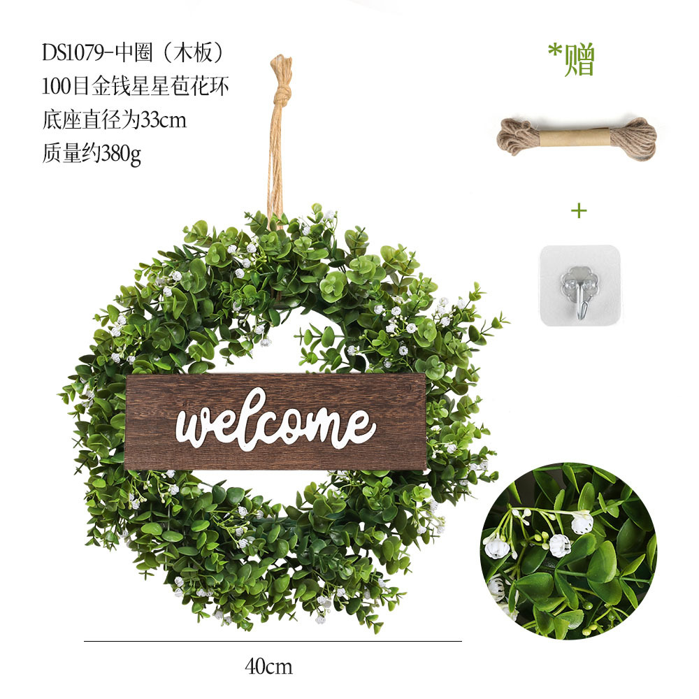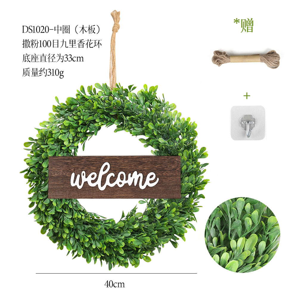 带木板仿真花环组合跨境家居挂饰仿真绿植花环假花墙饰赠麻绳挂钩