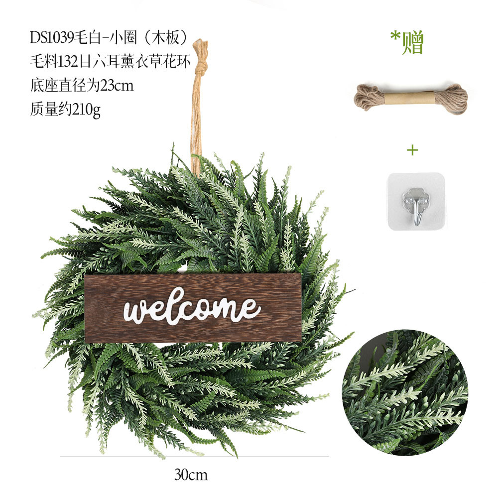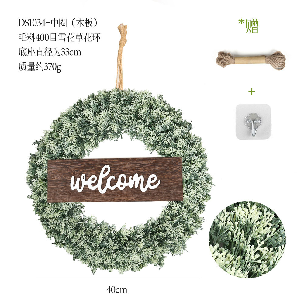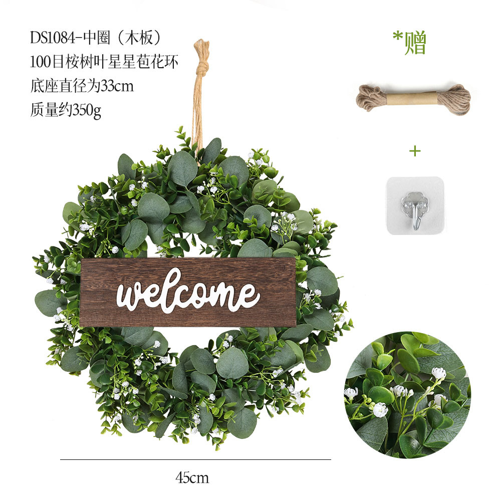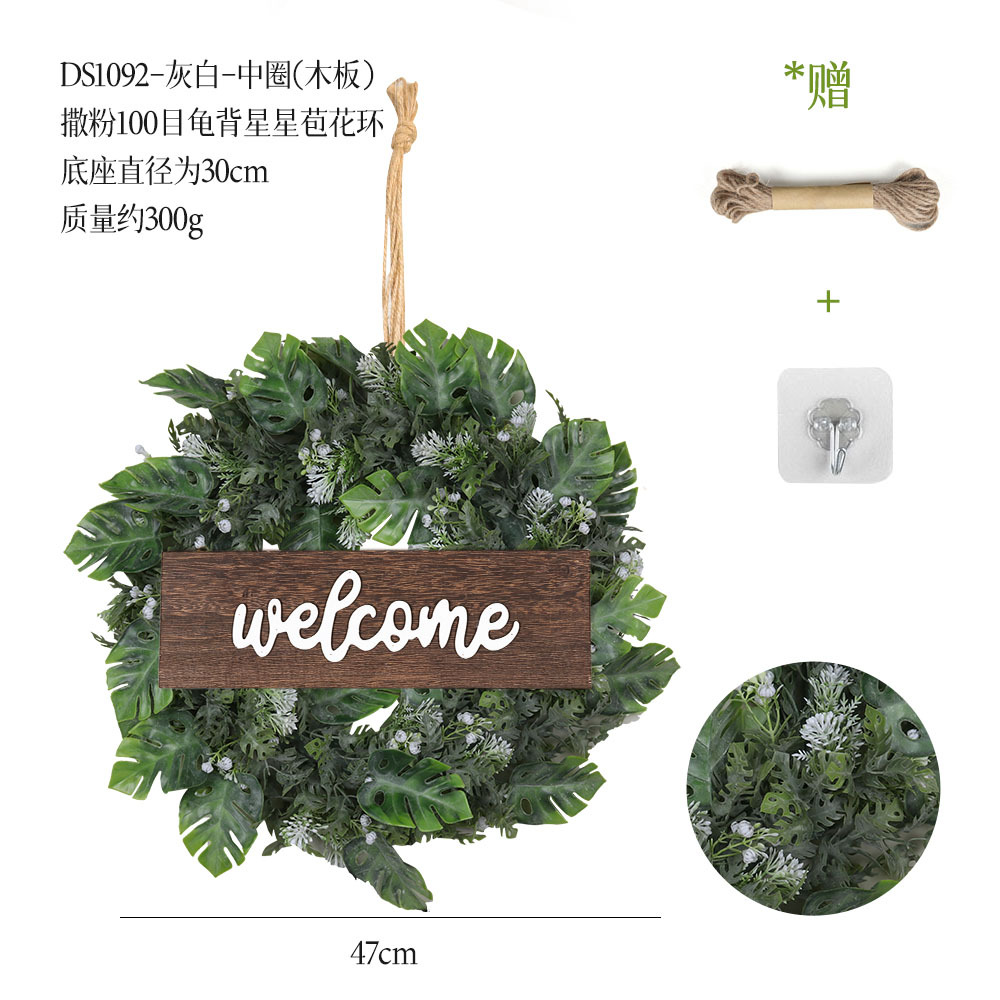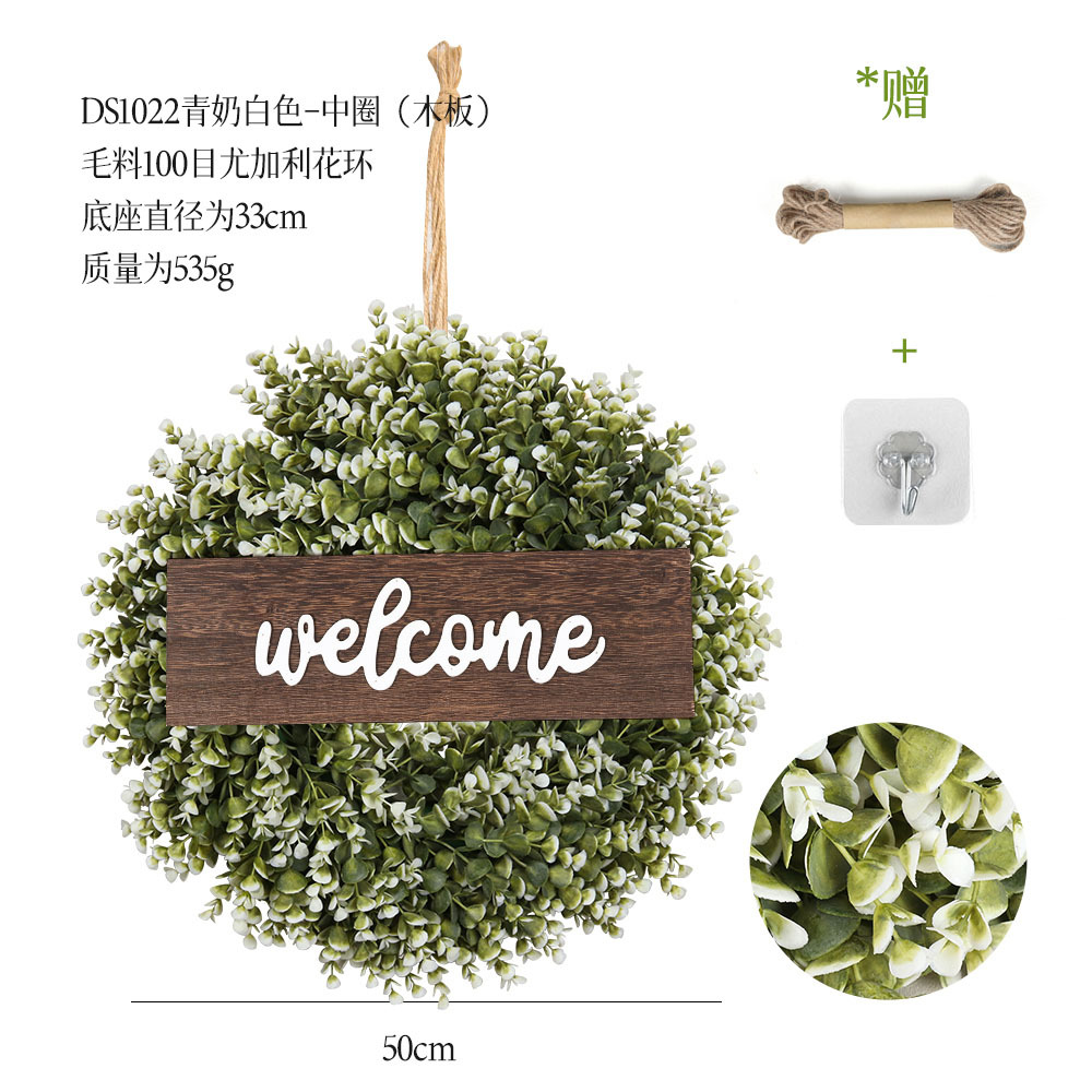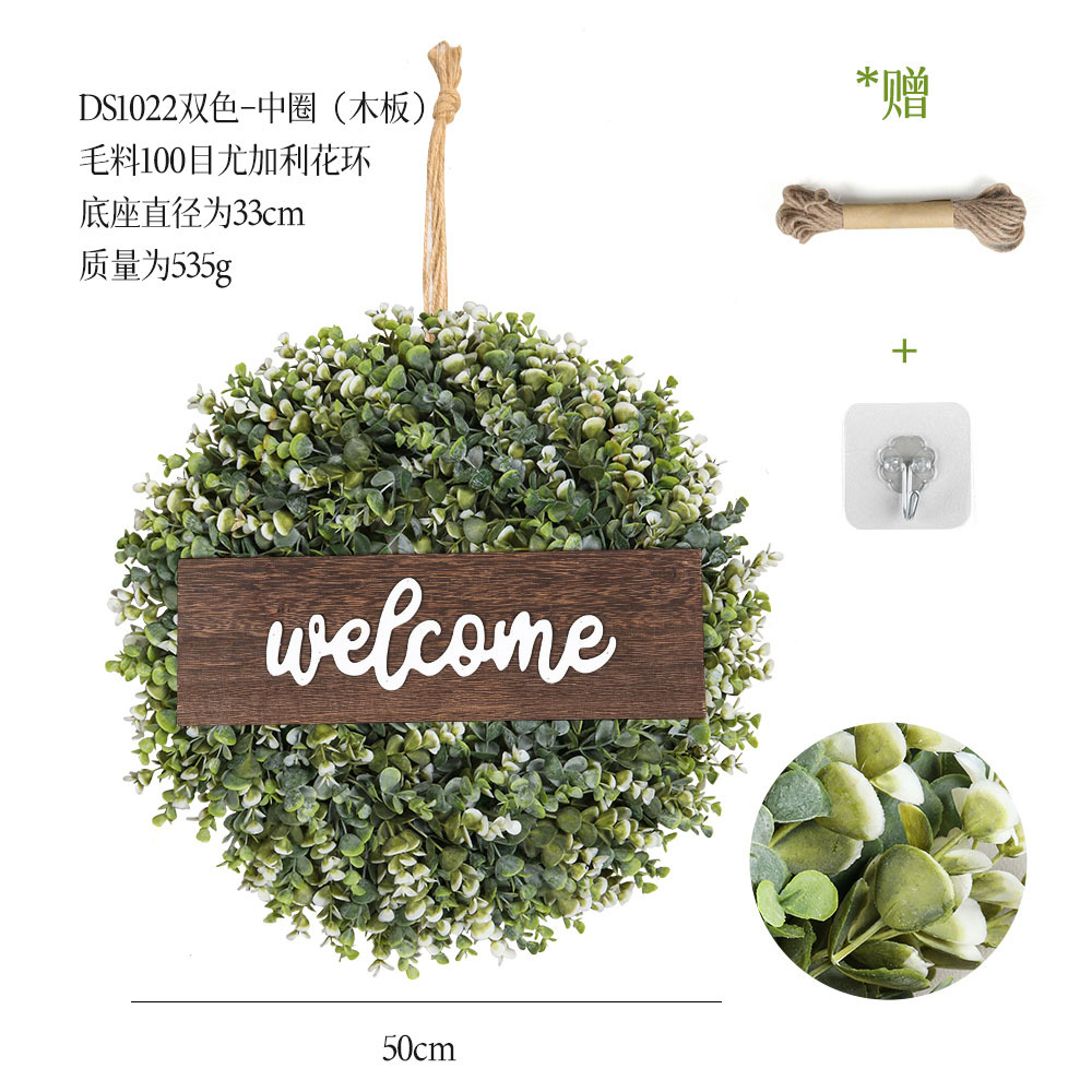 带木板仿真花环组合跨境家居挂饰仿真绿植花环假花墙饰赠麻绳挂钩
