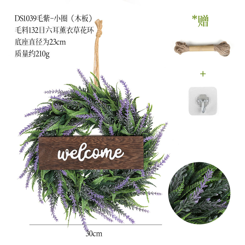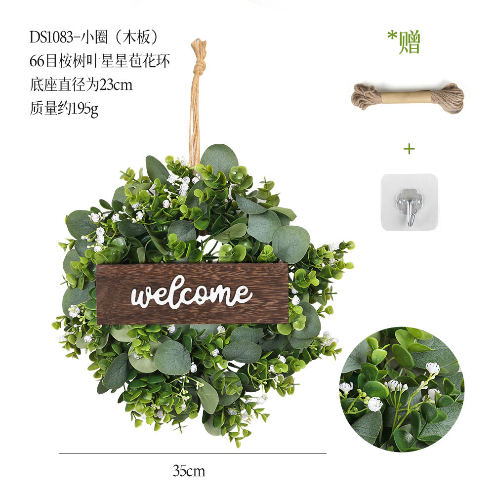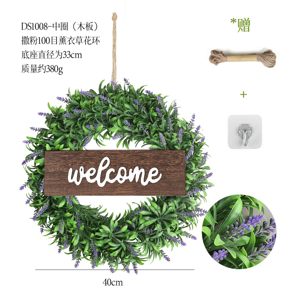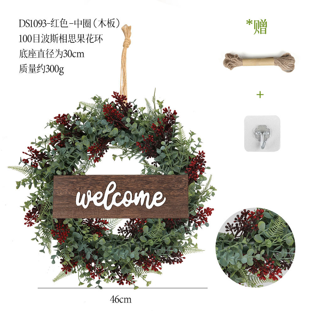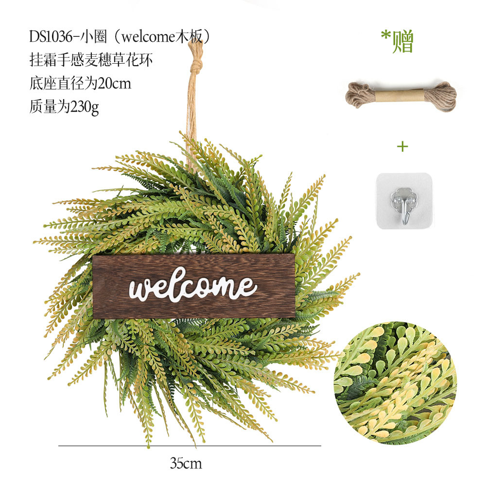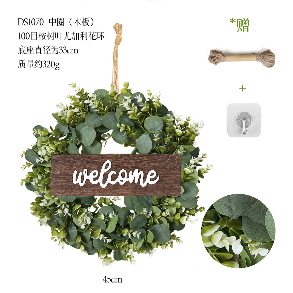 带木板仿真花环组合跨境家居挂饰仿真绿植花环假花墙饰赠麻绳挂钩