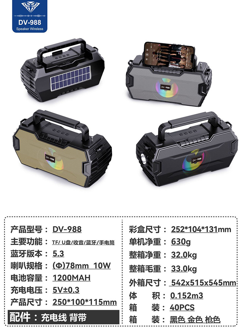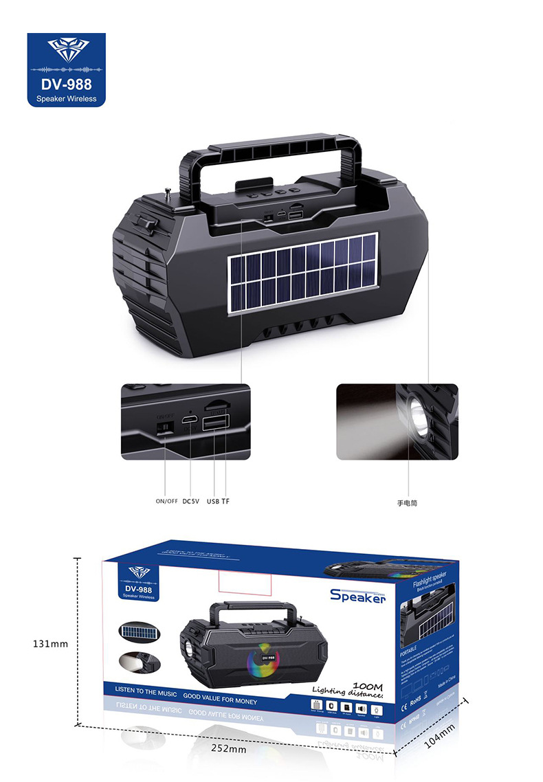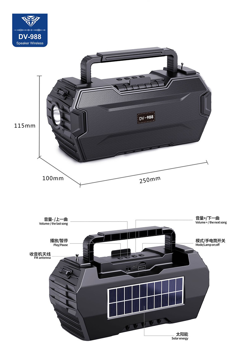 非洲手电筒音响蓝牙 户外音箱便捷插卡收音机太阳能桌面DV-988