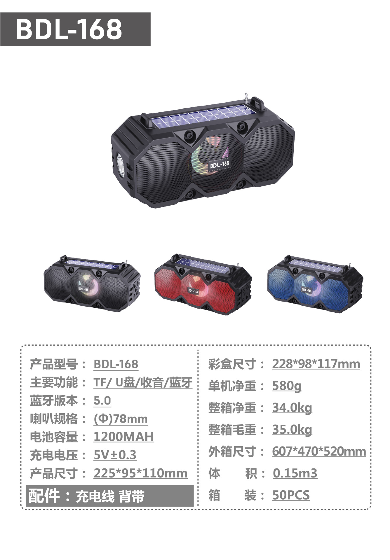 音箱手提户外露营多功能手电筒U盘FM插卡太阳能收音机BDL-168蓝牙