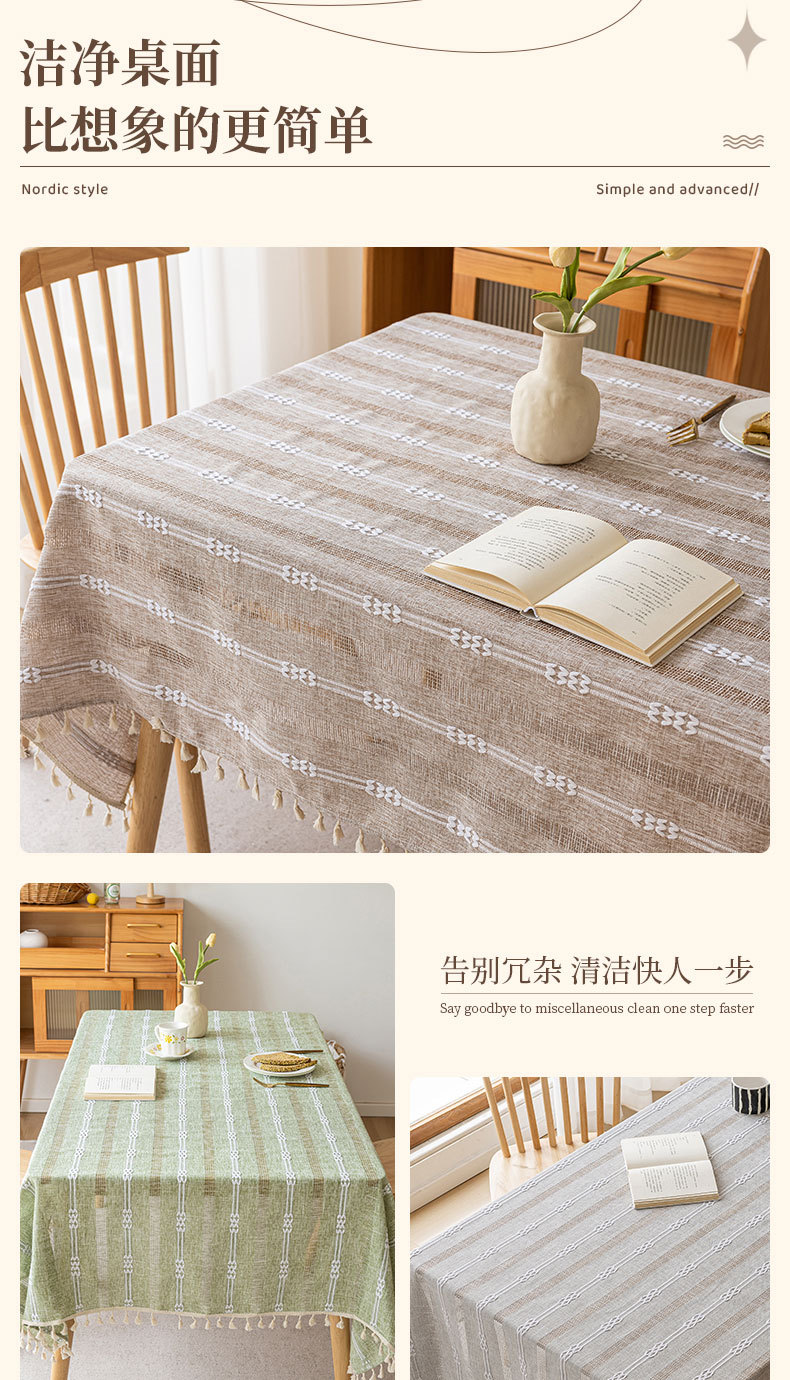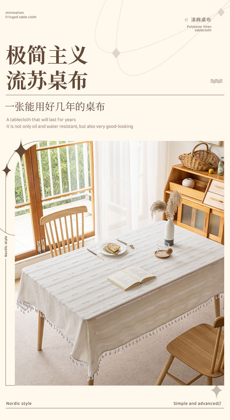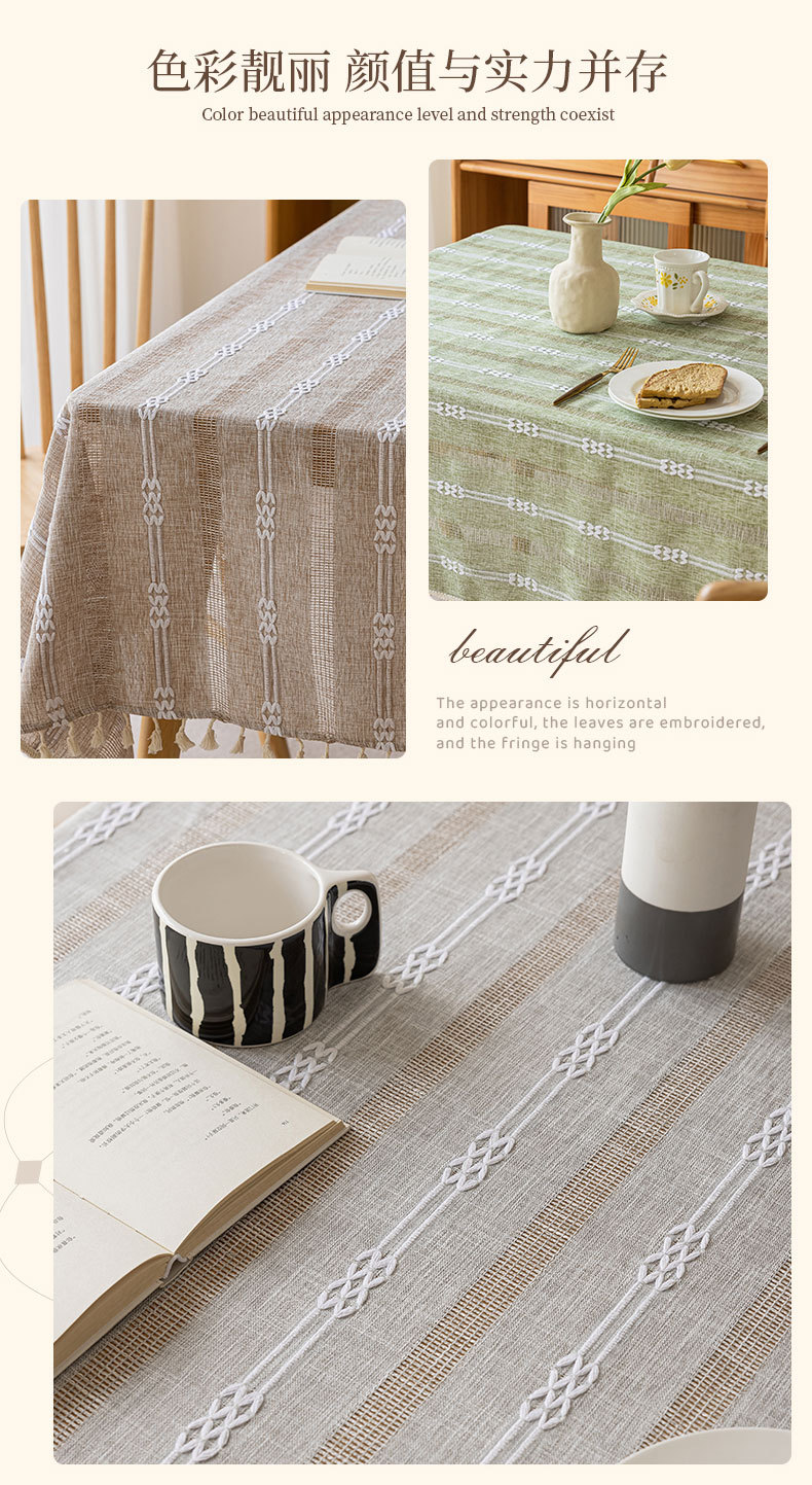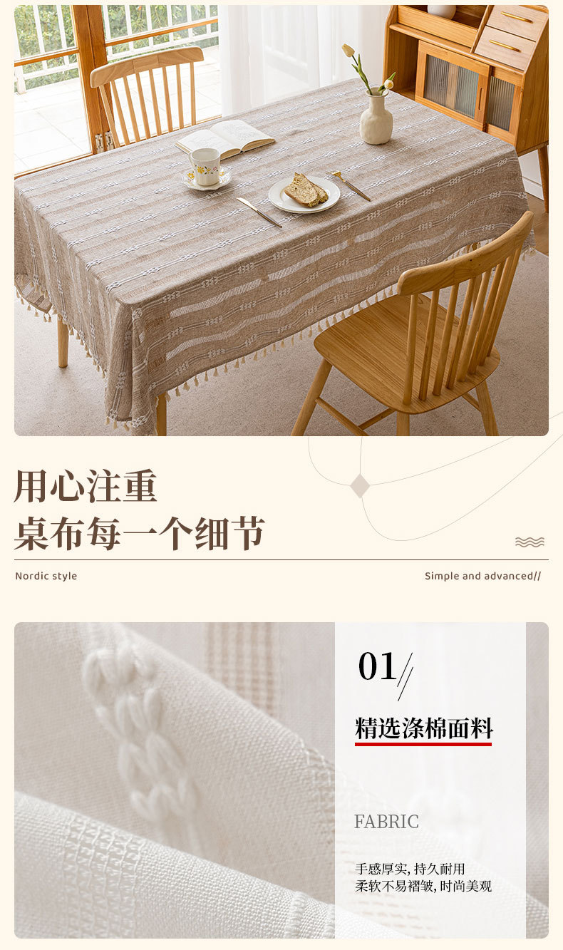 家居小清新餐桌台布新款ins风提花带流苏餐桌布民宿布艺桌布批发