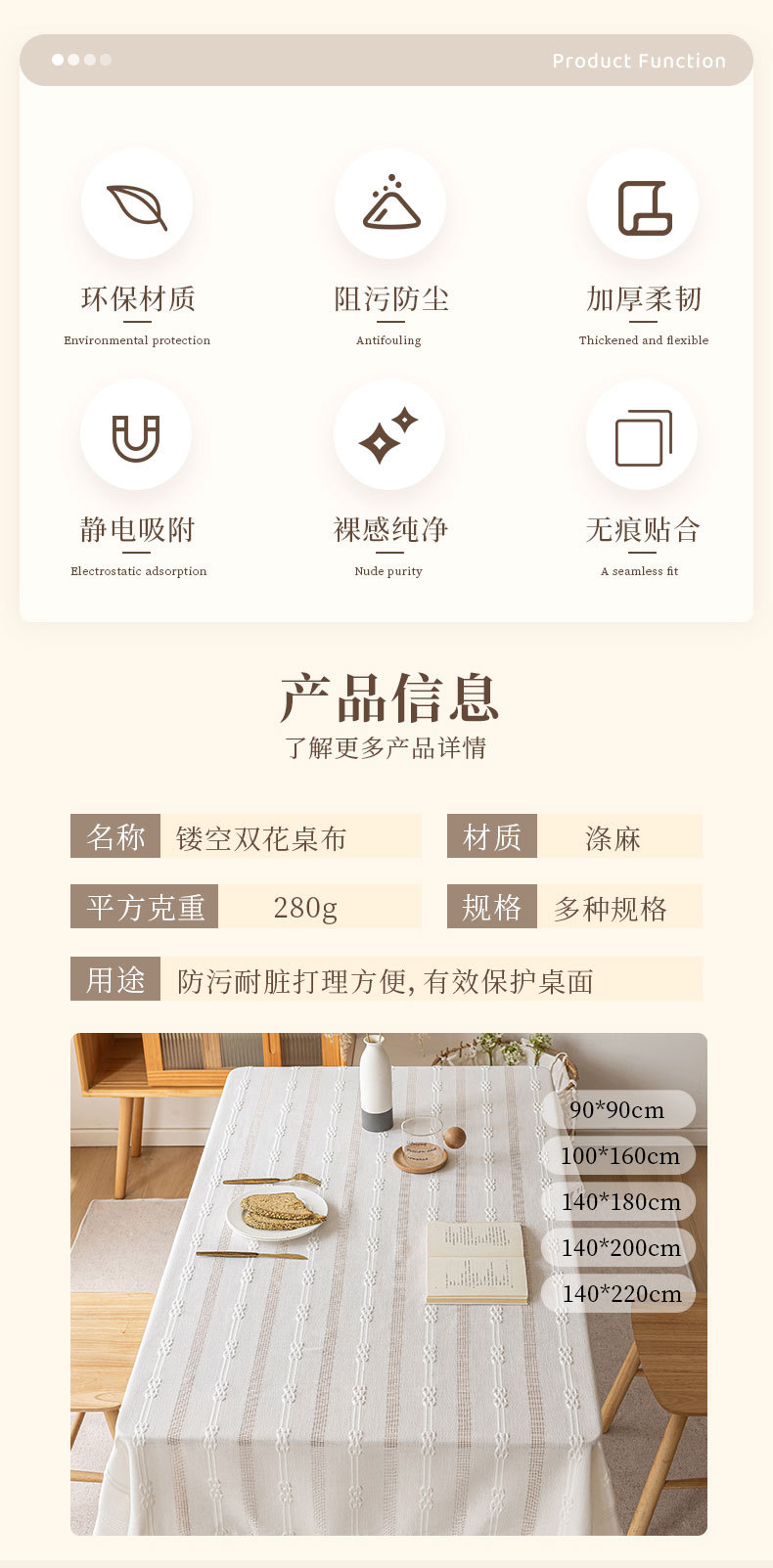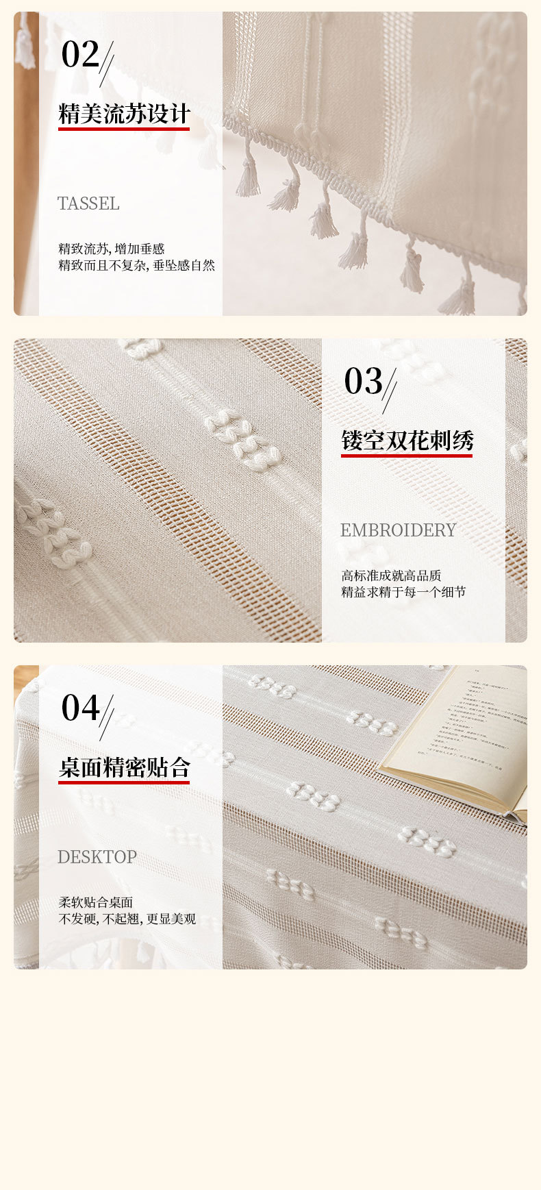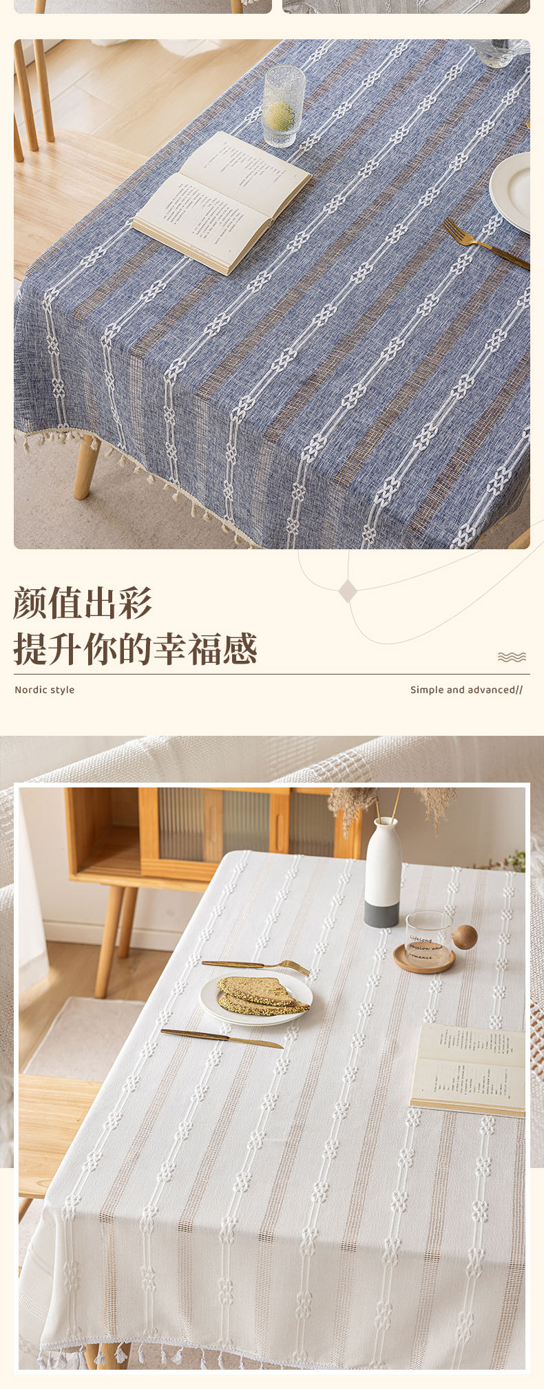 家居小清新餐桌台布新款ins风提花带流苏餐桌布民宿布艺桌布批发