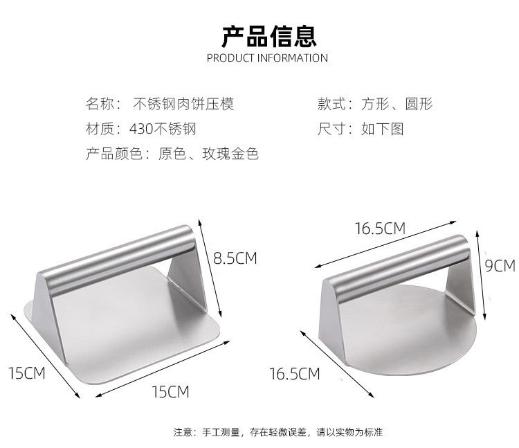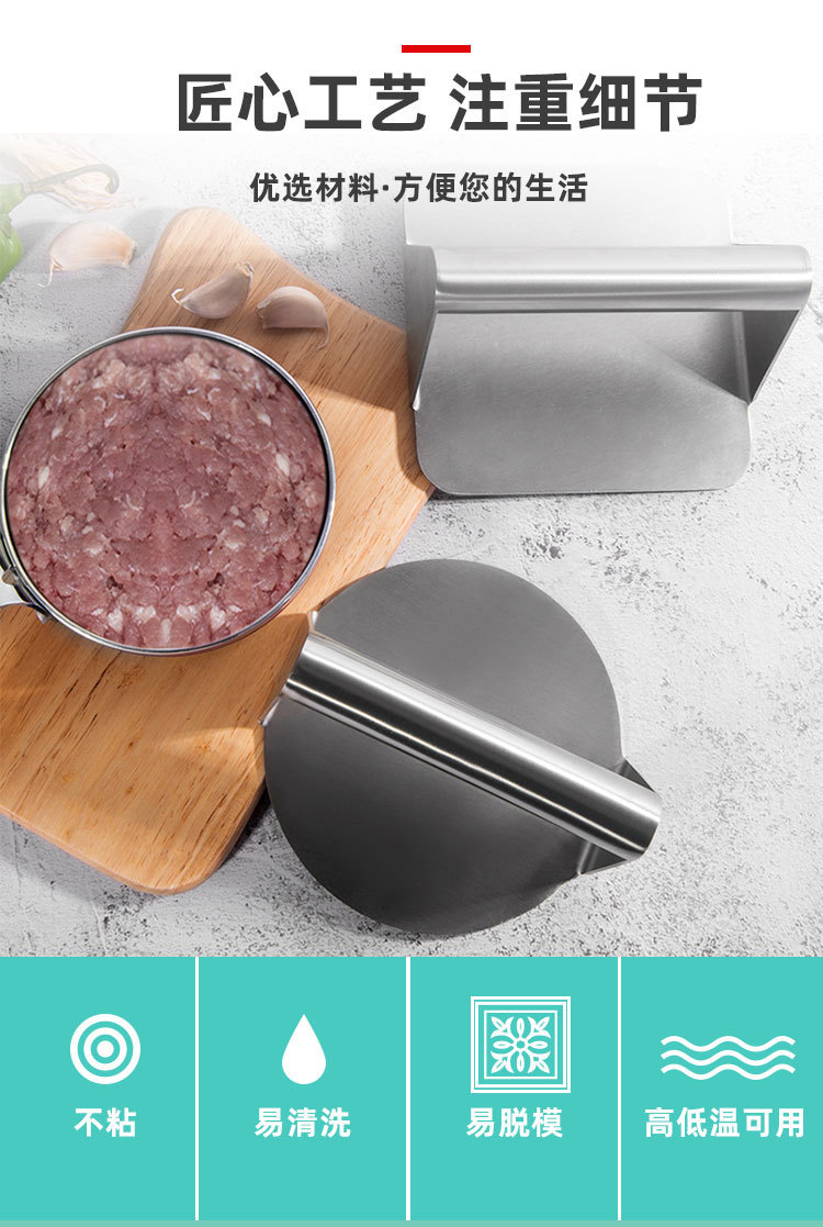 厂家批发跨境不锈钢汉堡压 方形手工压饼神器 多功能圆形压肉饼器