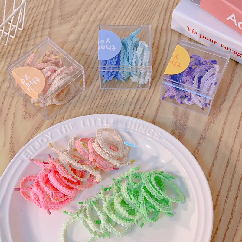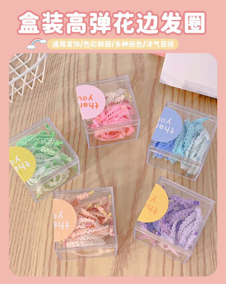 渐变花边皮筋儿童发饰女孩基础头绳盒装高弹力不伤发发绳耐用发圈