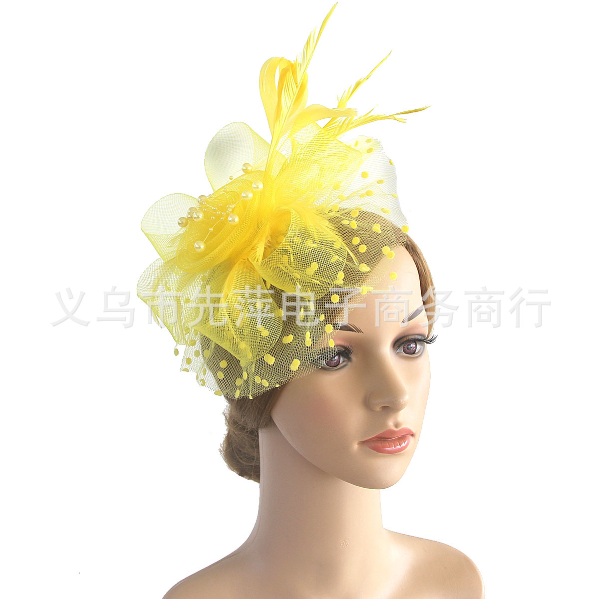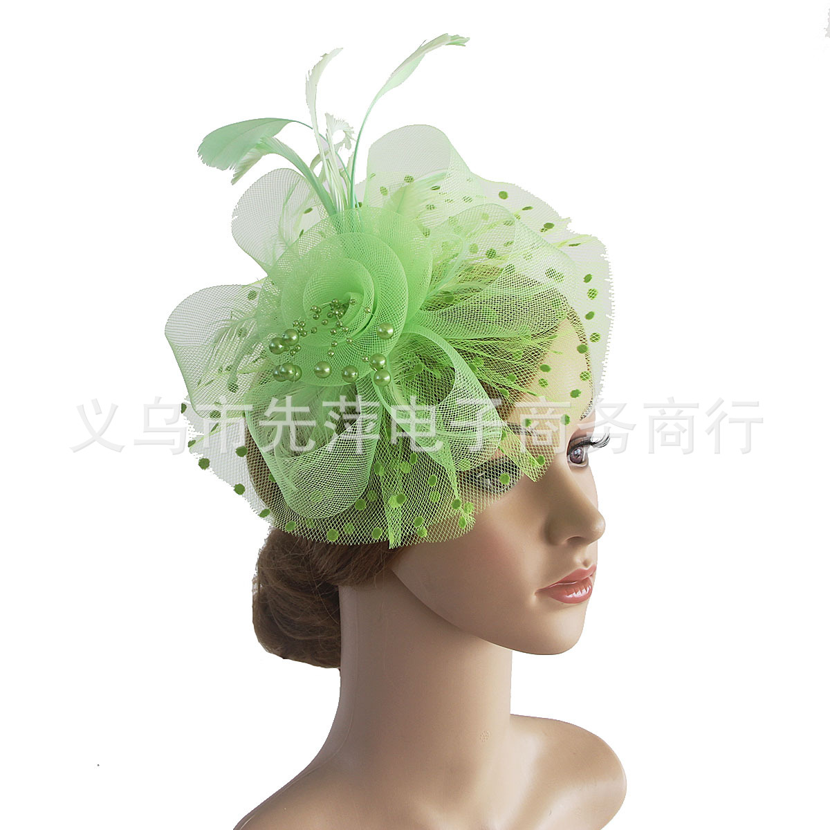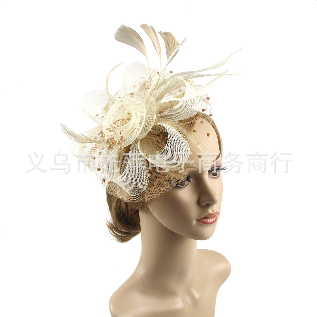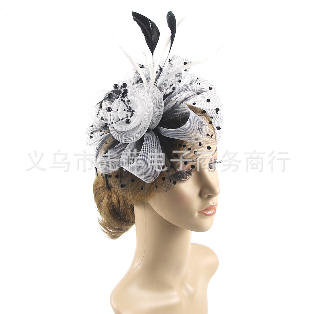 爆款亚马逊羽毛头饰欧美新娘发饰头花赛马节头饰复古网纱小礼帽