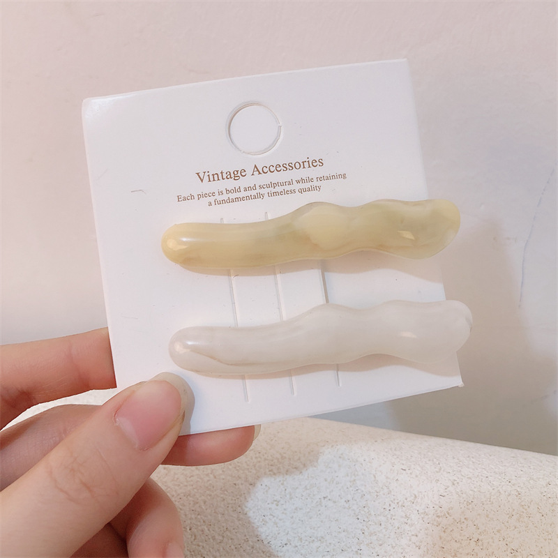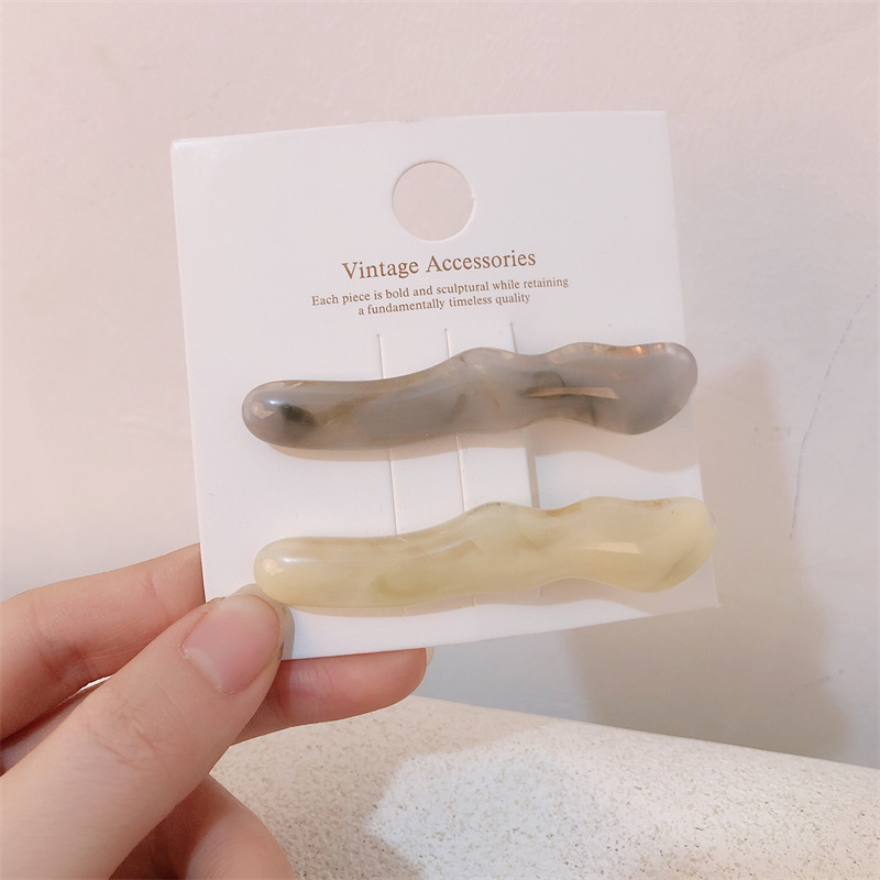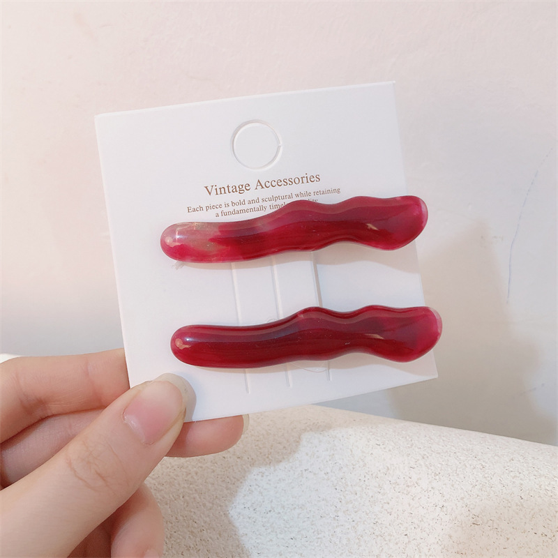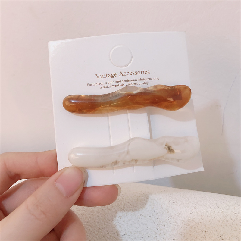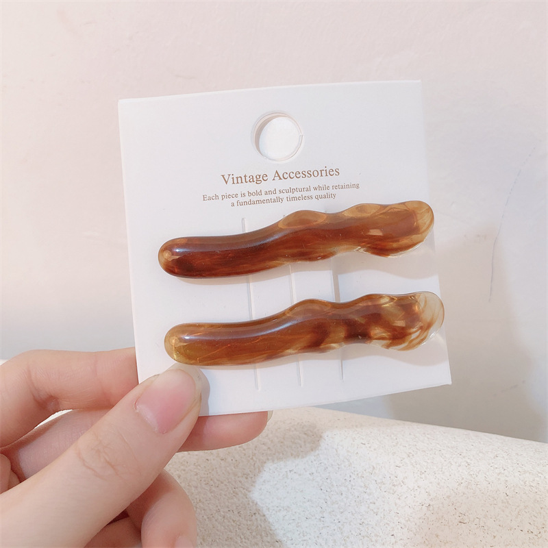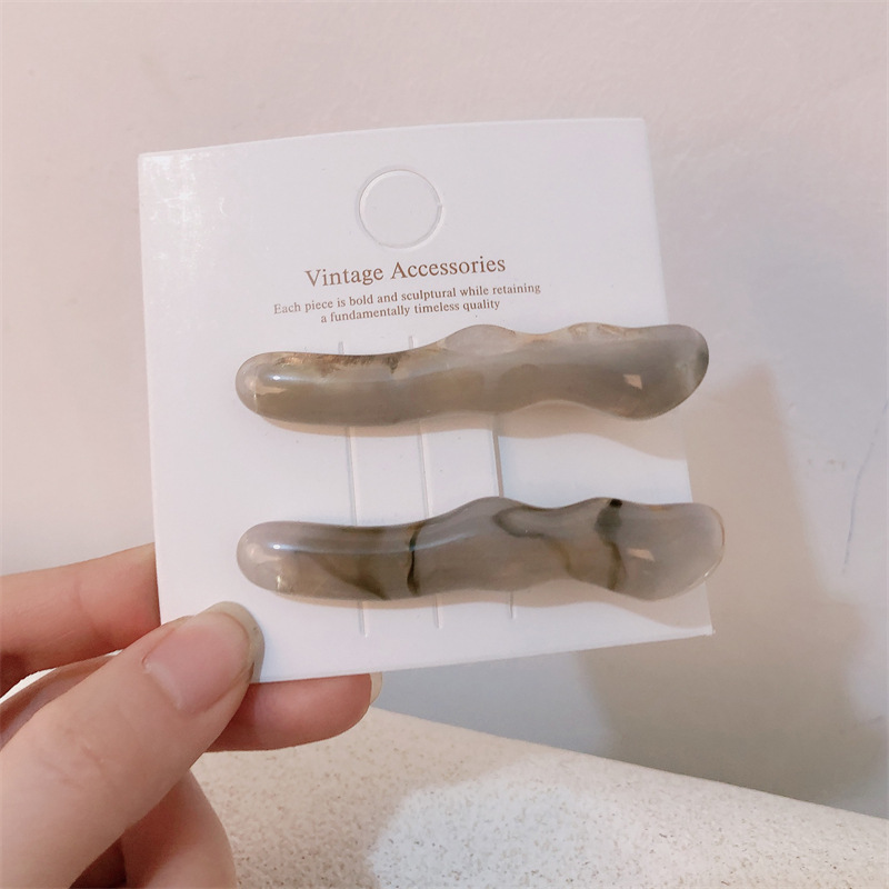 2只套装~简约不规则晕染亚克力波浪发夹女复古刘海侧边一字夹新款