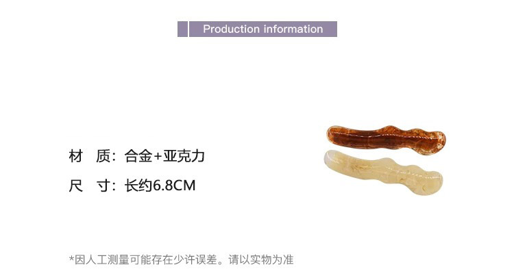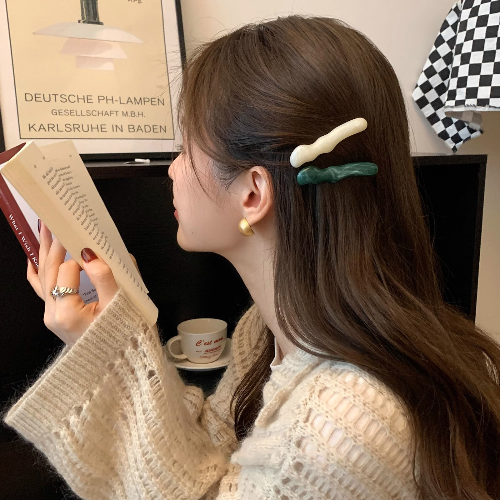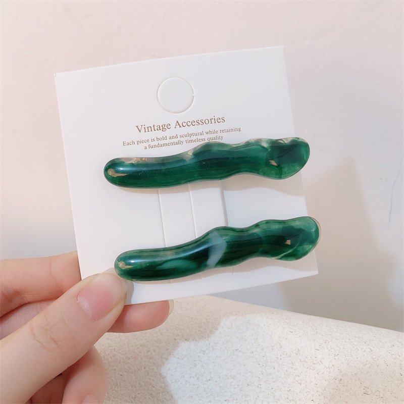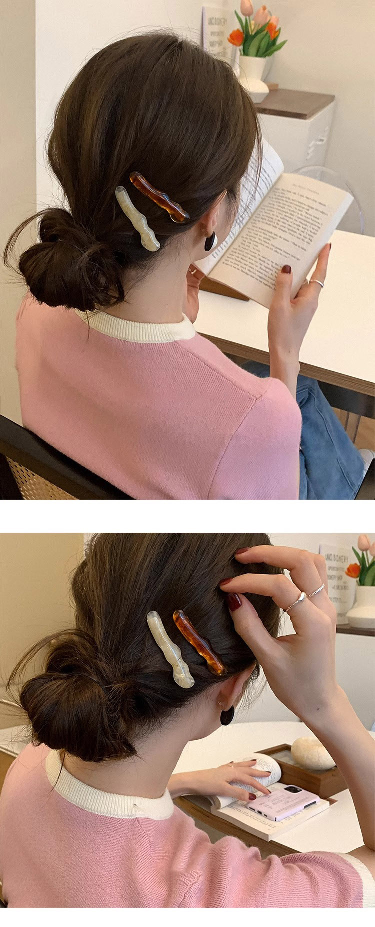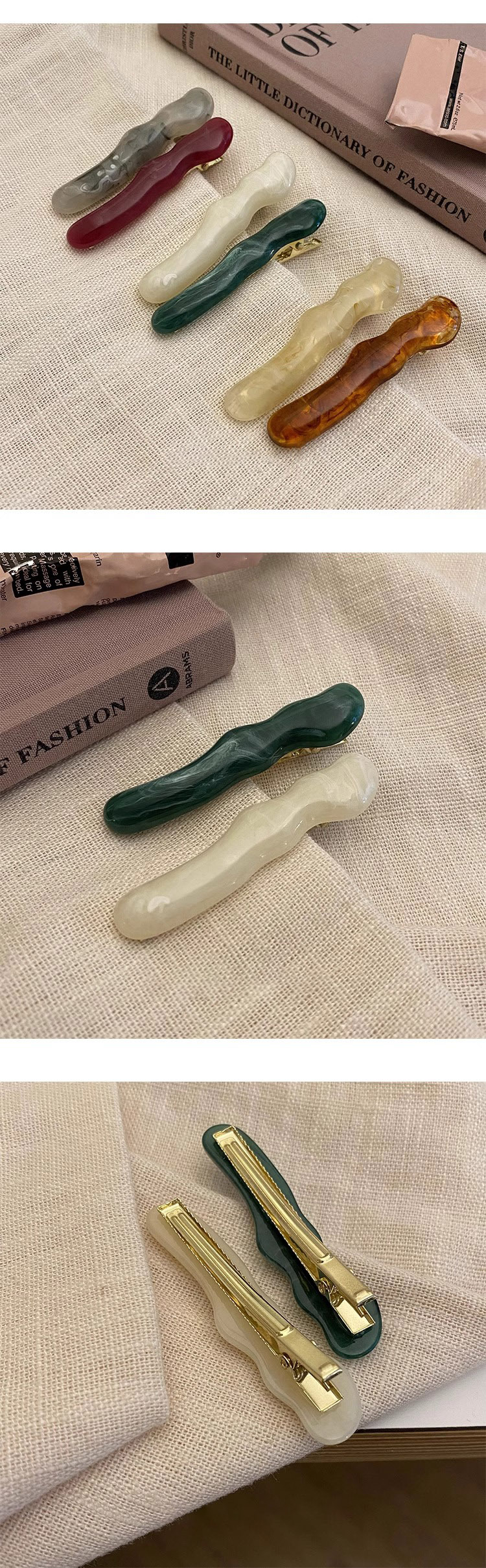 2只套装~简约不规则晕染亚克力波浪发夹女复古刘海侧边一字夹新款