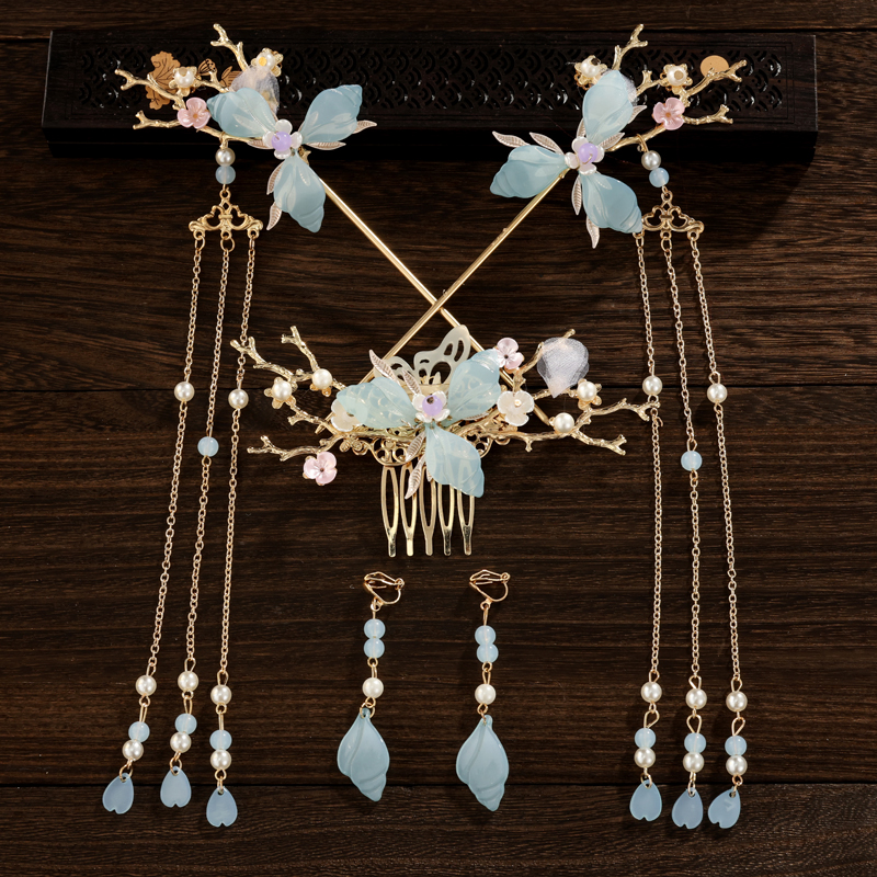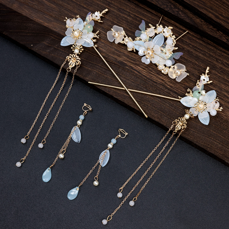 汉服头饰超仙少女流苏发簪全套古风饰品步摇簪子插梳古装发饰套装