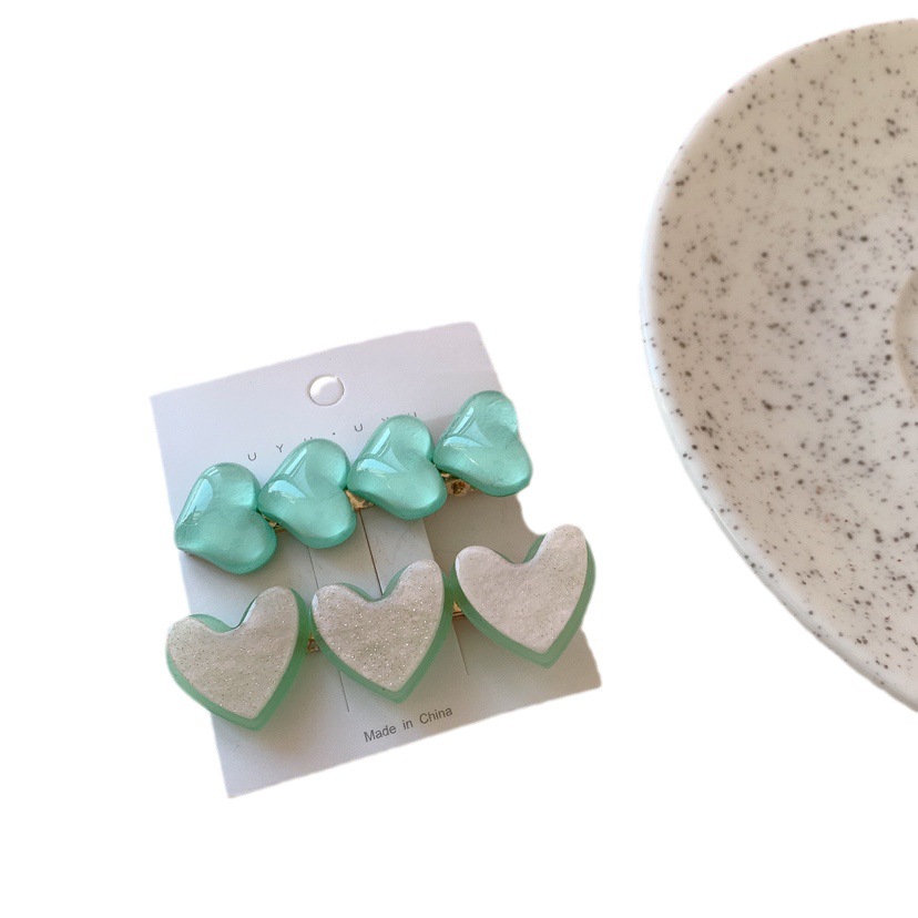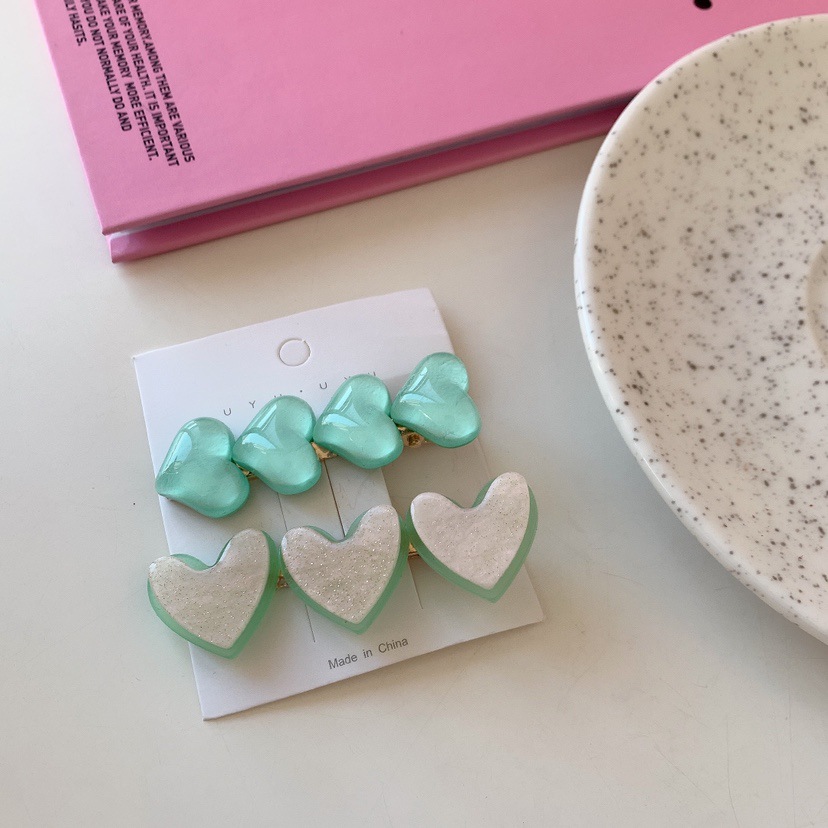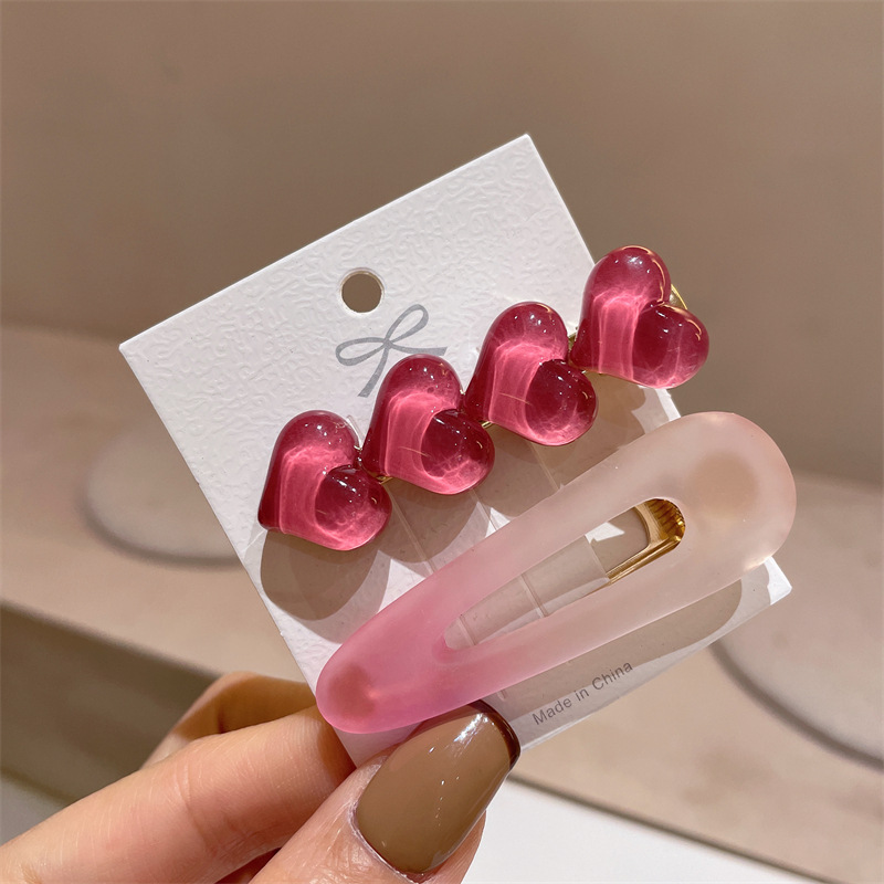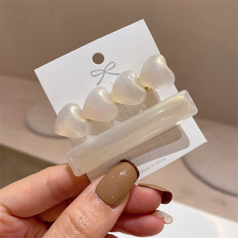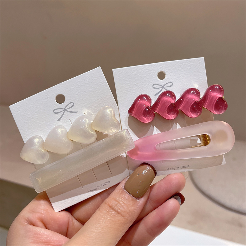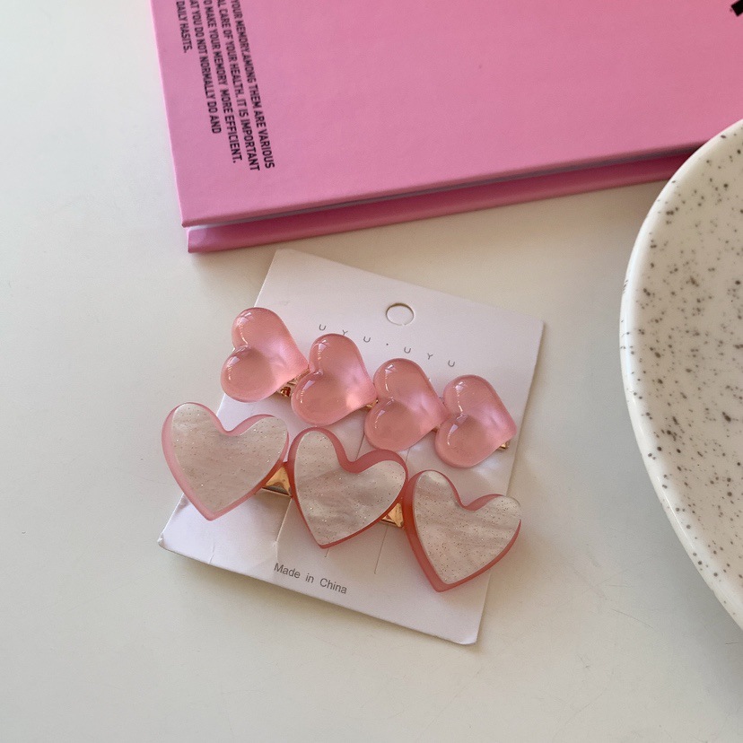 韩国东大门仙气白色发夹少女粉红色渐变爱心果冻鸭嘴夹套装发卡